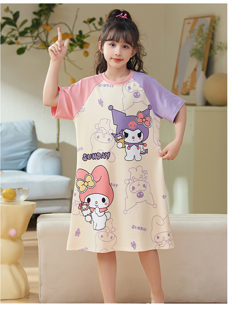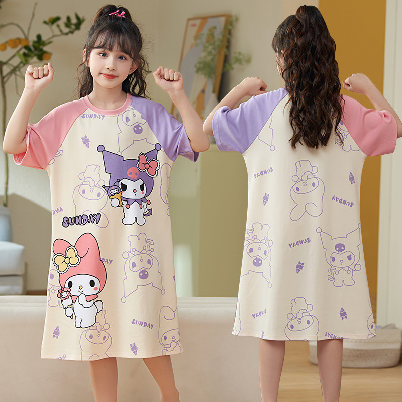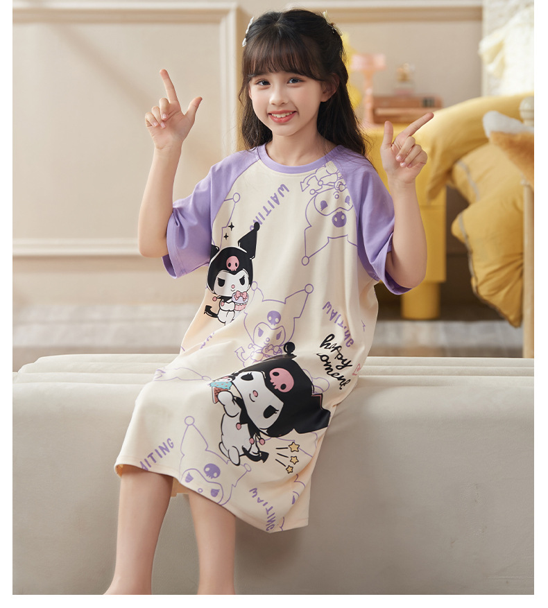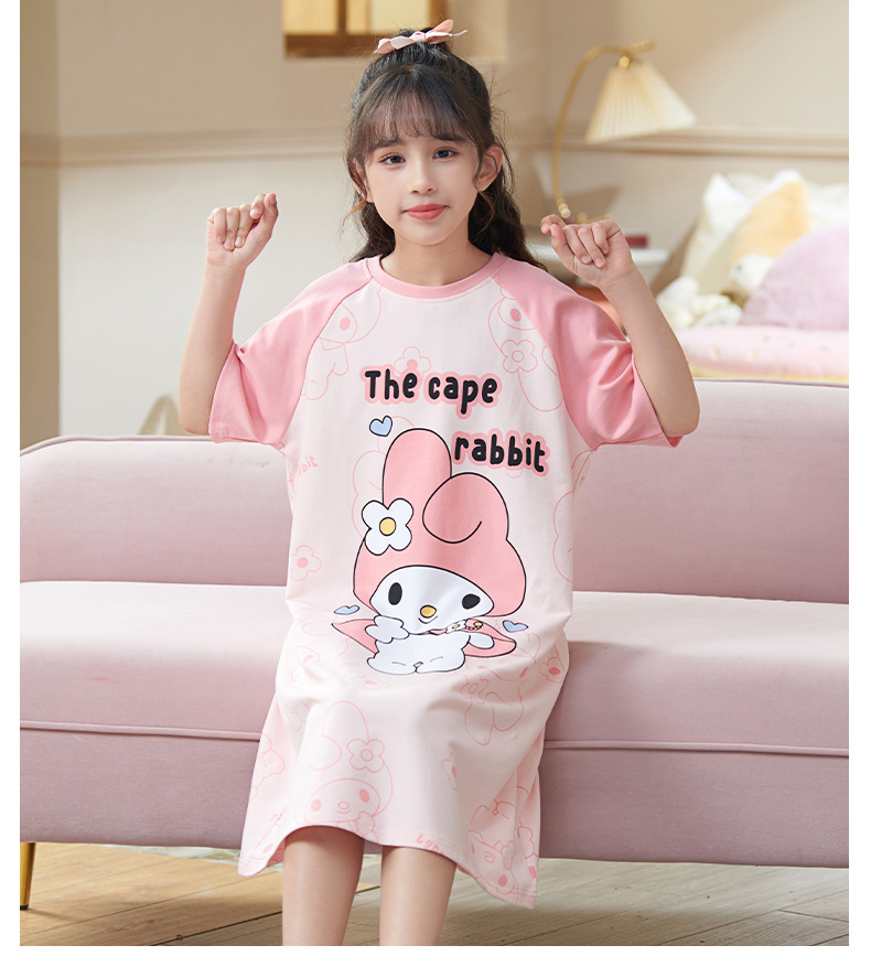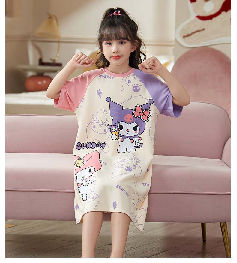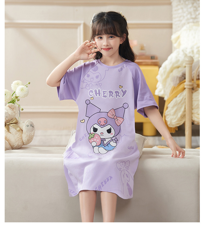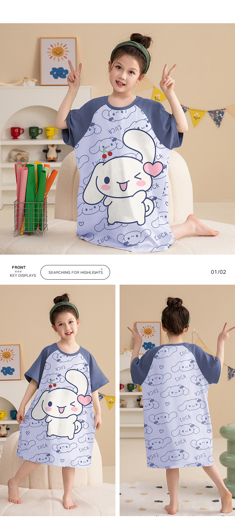 어린이 잠옷 2025 년 여름 새 순면 반소매 여아 잠옷 큰 어린이 어린 소녀의 원피스
