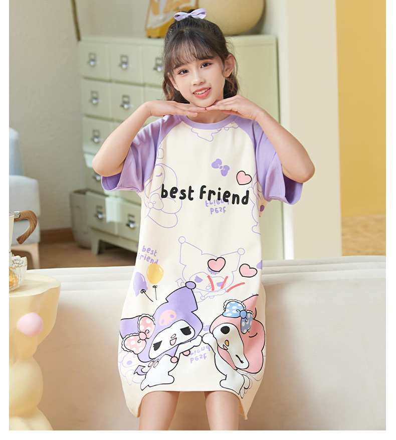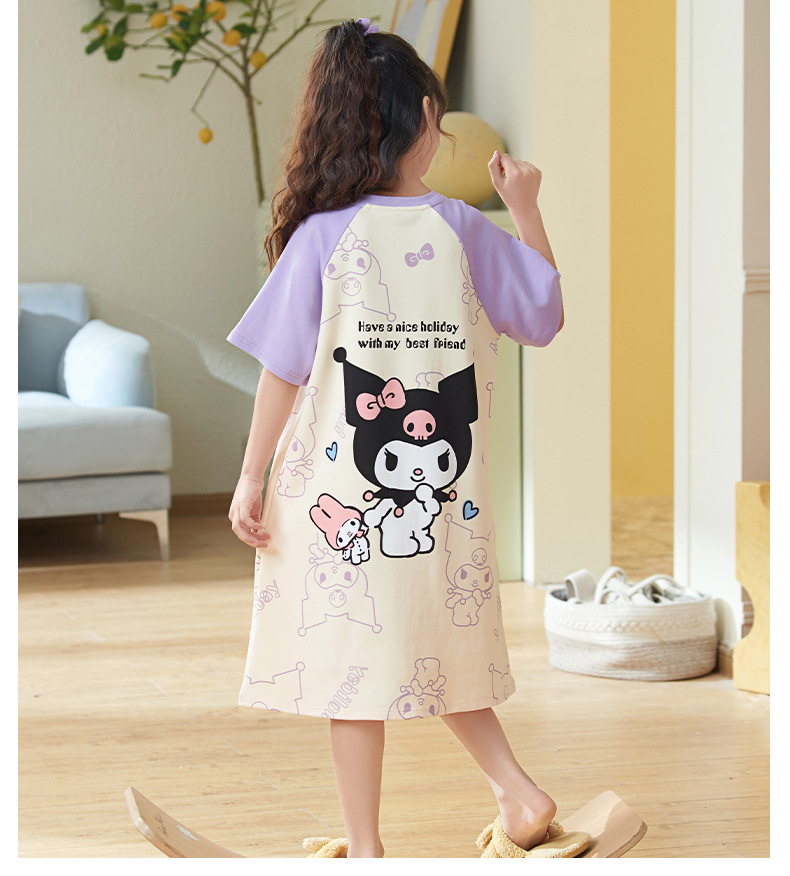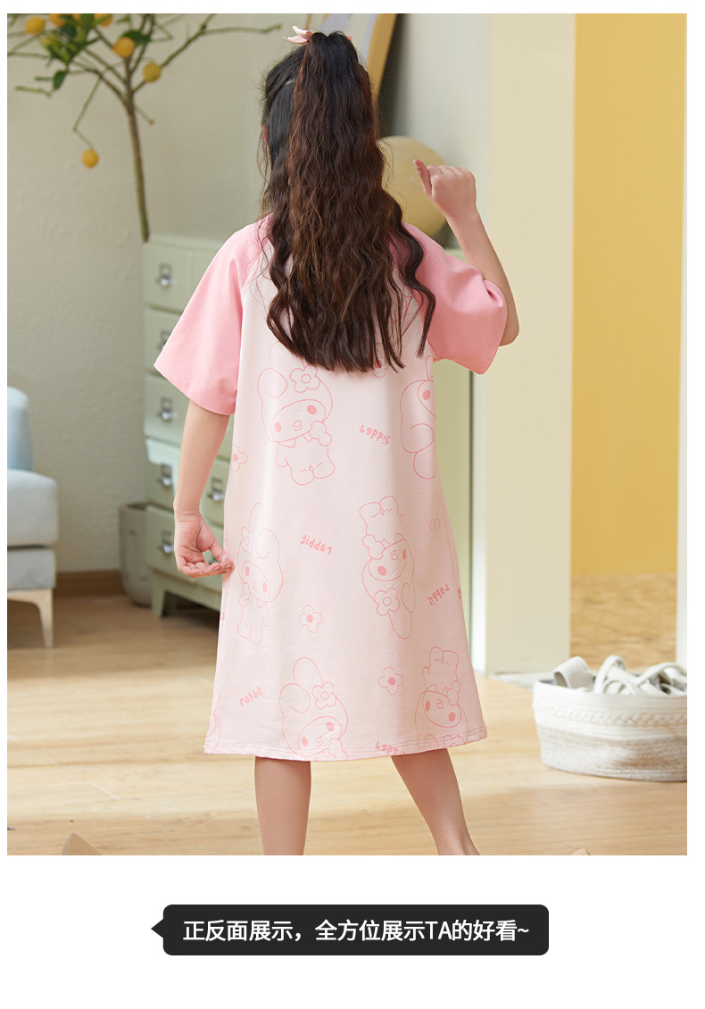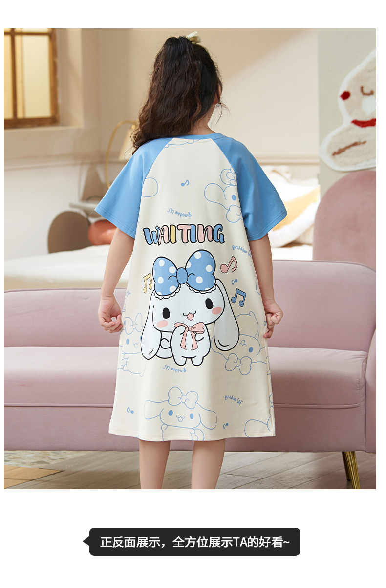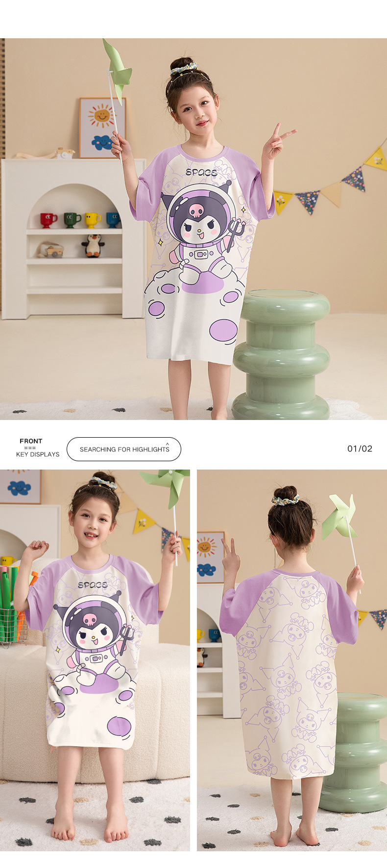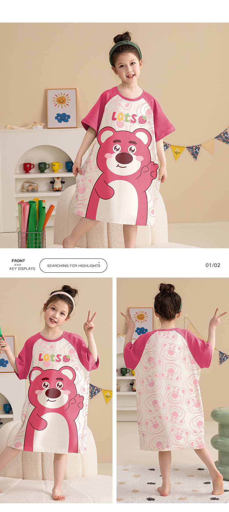 어린이 잠옷 2025 년 여름 새 순면 반소매 여아 잠옷 큰 어린이 어린 소녀의 원피스