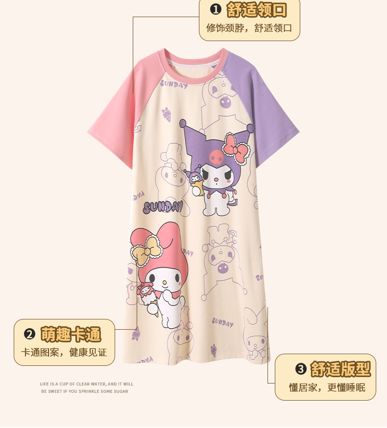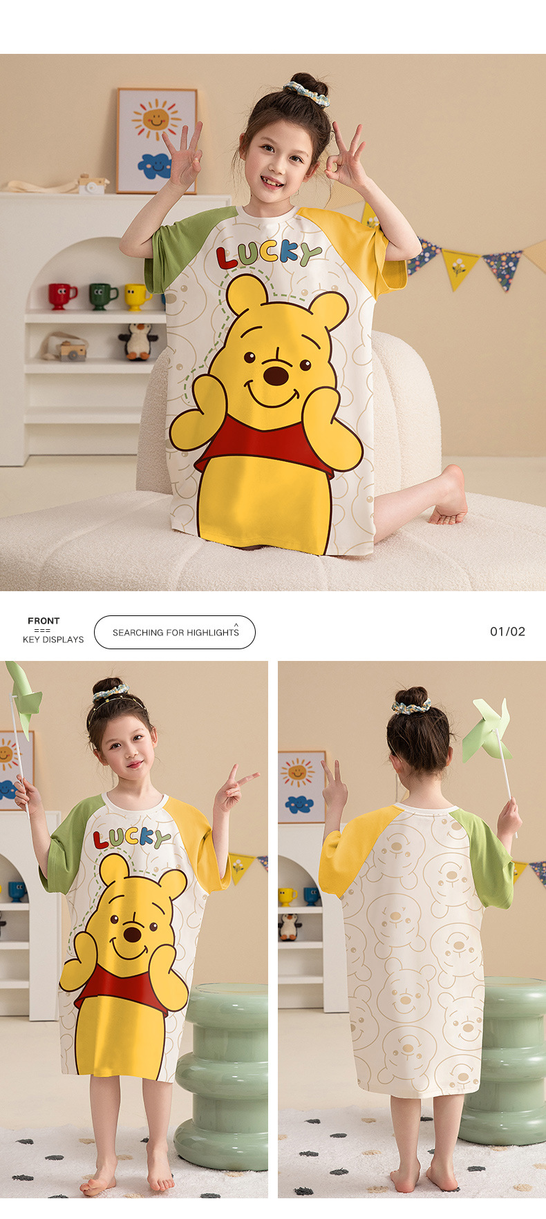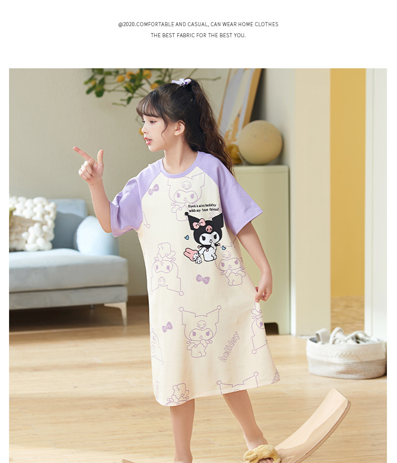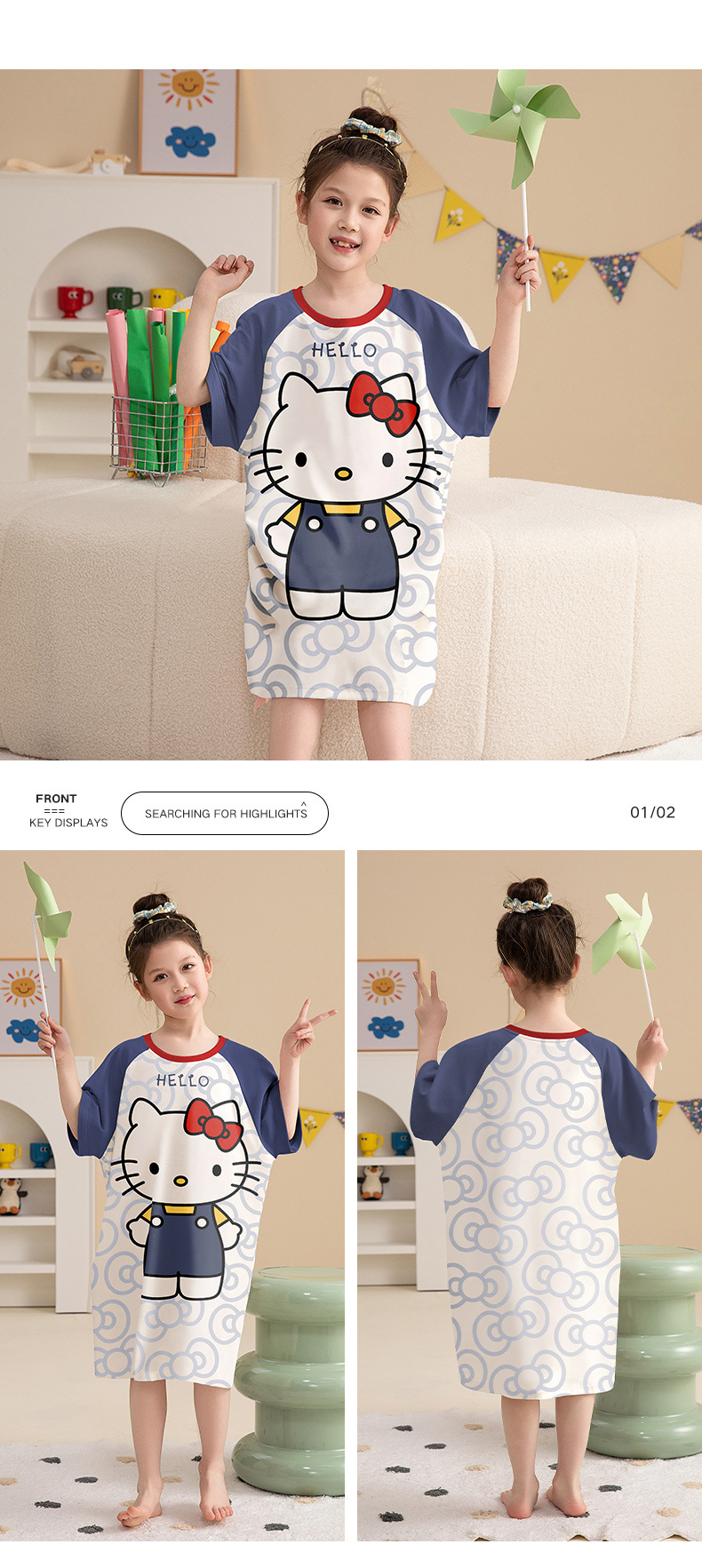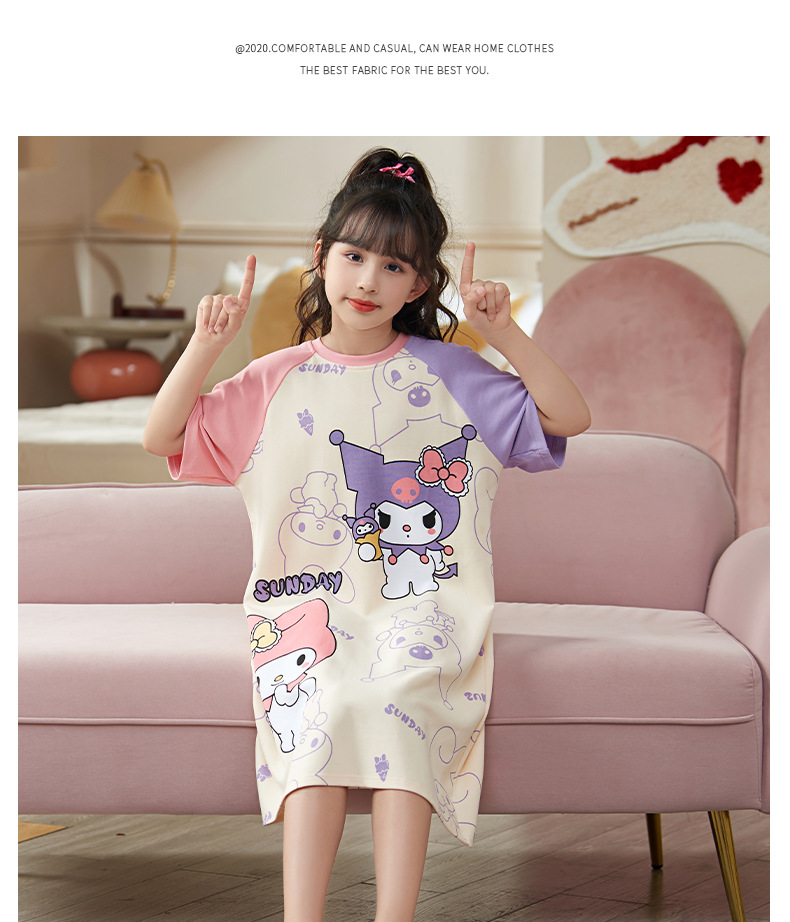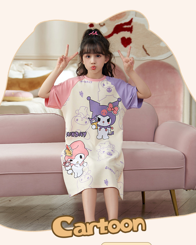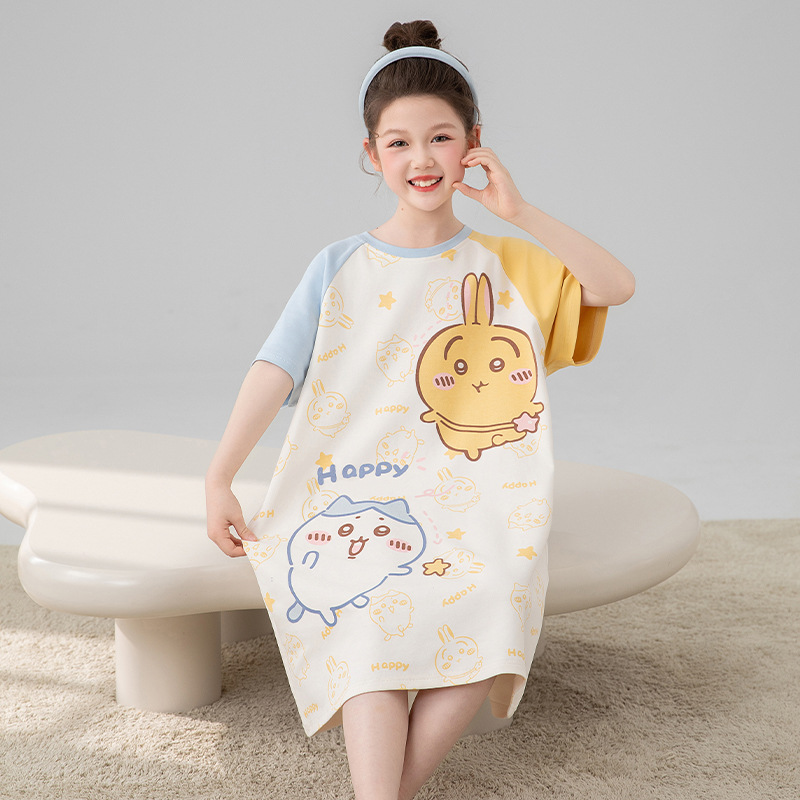 어린이 잠옷 2025 년 여름 새 순면 반소매 여아 잠옷 큰 어린이 어린 소녀의 원피스
