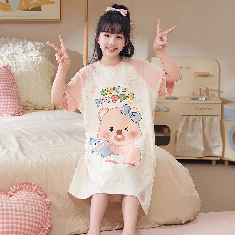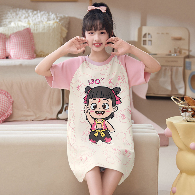어린이 잠옷 2025 년 여름 새 순면 반소매 여아 잠옷 큰 어린이 어린 소녀의 원피스스토어 가기