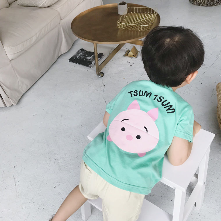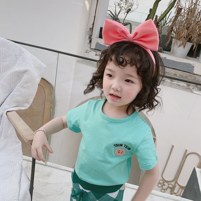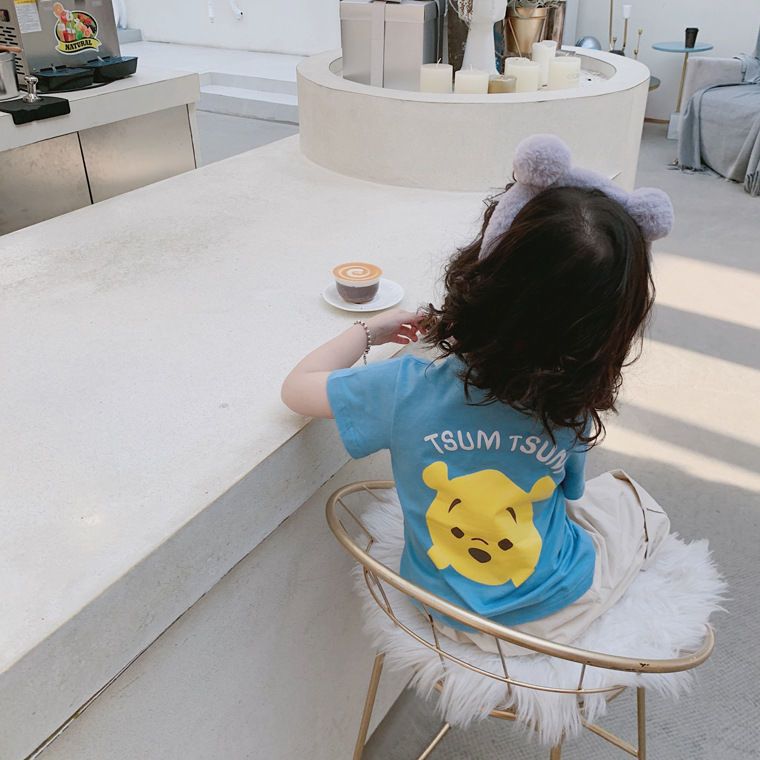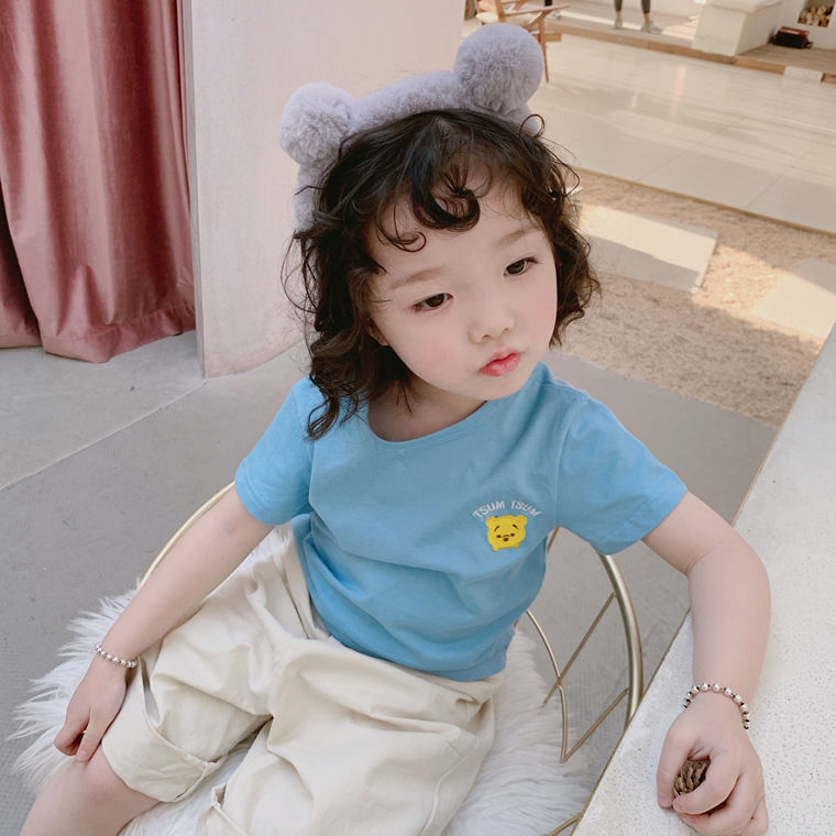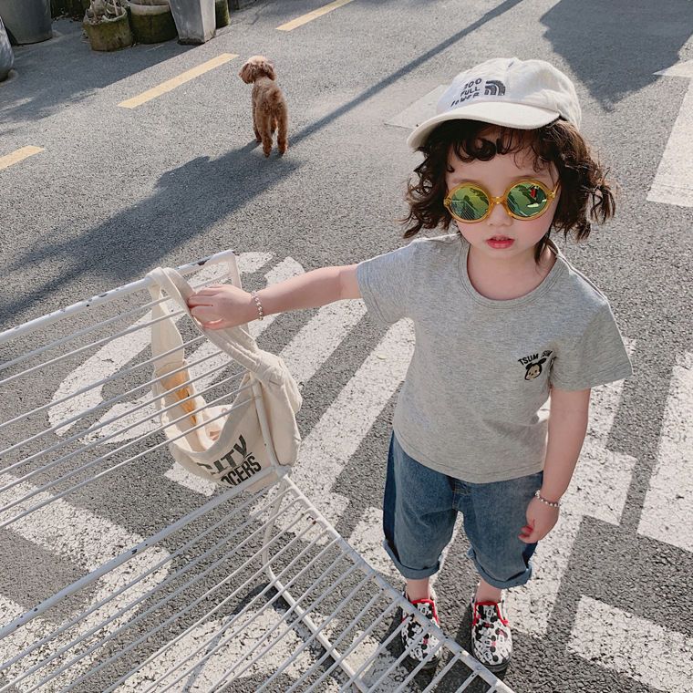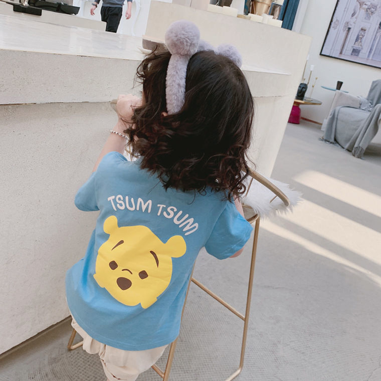 여름 의류 어린이 새로운 어린이 반팔 t 소녀 순수 코튼 라운드 넥 탑 만화 프린트 반팔 베이비베이스스토어 가기