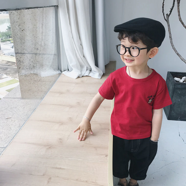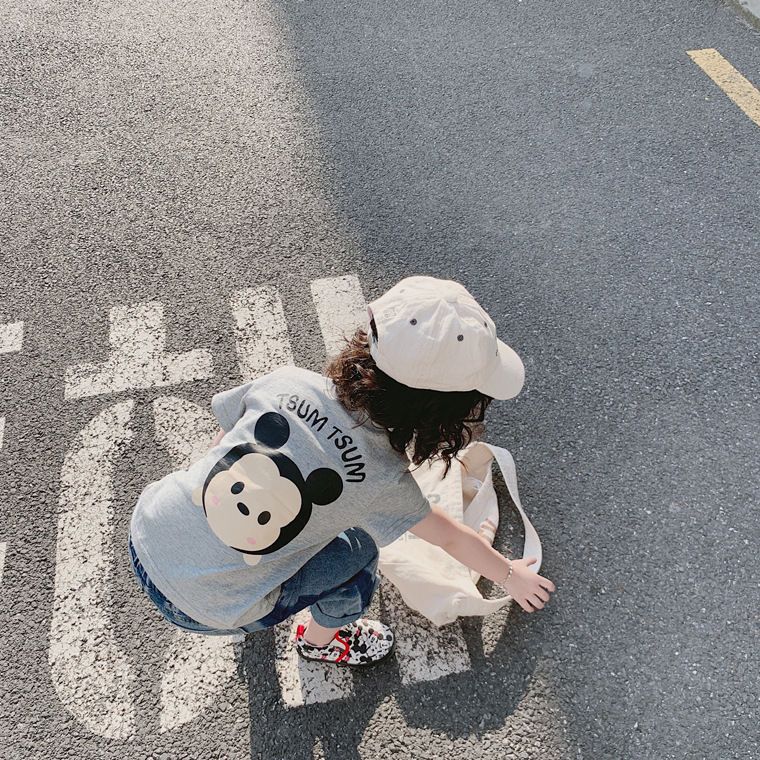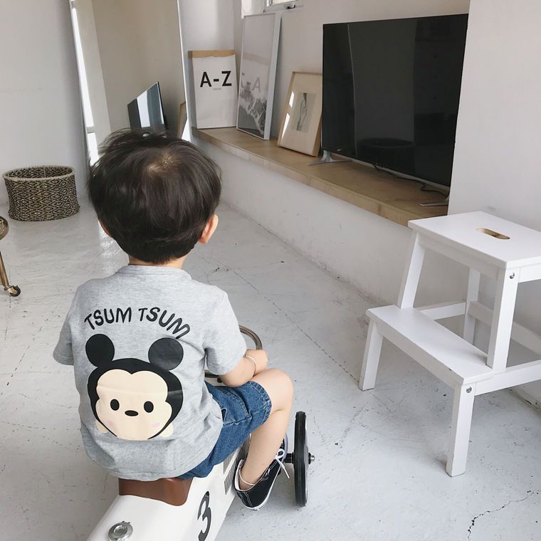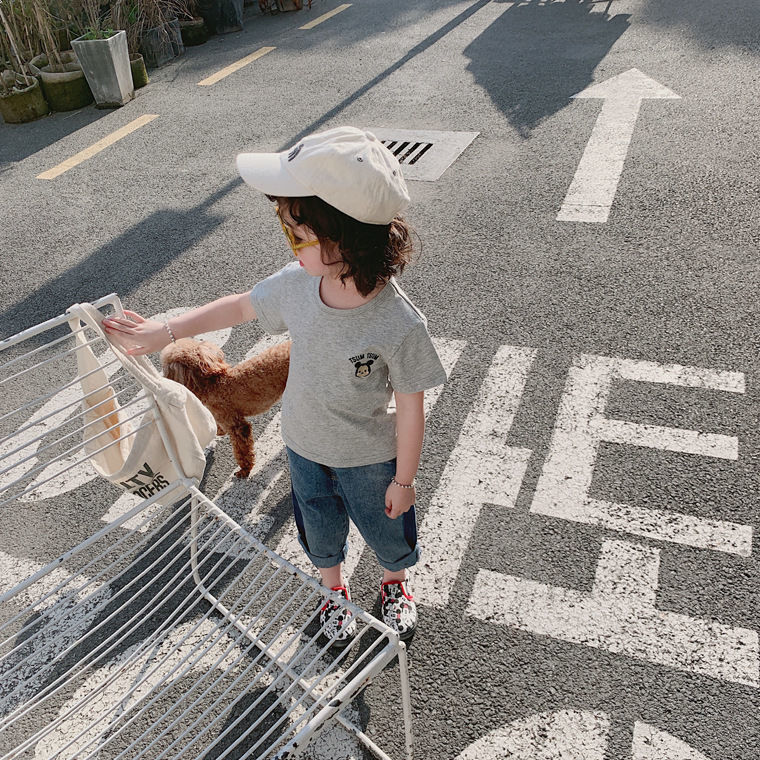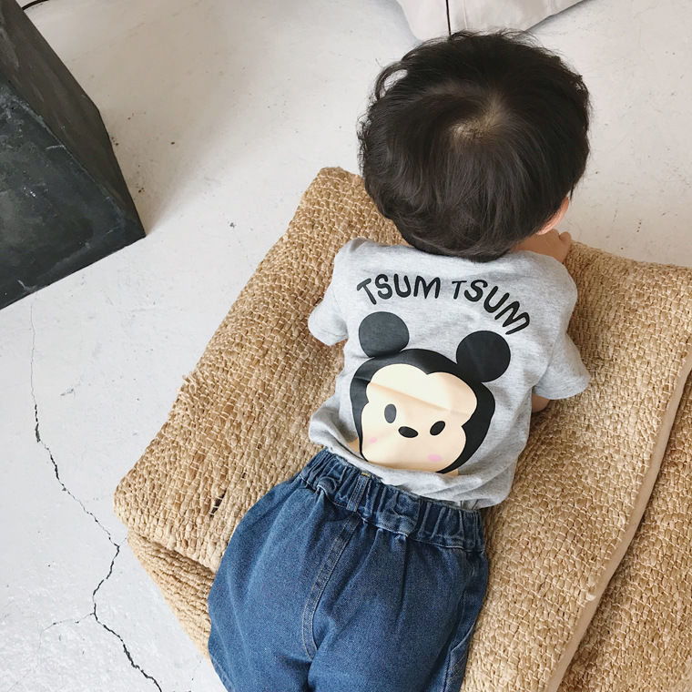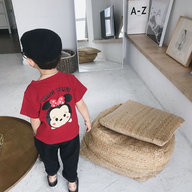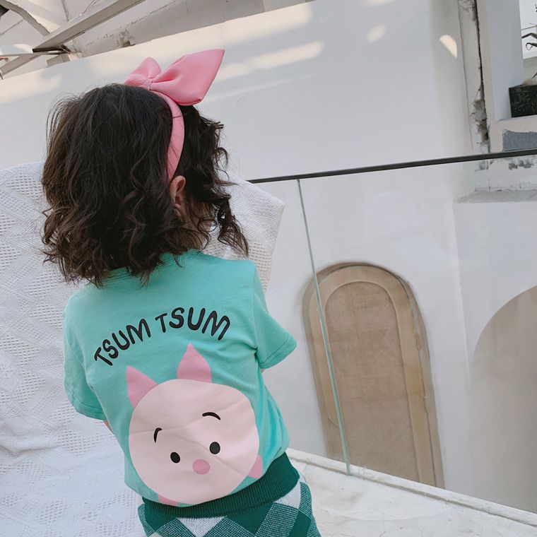여름 의류 어린이 새로운 어린이 반팔 t 소녀 순수 코튼 라운드 넥 탑 만화 프린트 반팔 베이비베이스스토어 가기