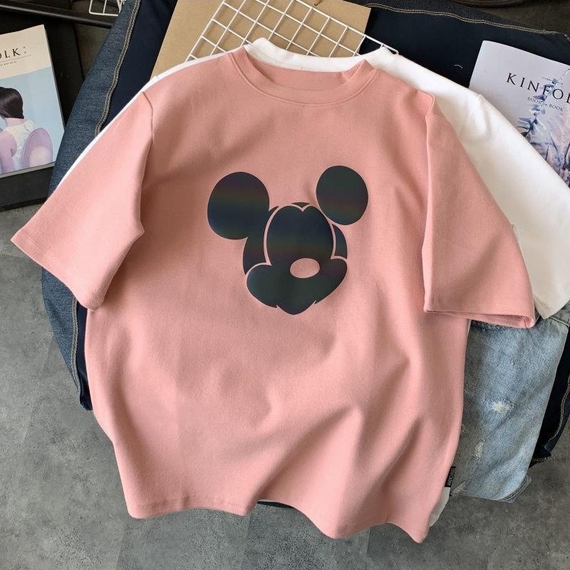 소년 소녀 용 코튼 반팔 티셔츠 2023 여름 한국식 만화 인쇄 미키 마우스 탑스토어 가기