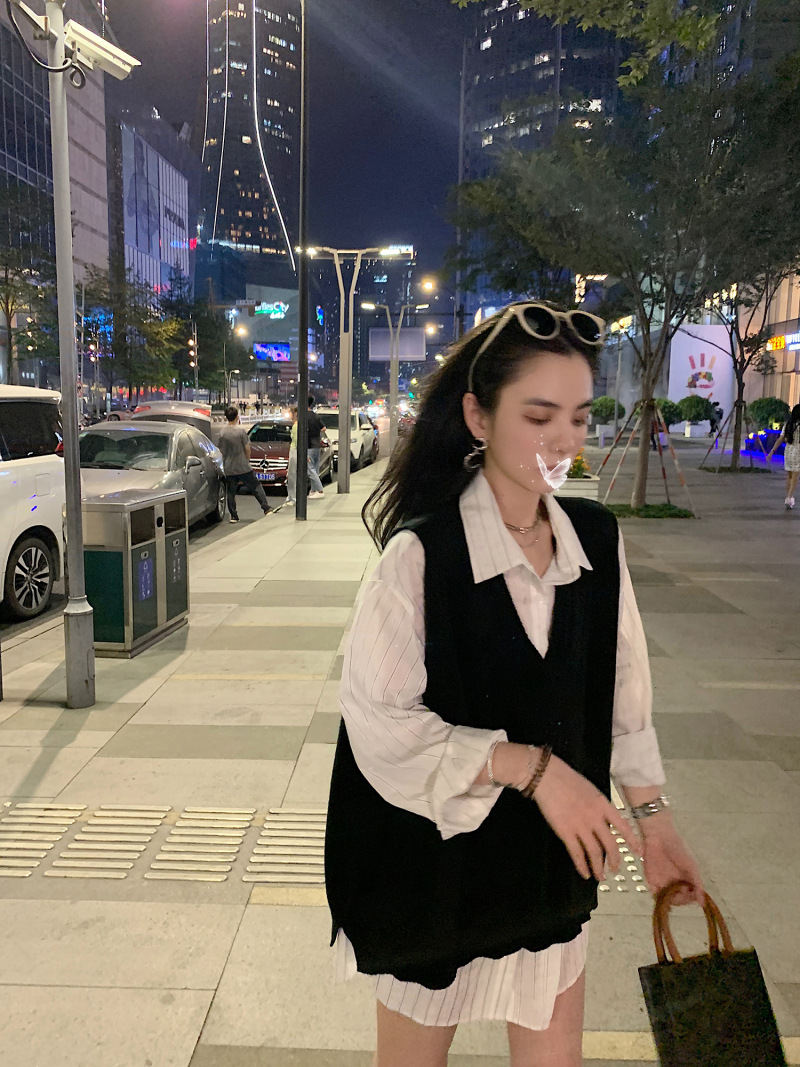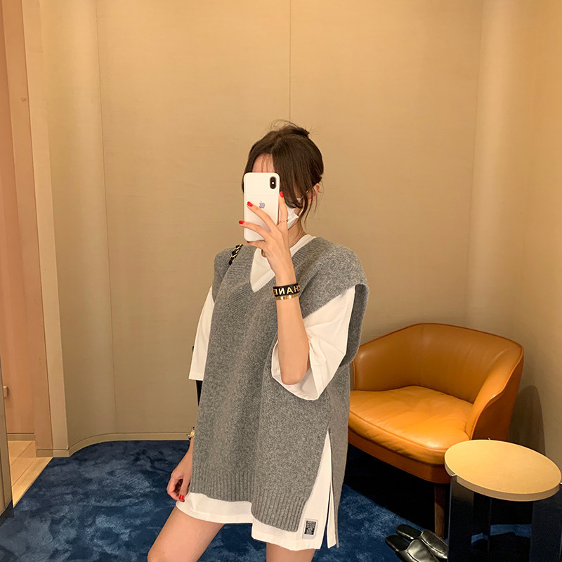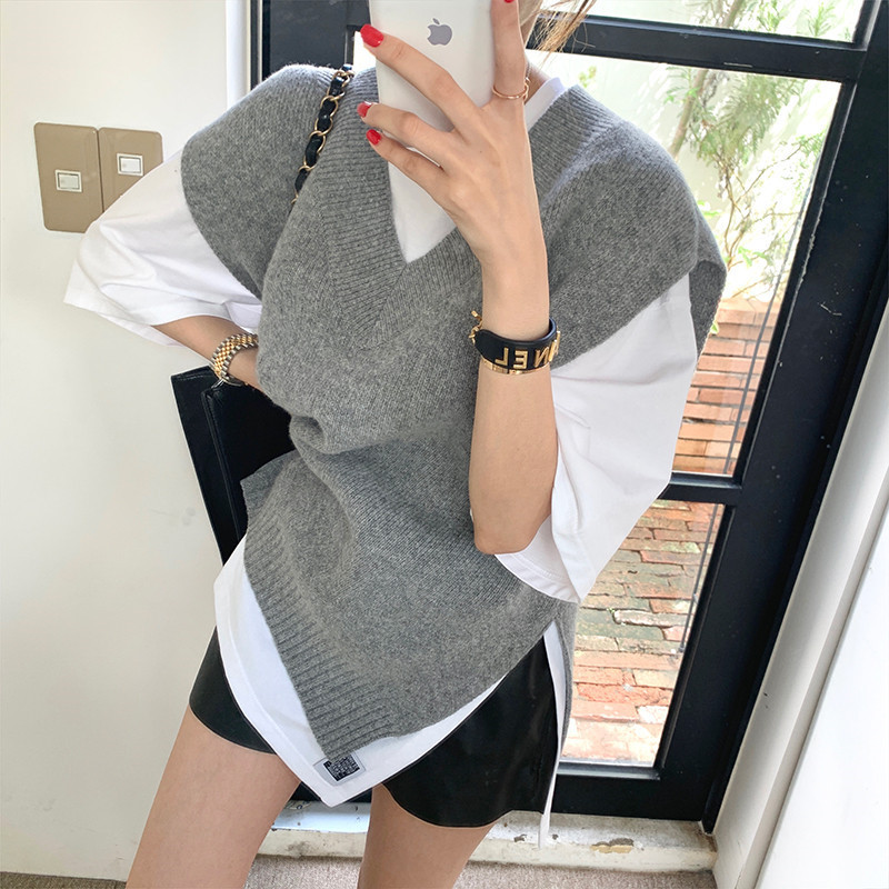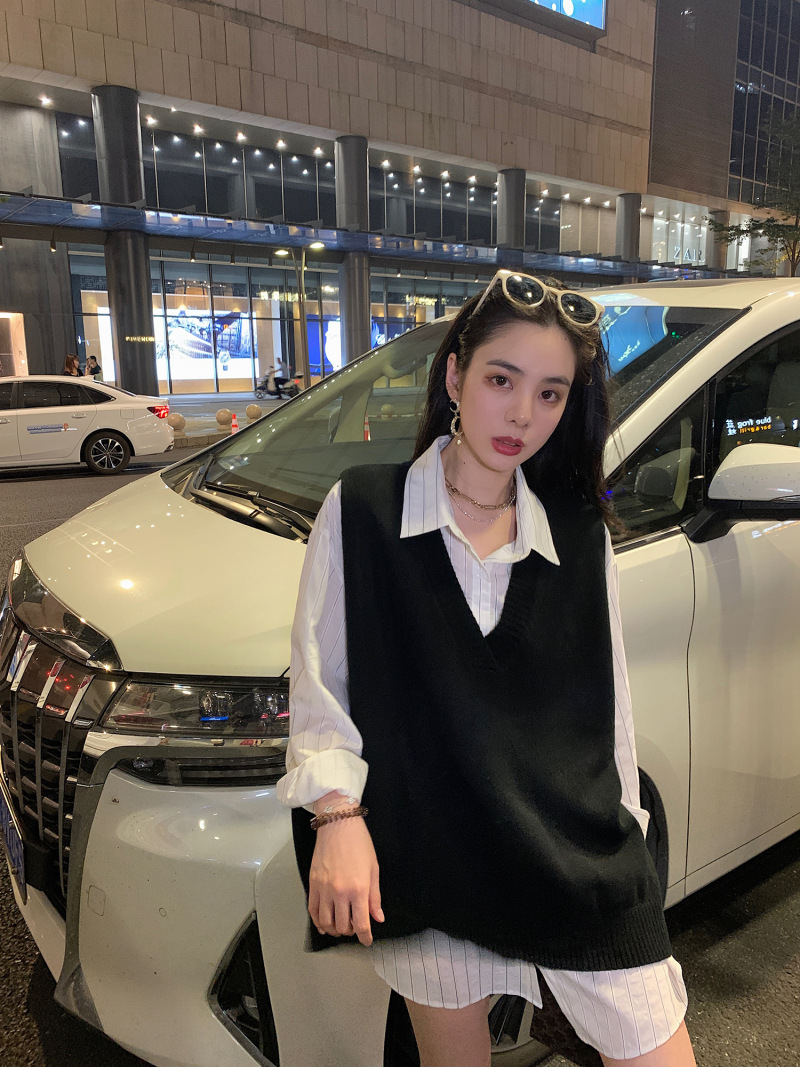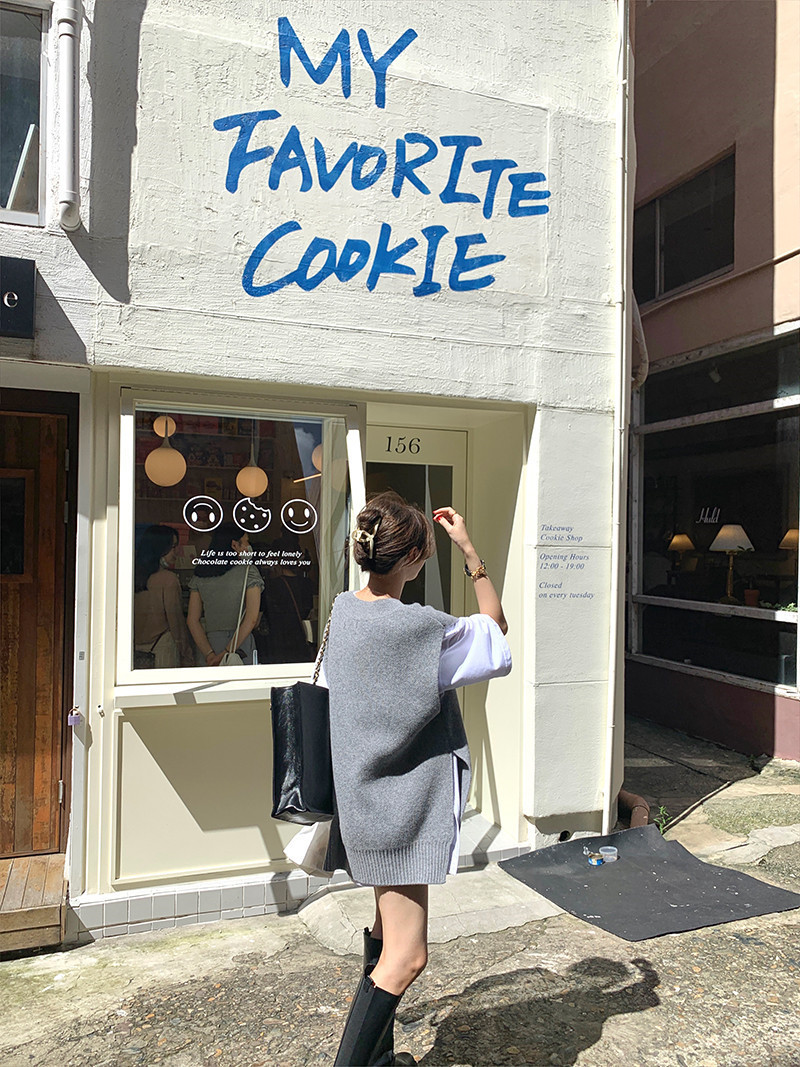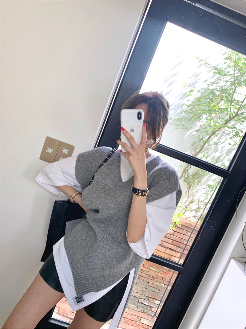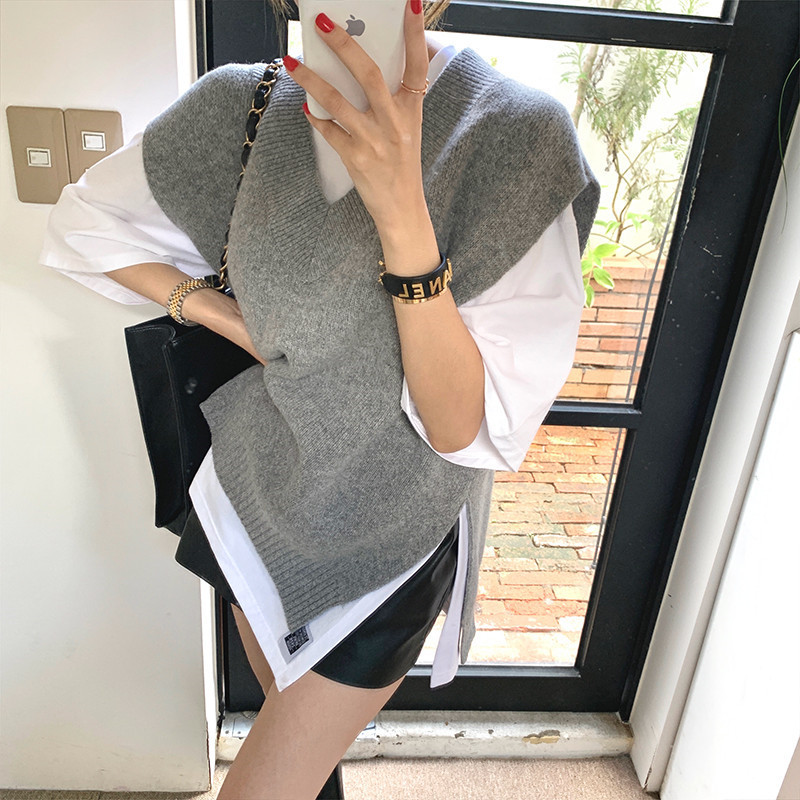 2023 봄과 가을 새로운 여성 의류 한국 스타일 느슨한 대학 스타일 올 매치 외부 착용 V 넥 니트 조끼 여성 스웨터 조끼스토어 가기