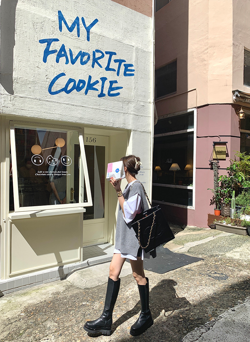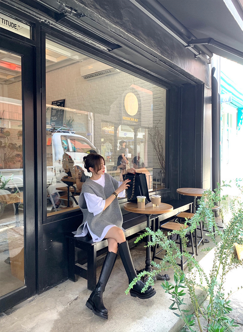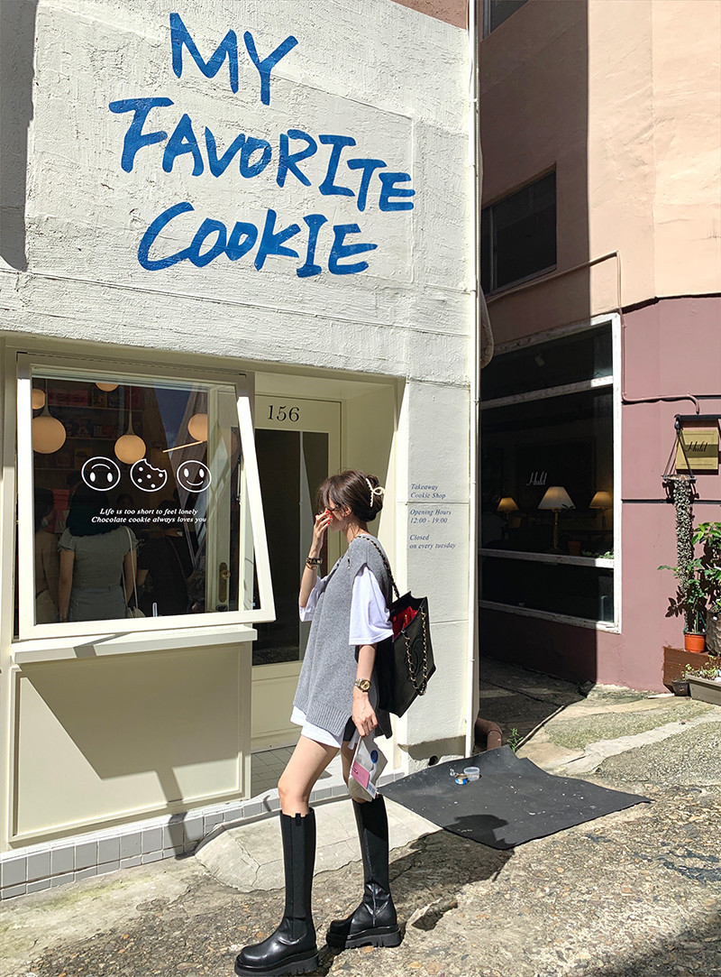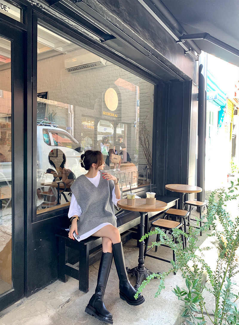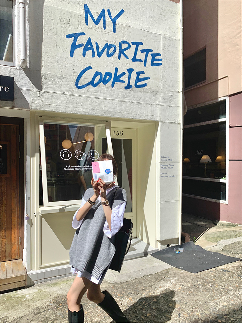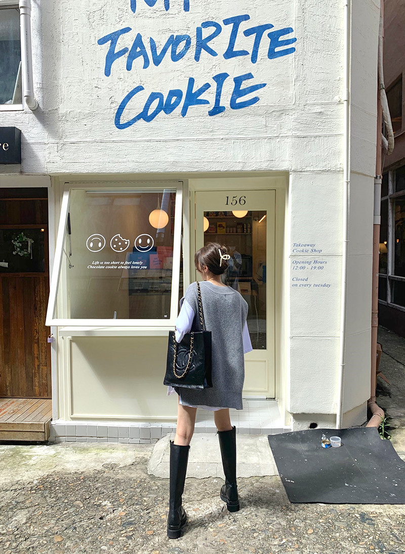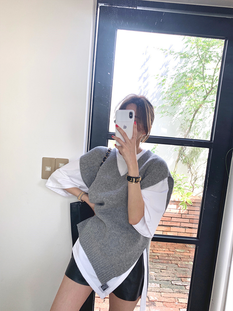 2023 봄과 가을 새로운 여성 의류 한국 스타일 느슨한 대학 스타일 올 매치 외부 착용 V 넥 니트 조끼 여성 스웨터 조끼스토어 가기