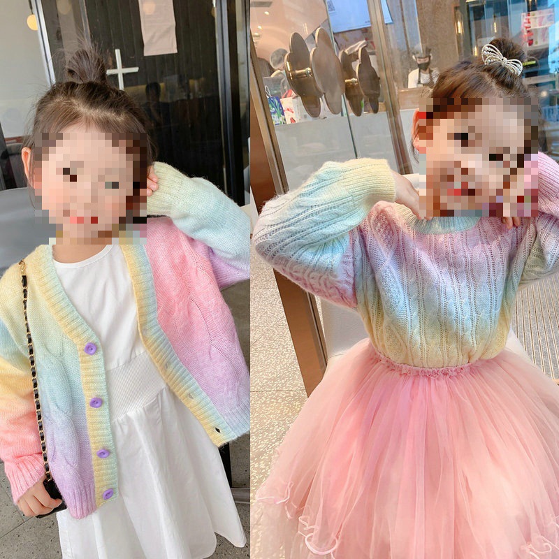 여아용 스웨터 무지개색 롱벨벳 아웃도어 가디건 스웨터 25 가을 겨울 신상품 수출용 아동복 3-8세스토어 가기
