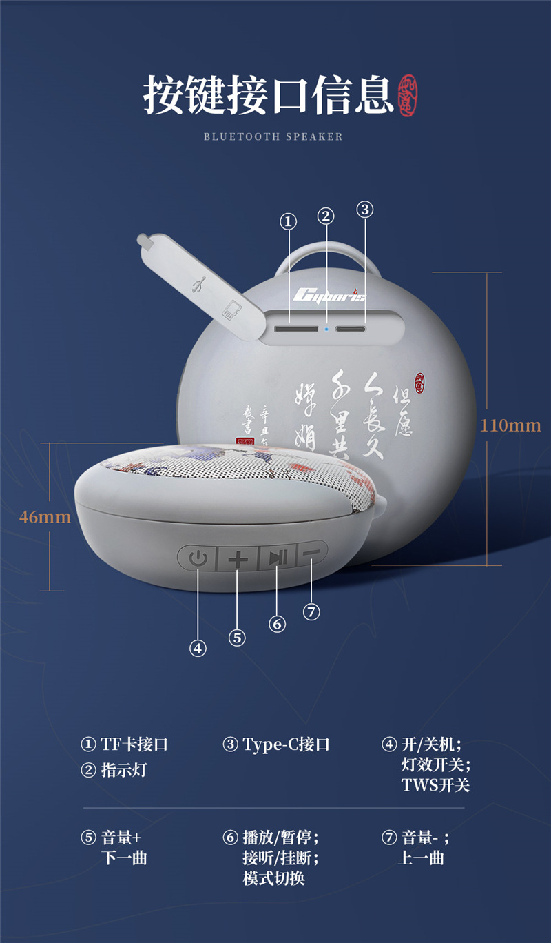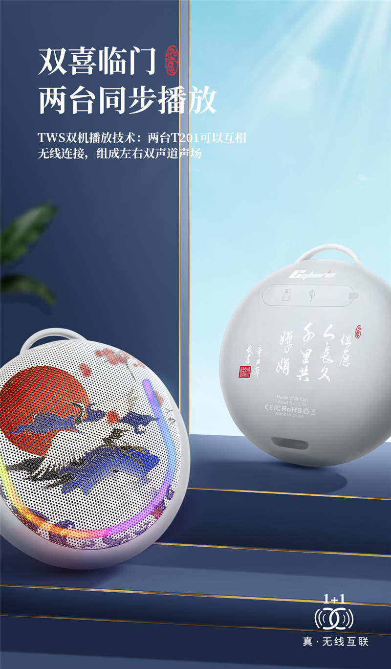 사이보리 중국 스타일 무선 블루투스 방수 스피커 야외 승마 휴대용 라디오 패션 선물스토어 가기