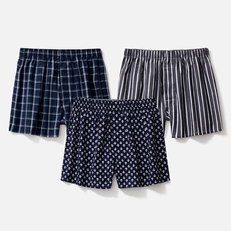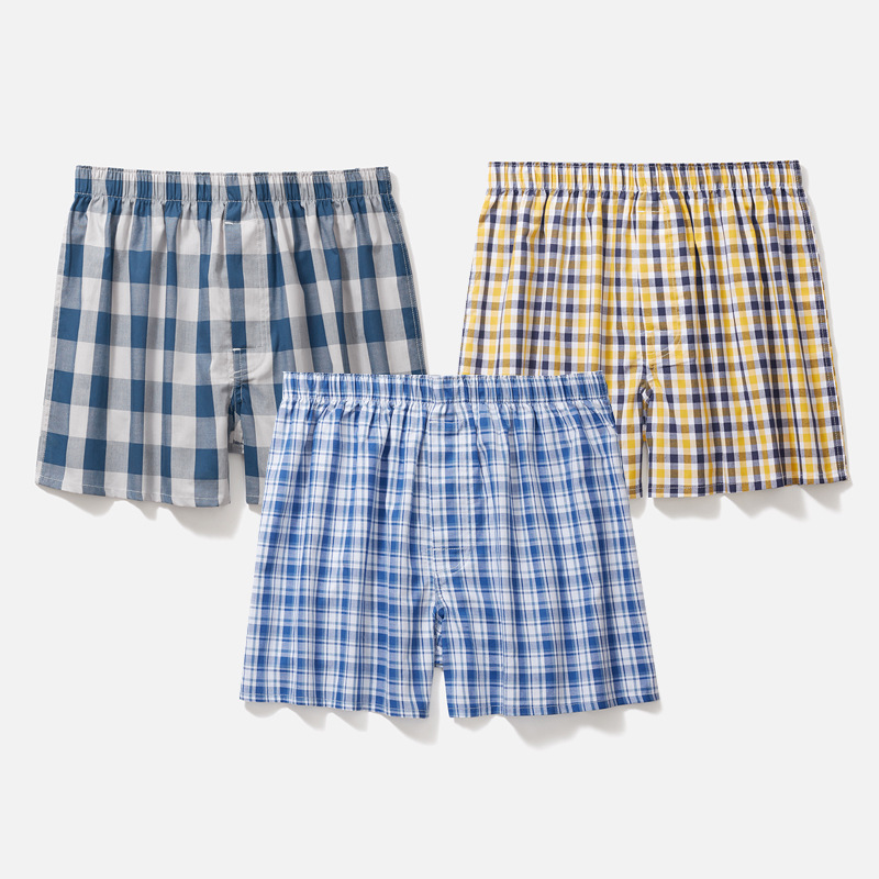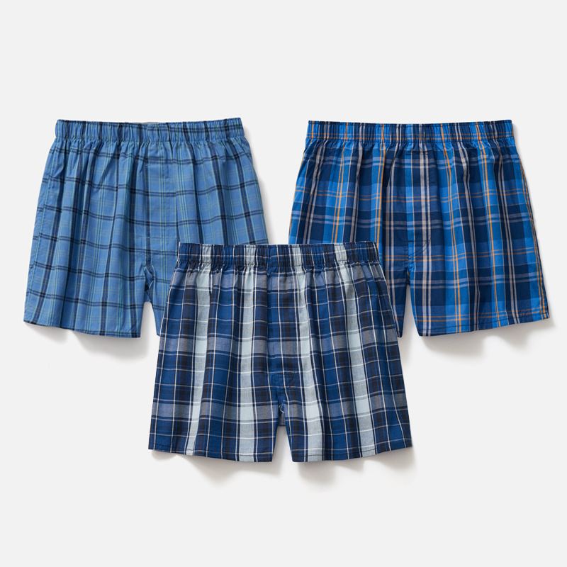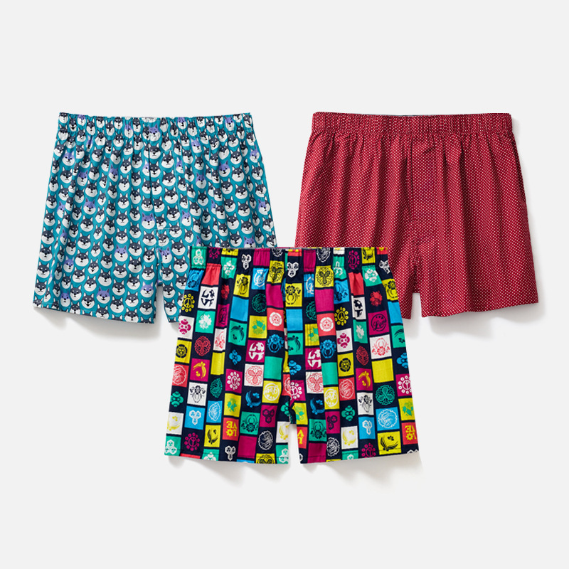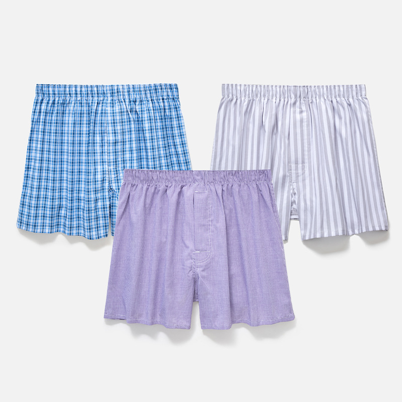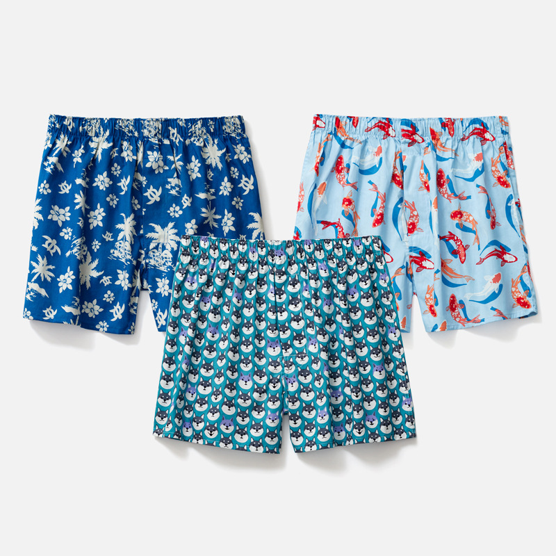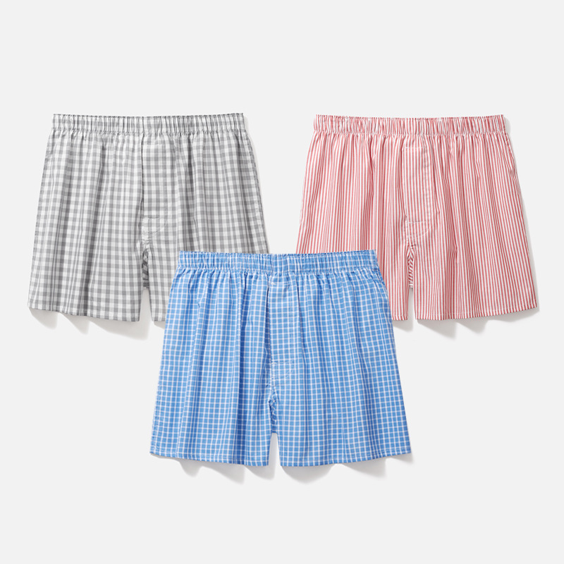 남성용 순면 사각팬티 3종 세트, 빅사이즈 청소년용 사각팬티, 잠옷 반바지, 루즈핏, 외출복으로도 착용 가능스토어 가기
