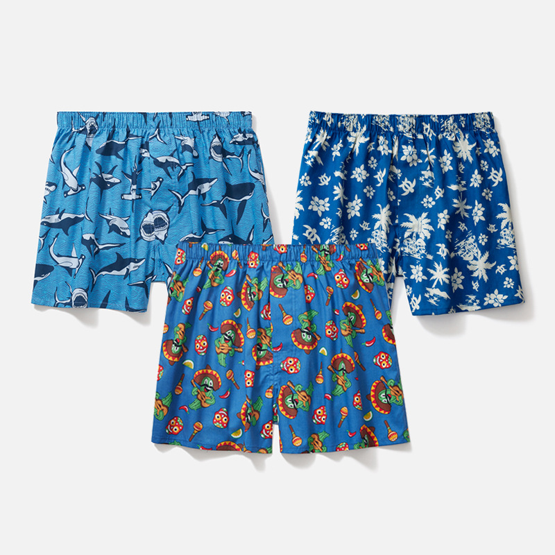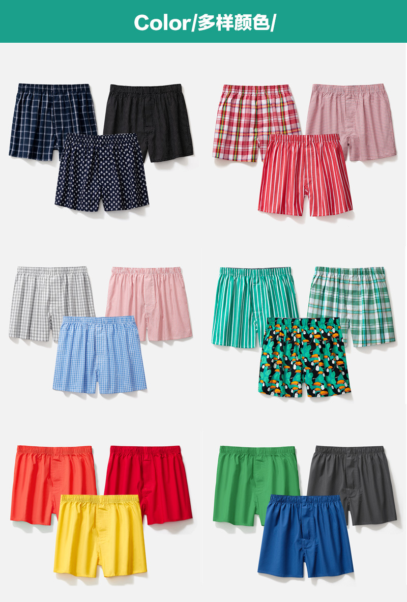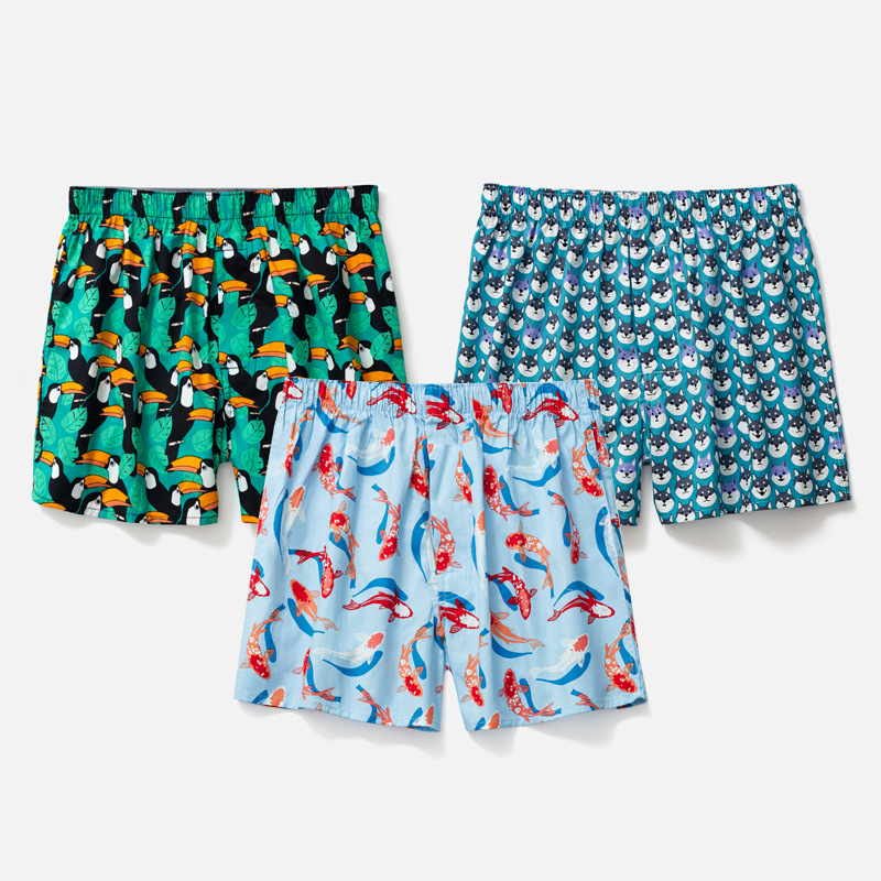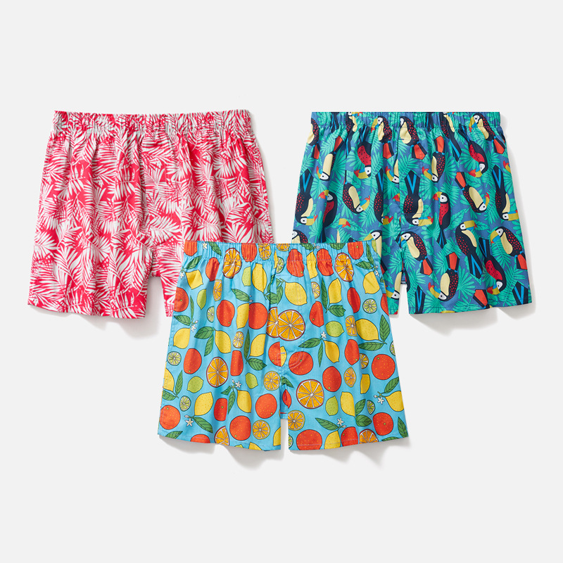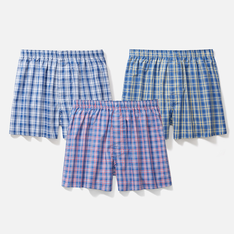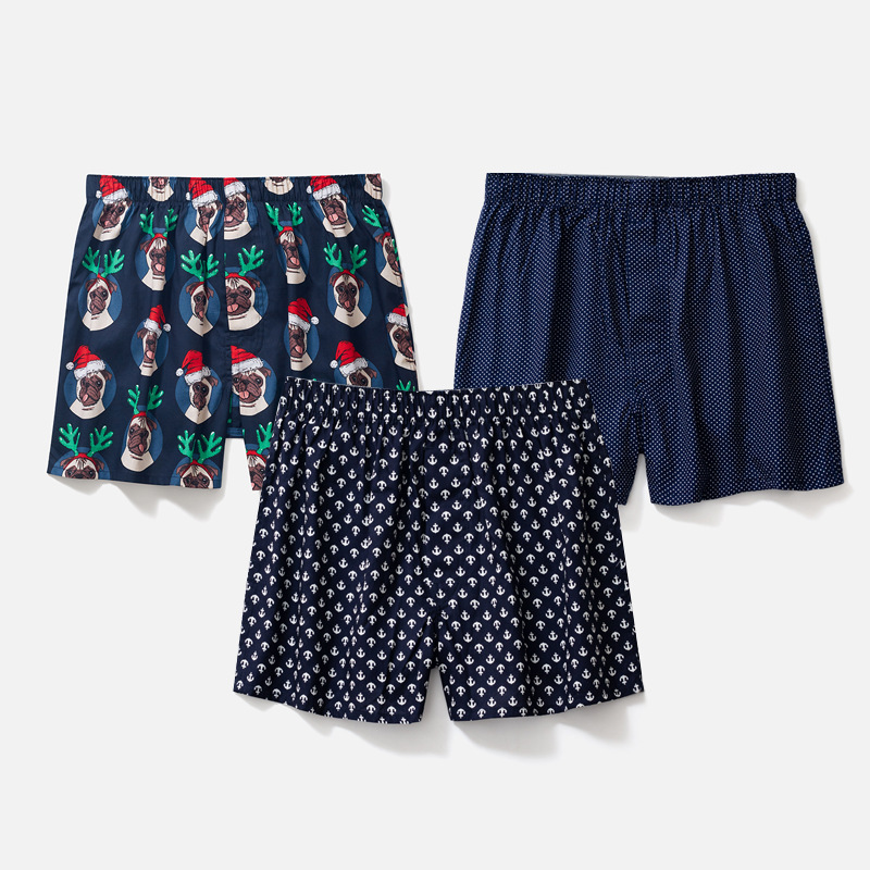 남성용 순면 사각팬티 3종 세트, 빅사이즈 청소년용 사각팬티, 잠옷 반바지, 루즈핏, 외출복으로도 착용 가능스토어 가기