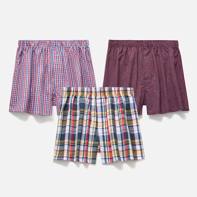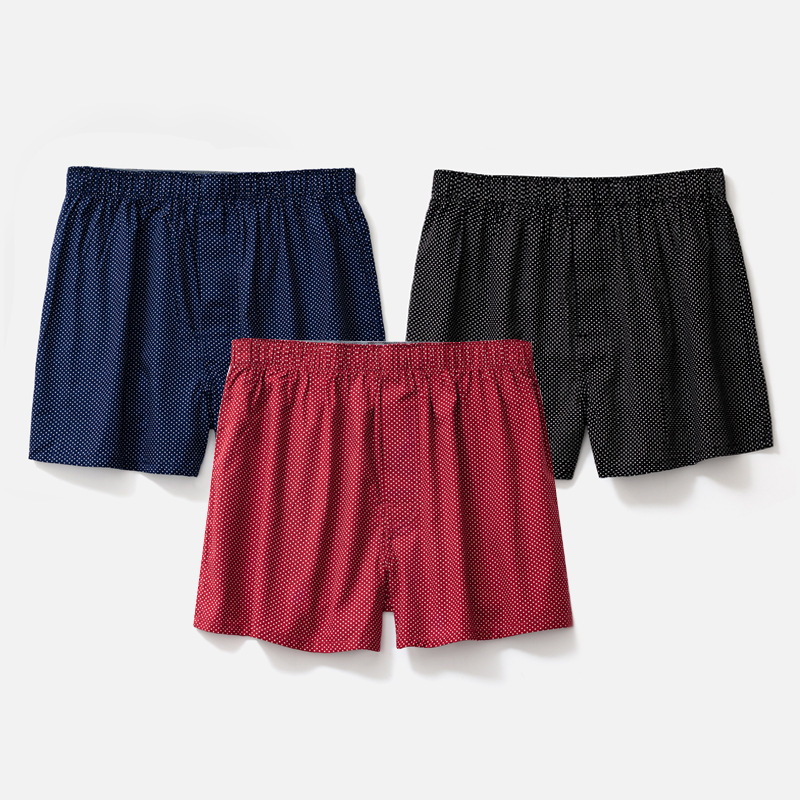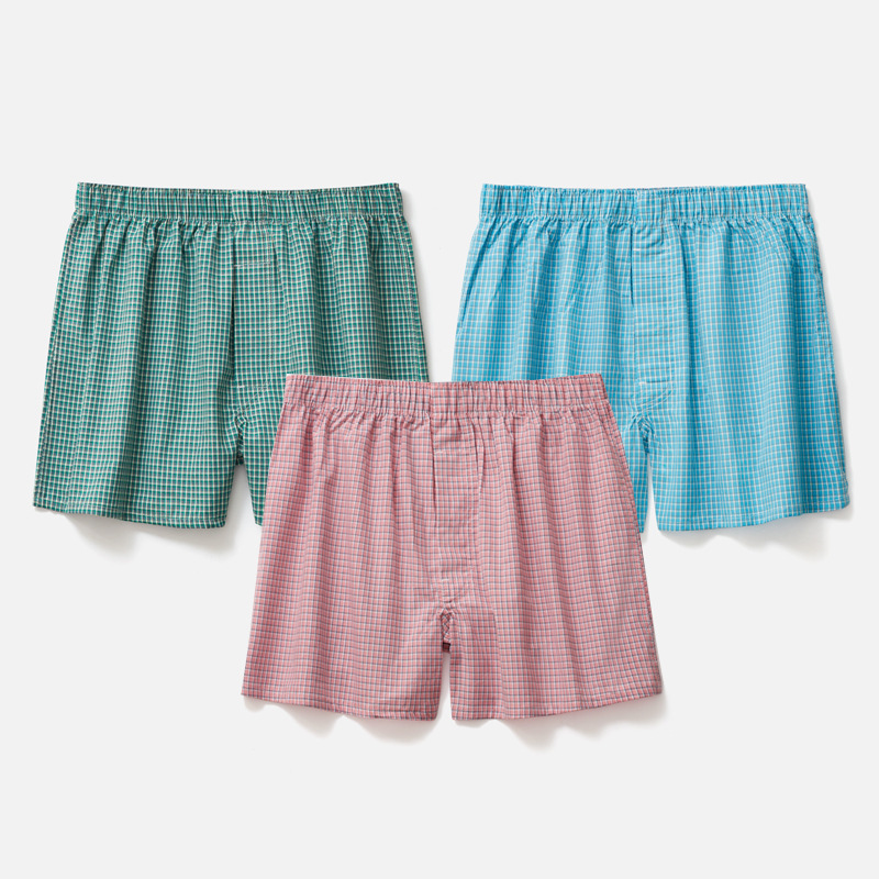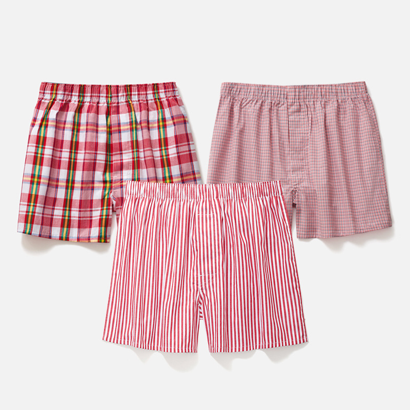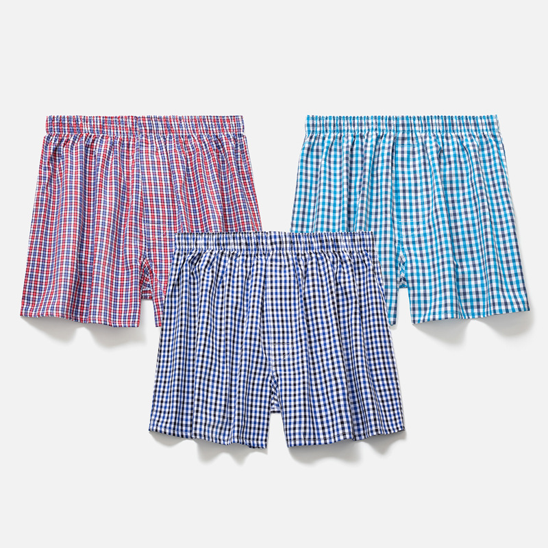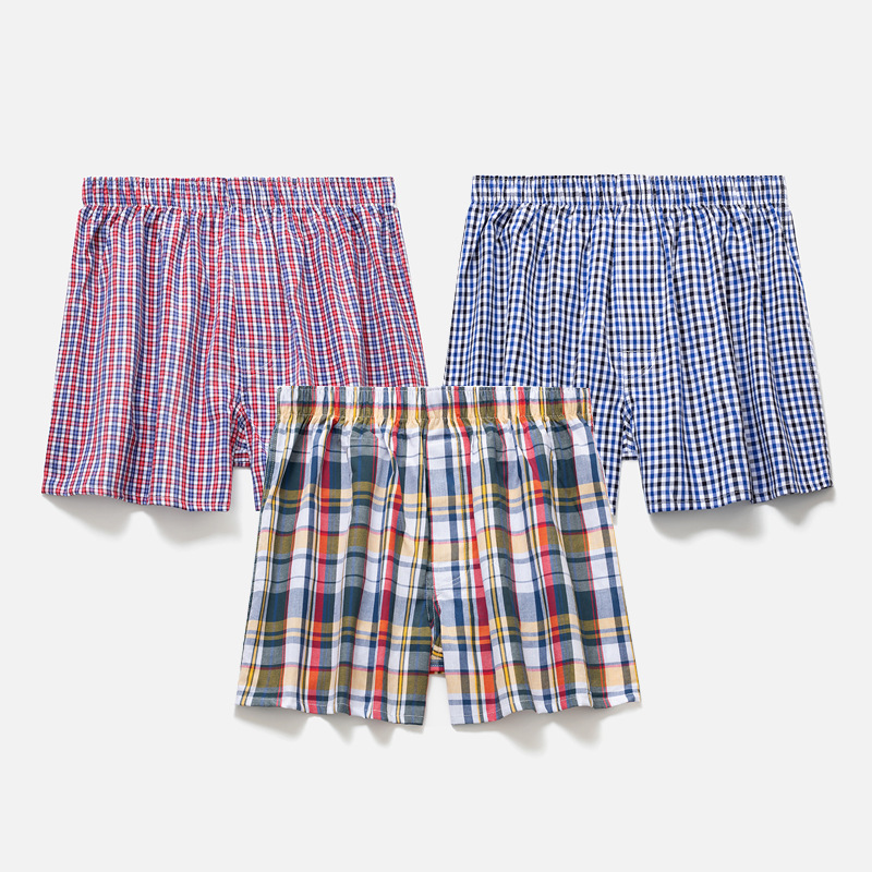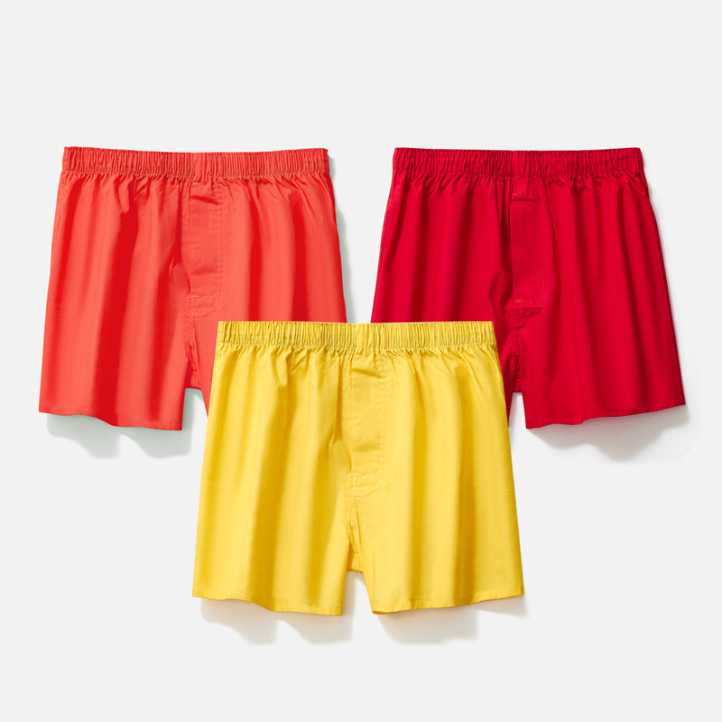 남성용 순면 사각팬티 3종 세트, 빅사이즈 청소년용 사각팬티, 잠옷 반바지, 루즈핏, 외출복으로도 착용 가능