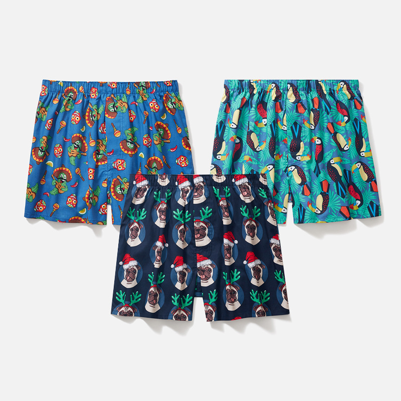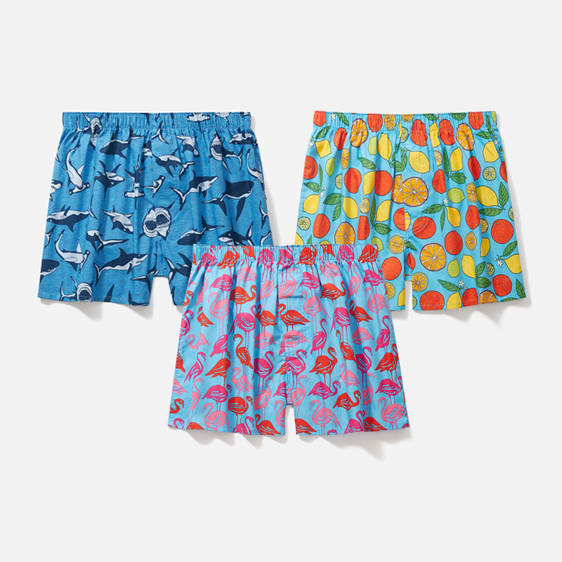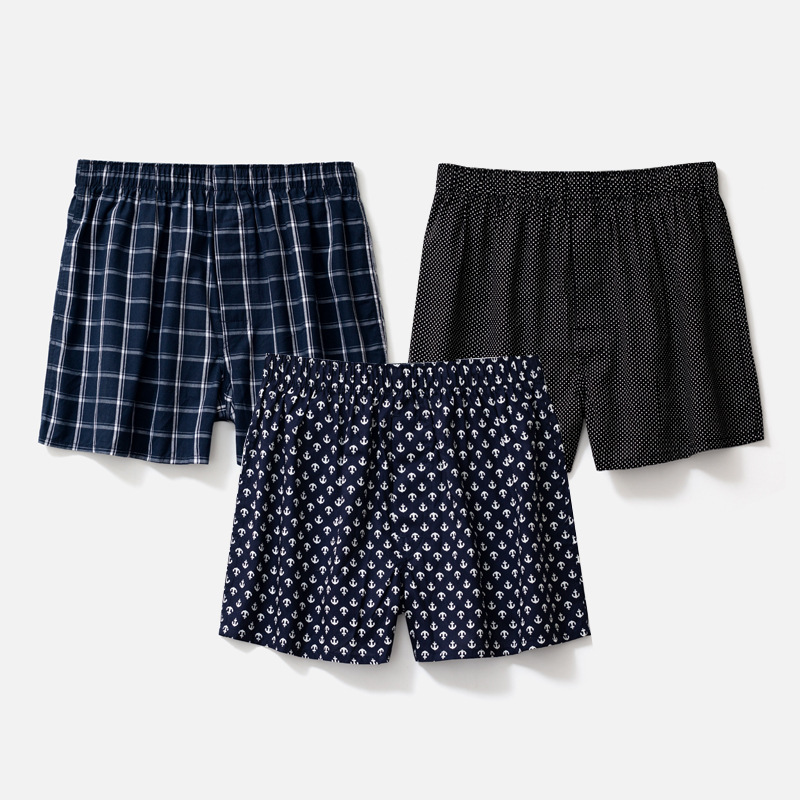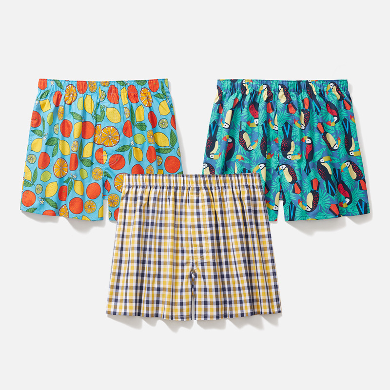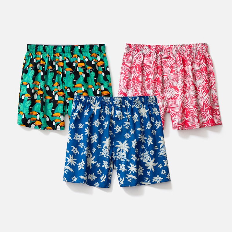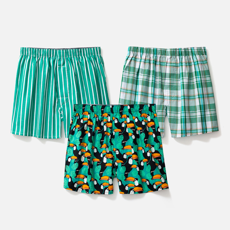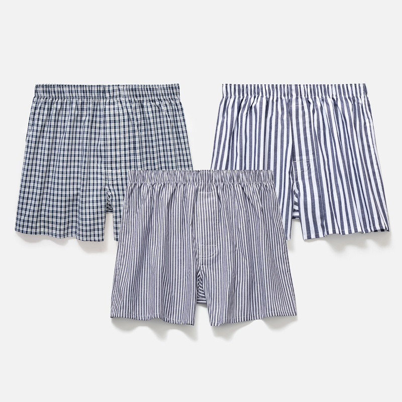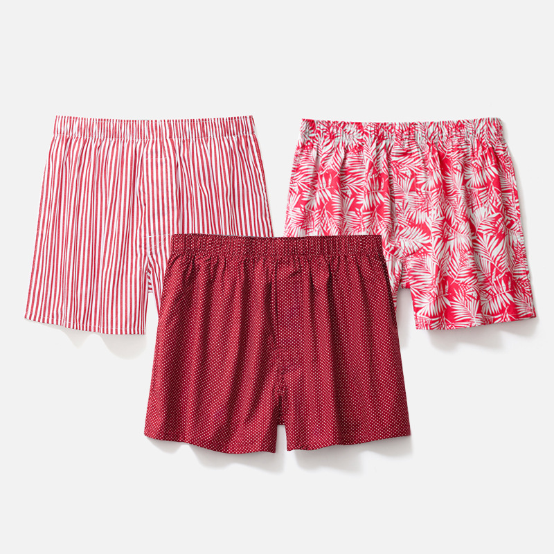 남성용 순면 사각팬티 3종 세트, 빅사이즈 청소년용 사각팬티, 잠옷 반바지, 루즈핏, 외출복으로도 착용 가능
