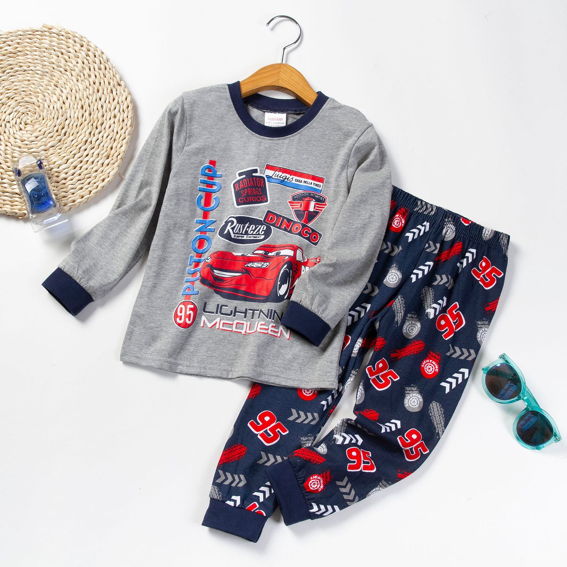 새로운 굴삭기 자동차 어린이 잠옷 봄과 가을 면 긴 소매 세트 소년 어린이 가정 의류 당일 출고 가능스토어 가기