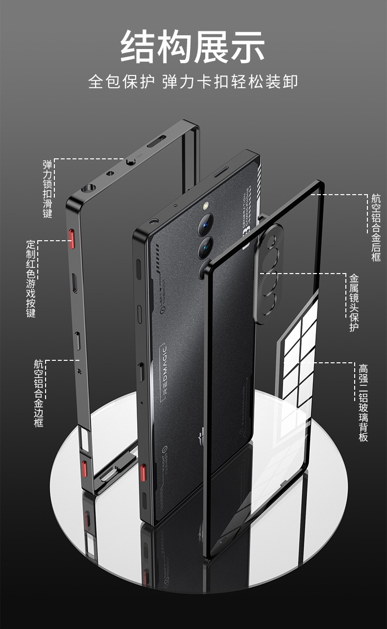 국경 간 응용 프로그램 Remagic Red Devils 8Spro 메탈 프레임 단면 스냅 버튼 휴대 전화 케이스 자기 보호 미러 Z50Ultra