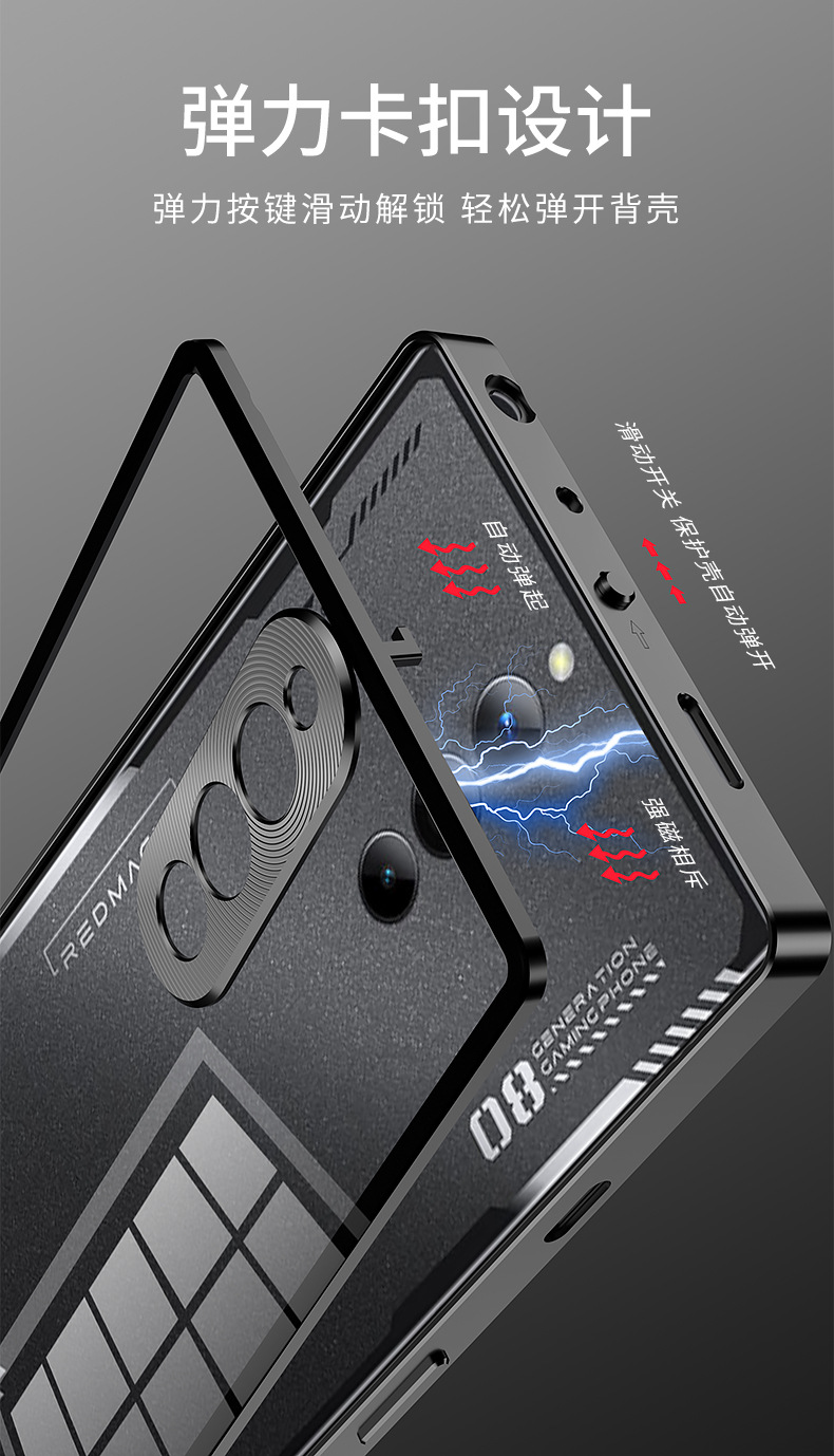 국경 간 응용 프로그램 Remagic Red Devils 8Spro 메탈 프레임 단면 스냅 버튼 휴대 전화 케이스 자기 보호 미러 Z50Ultra스토어 가기