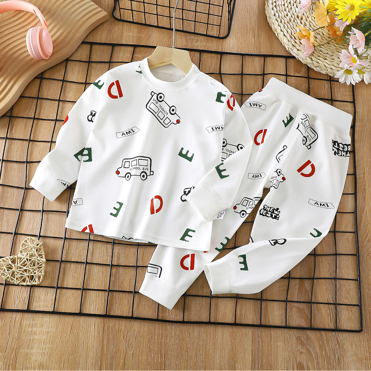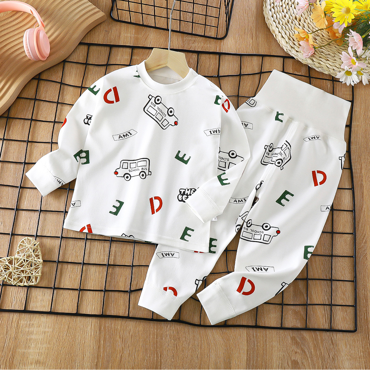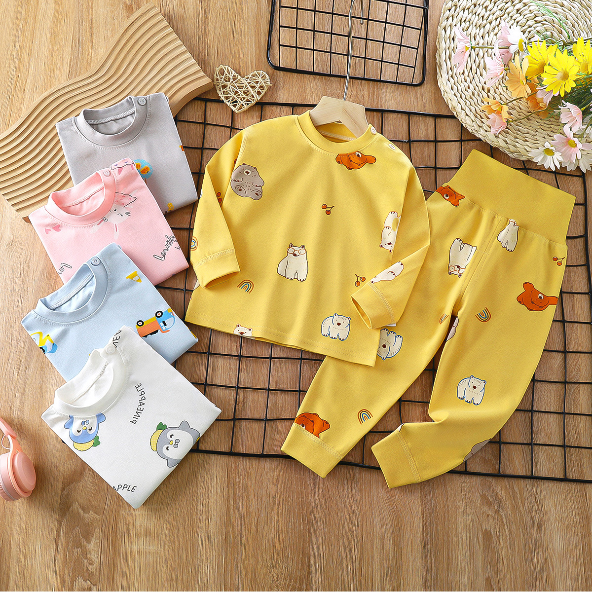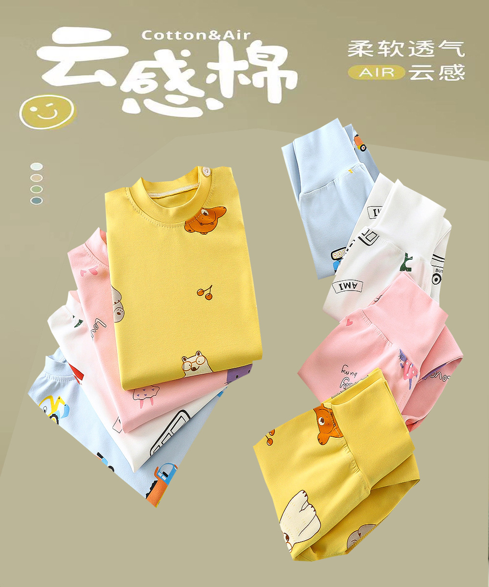 2023 봄 새로운 만화 면 세트 남자와 여자 긴 소매 속옷 가을 바지 어린이 잠옷 가정 옷스토어 가기