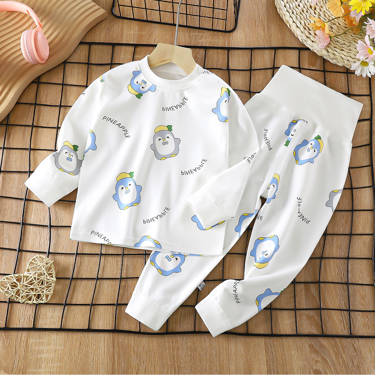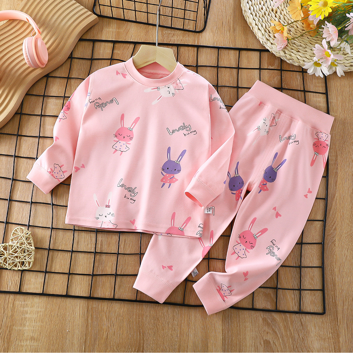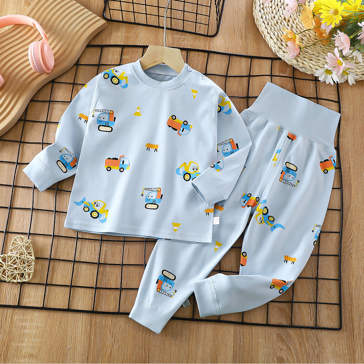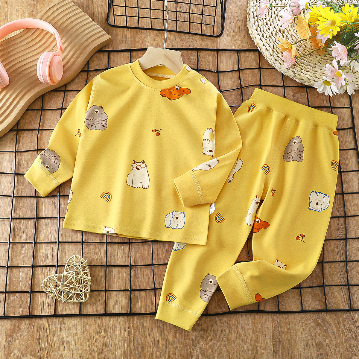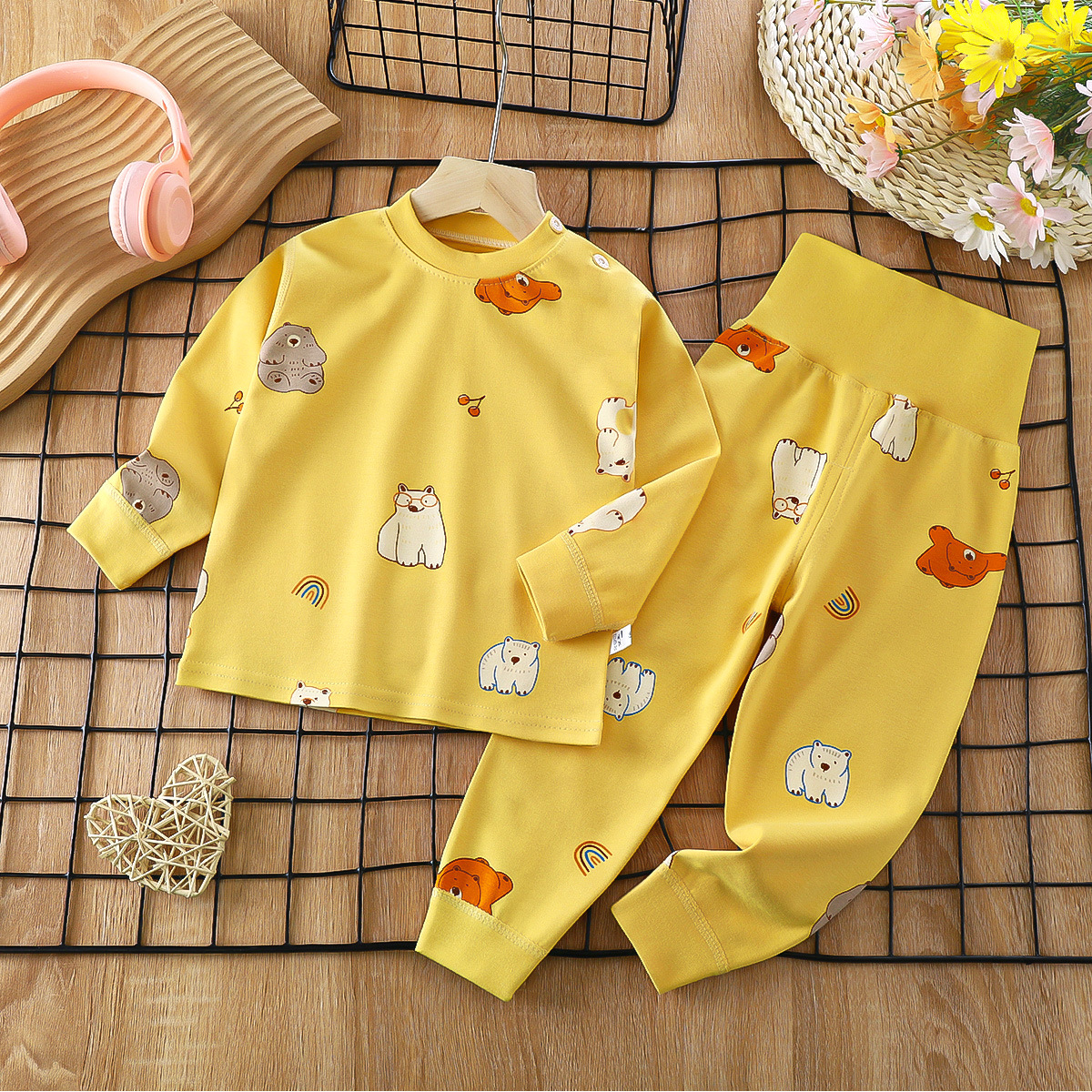 2023 봄 새로운 만화 면 세트 남자와 여자 긴 소매 속옷 가을 바지 어린이 잠옷 가정 옷스토어 가기