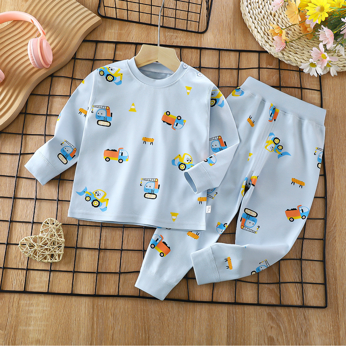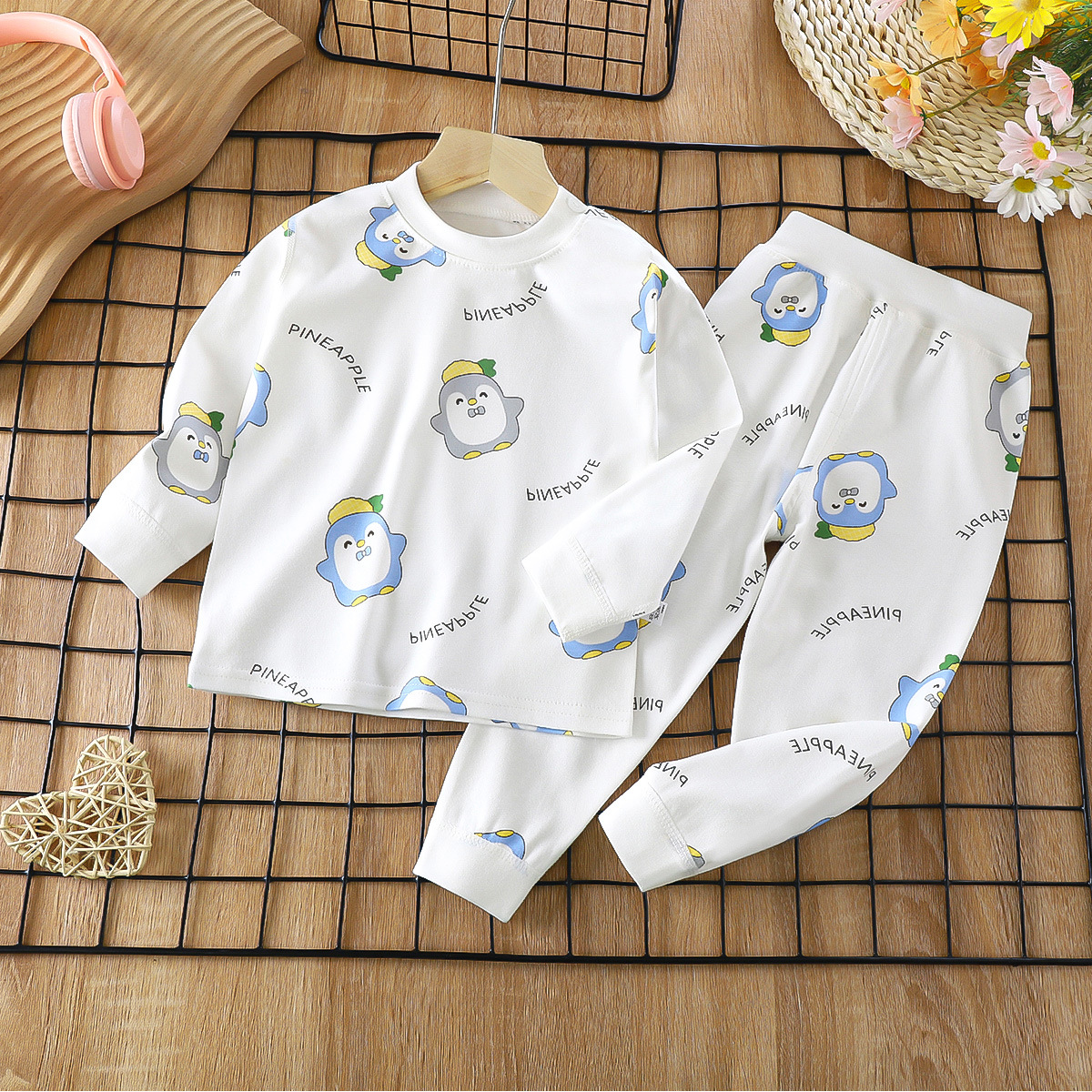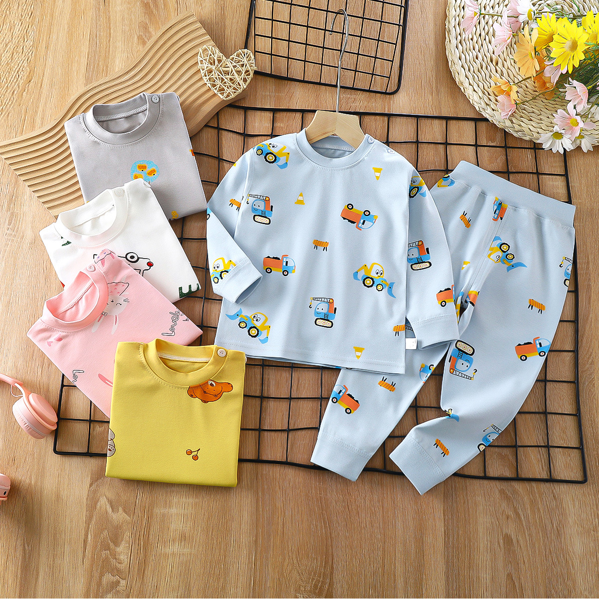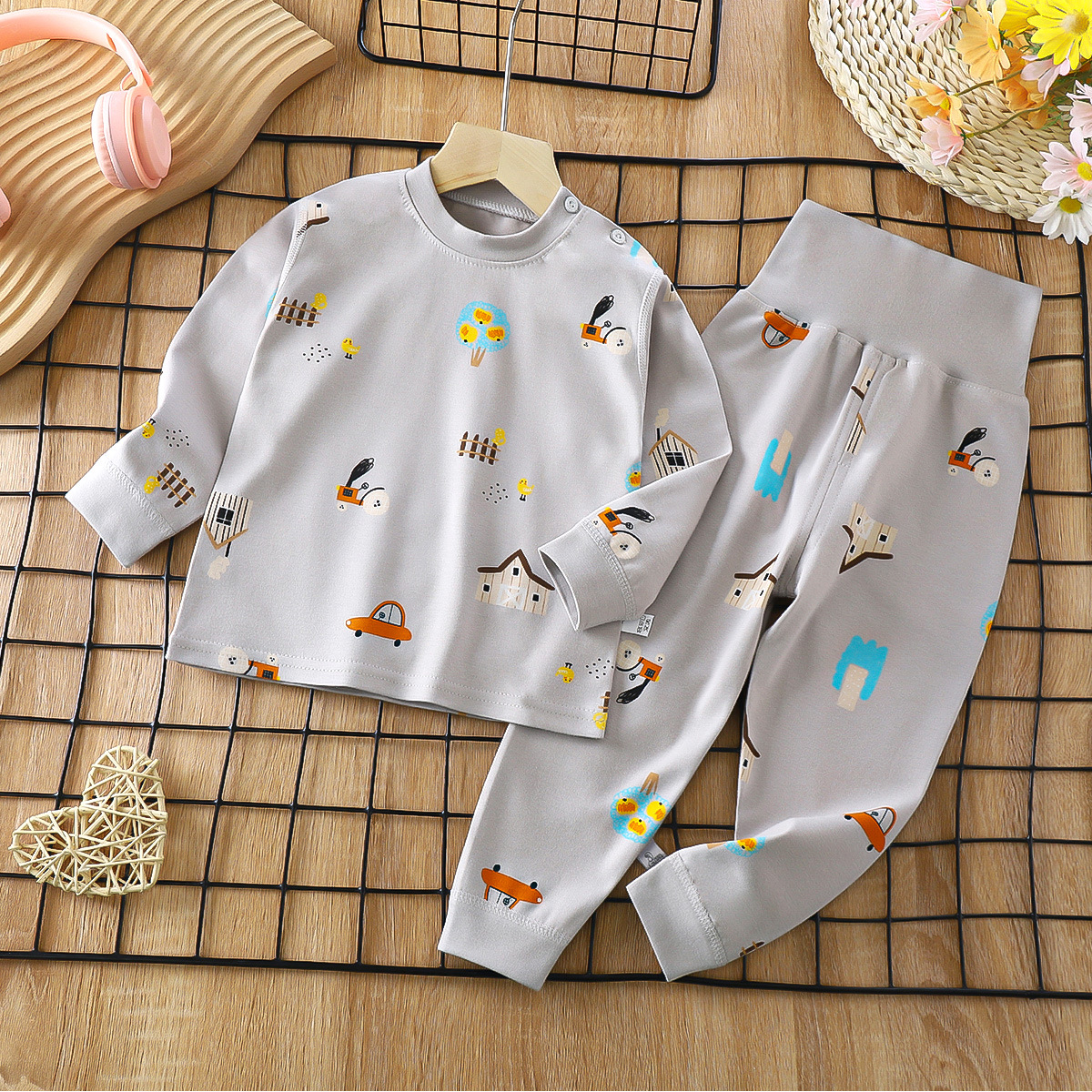 2023 봄 새로운 만화 면 세트 남자와 여자 긴 소매 속옷 가을 바지 어린이 잠옷 가정 옷스토어 가기