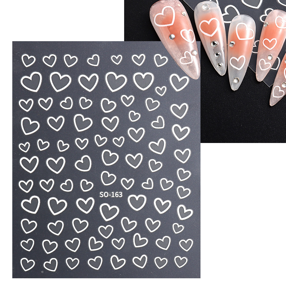 2023 크로스 보더 새로운 네일 아트 스티커 프랑스어 간단한 중공 귀여운 비뚤어진 사랑 네일 아트 다시 접착 스티커 손톱스토어 가기