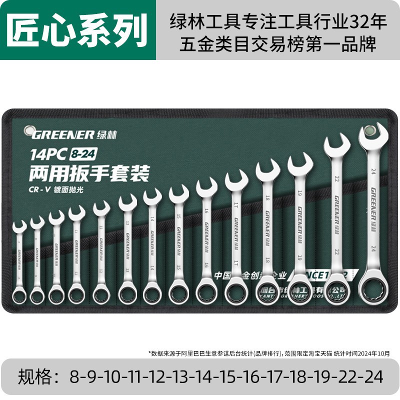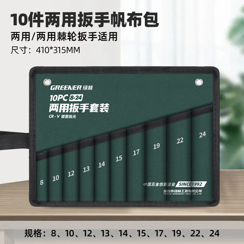 • 이중 목적 래칫 렌치용 10개 이중 목적 렌치 캔버스 가방 [8-24] [녹색]