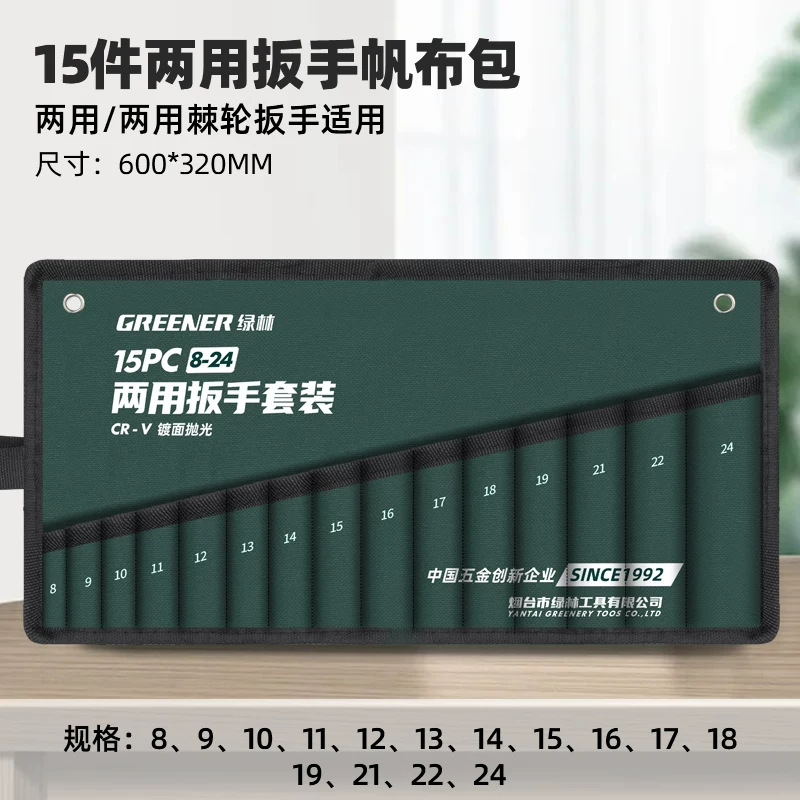 • 이중 목적 래칫 렌치용 15개 이중 목적 렌치 캔버스 가방 [8-24] [녹색]