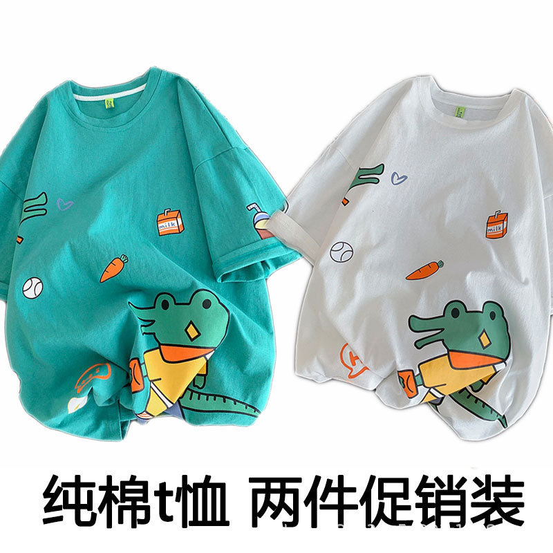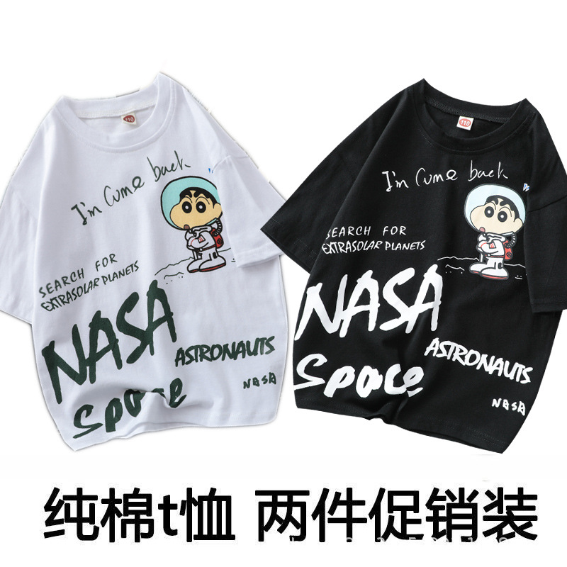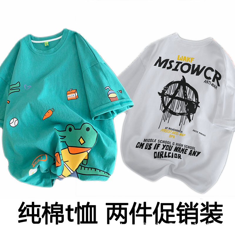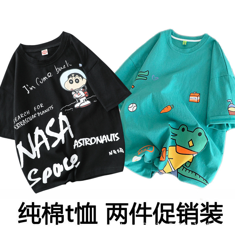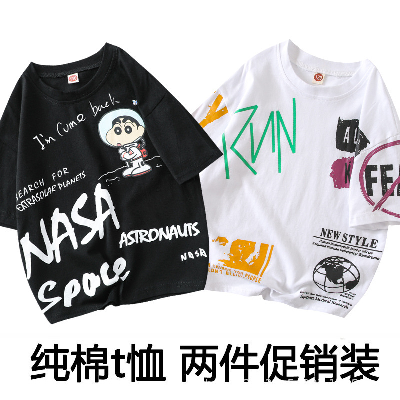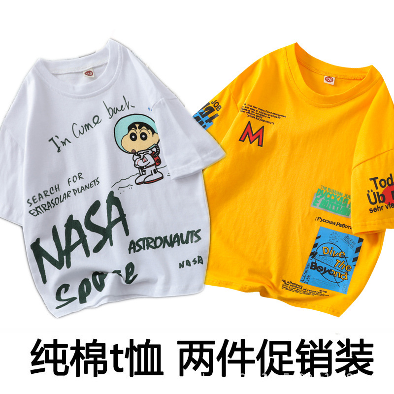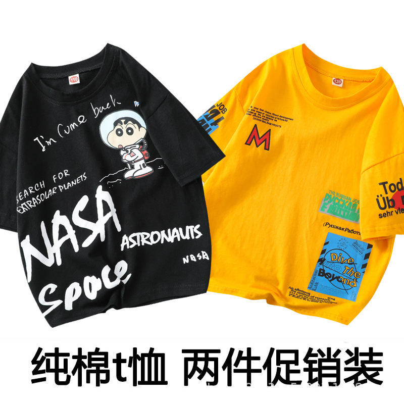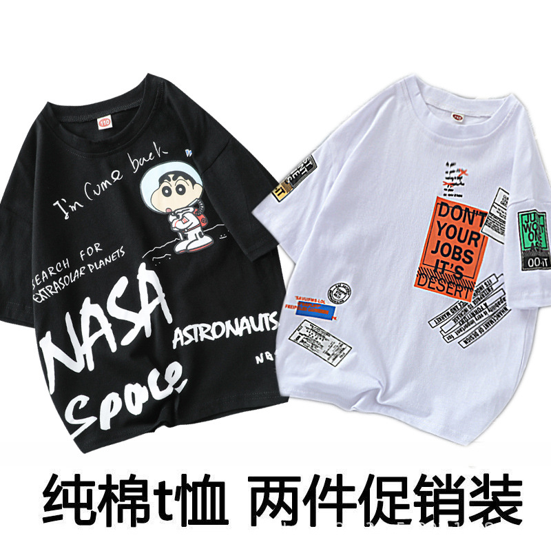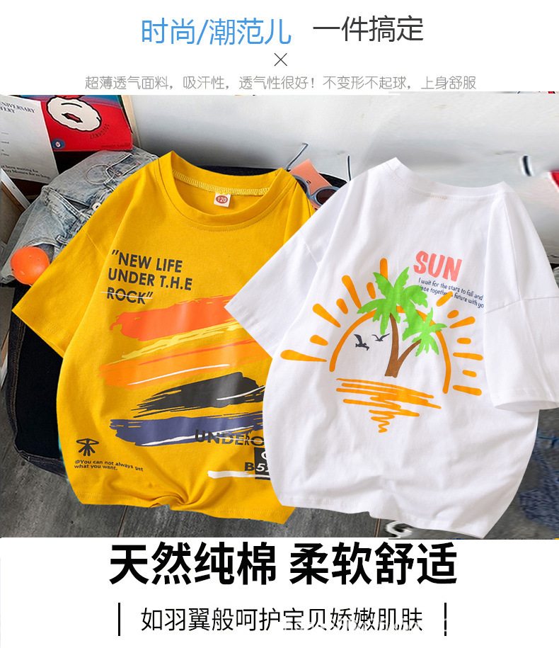 남아 반팔 여름 2023 새로운 스타일 순면 땀 흡수 트렌디 쿨 미드 빅 키즈 스포츠 여름 루즈한 티셔츠 트렌디