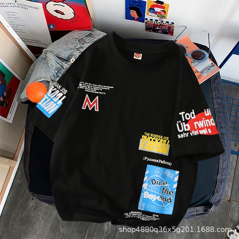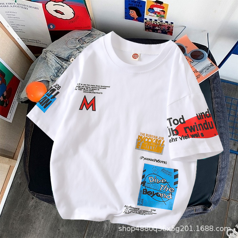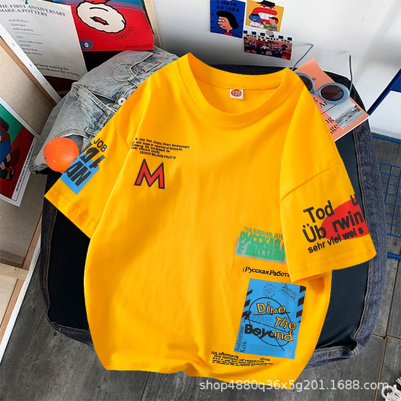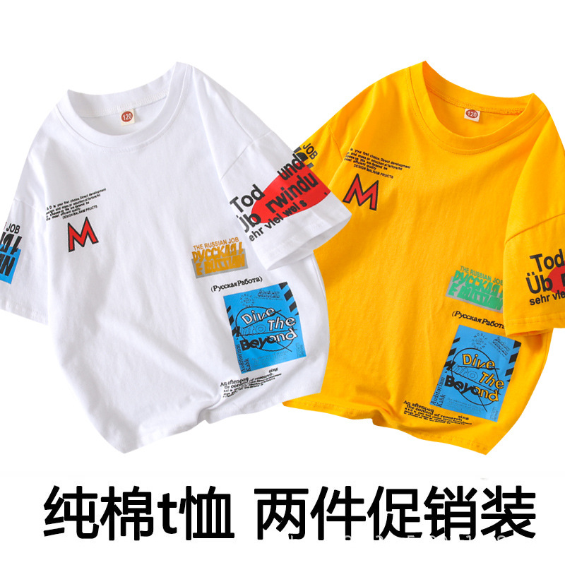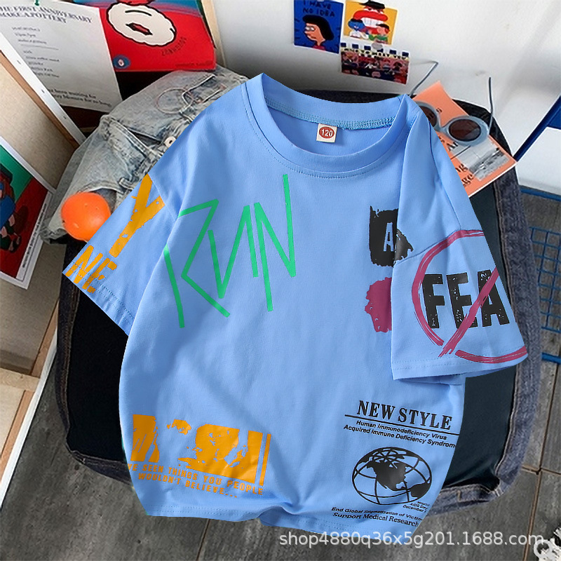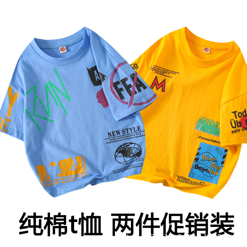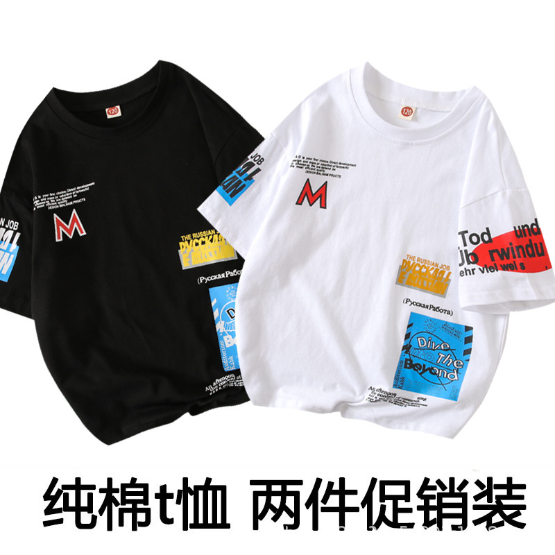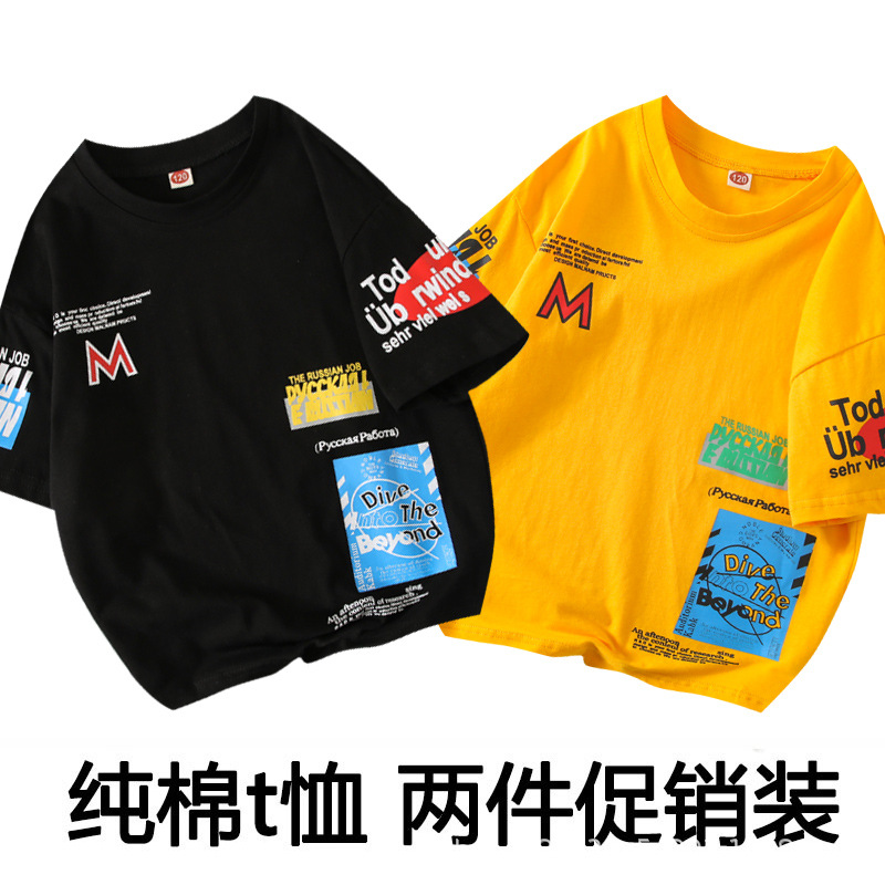 남아 반팔 여름 2023 새로운 스타일 순면 땀 흡수 트렌디 쿨 미드 빅 키즈 스포츠 여름 루즈한 티셔츠 트렌디스토어 가기
