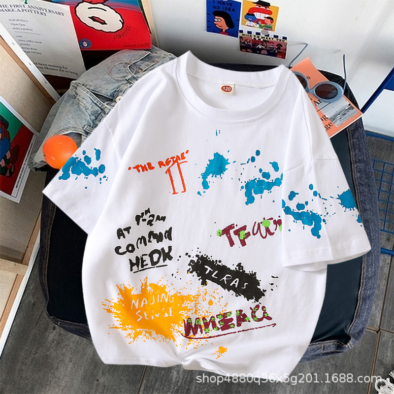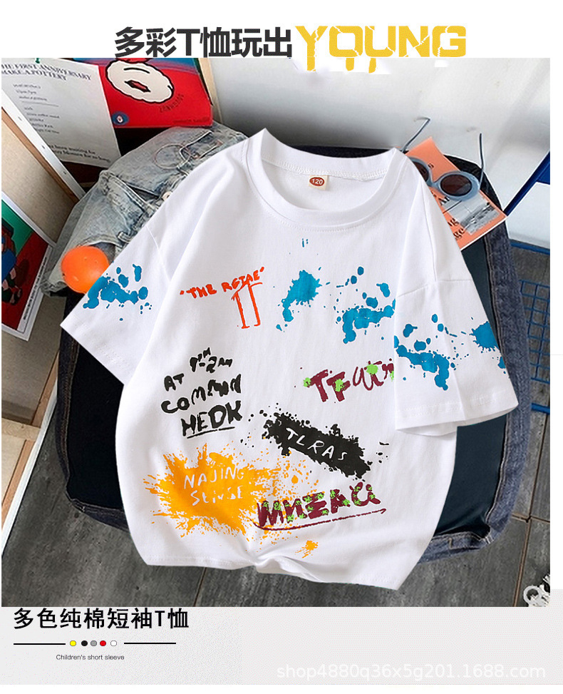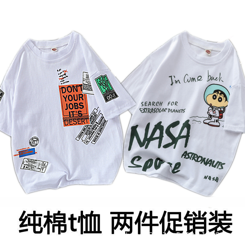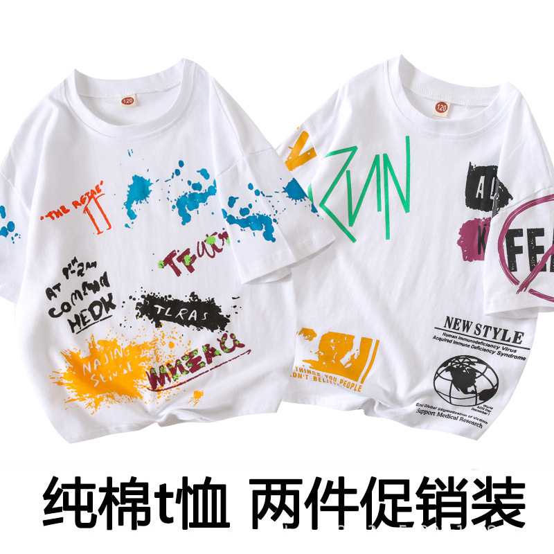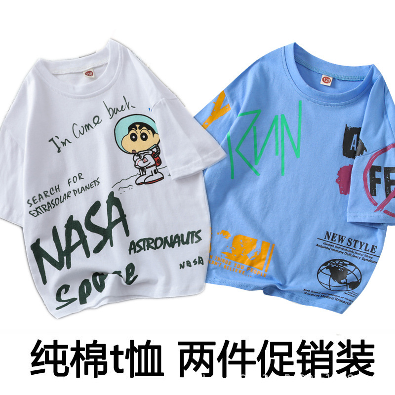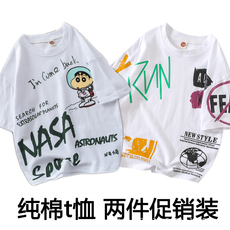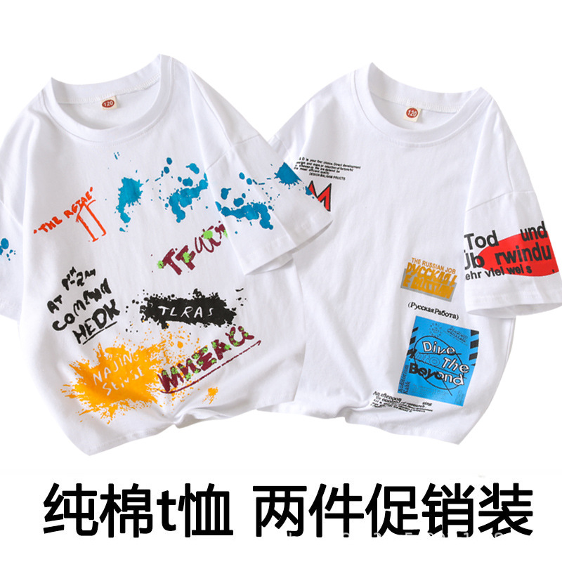 남아 반팔 여름 2023 새로운 스타일 순면 땀 흡수 트렌디 쿨 미드 빅 키즈 스포츠 여름 루즈한 티셔츠 트렌디스토어 가기