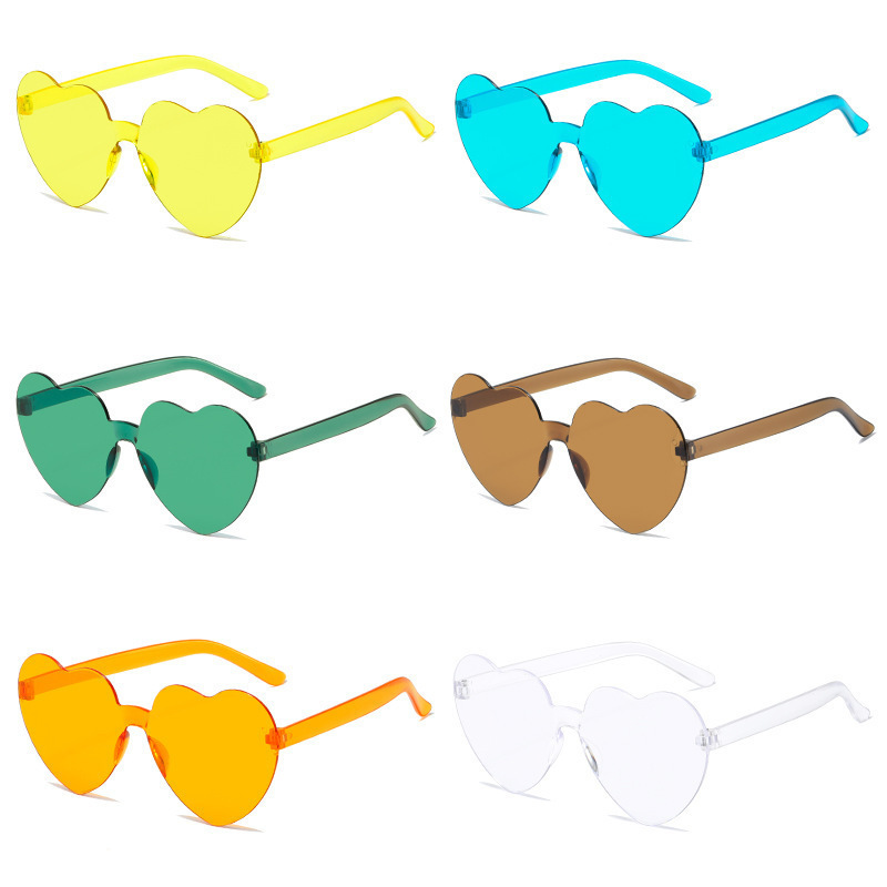 투명 젤리 컬러 러브 선글라스 남성용 및 여성용 복숭아 하트 선글라스 크로스 보더 유럽과 미국 하트 모양의 원피스 선글라스