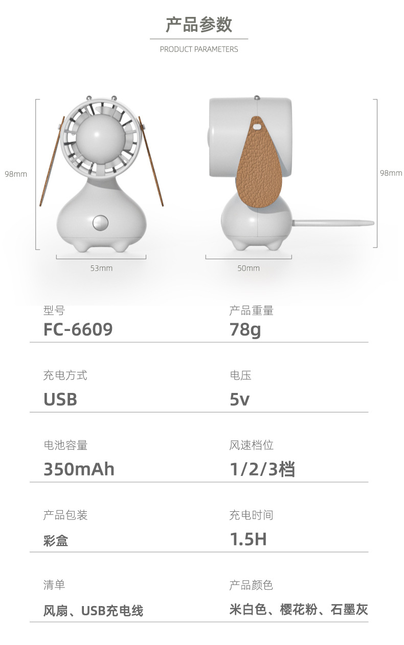 미니 소형 팬 귀여운 Duoduo 개 휴대용 데스크탑 팬 기숙사 USB 충전 팬 소형 가전 제품 선물