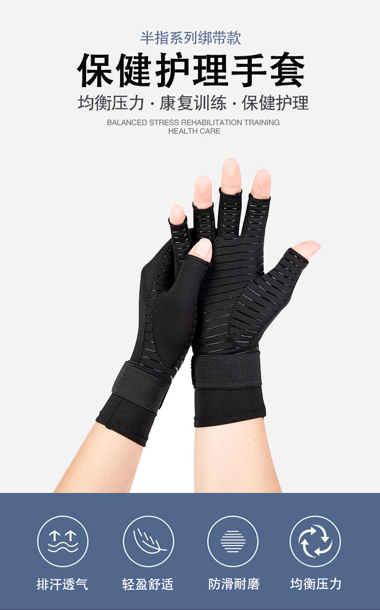 구리 섬유 관절 압력 반 손가락 장갑 스포츠 피트니스 스트랩 실리콘 미끄럼 방지 승마 낚시 태양 보호 장갑 염증스토어 가기