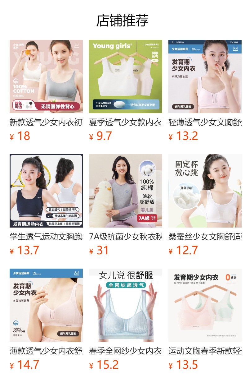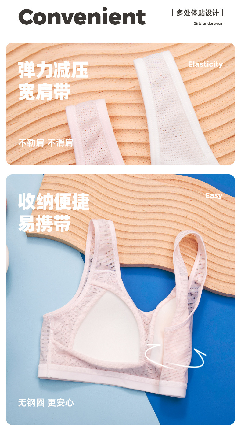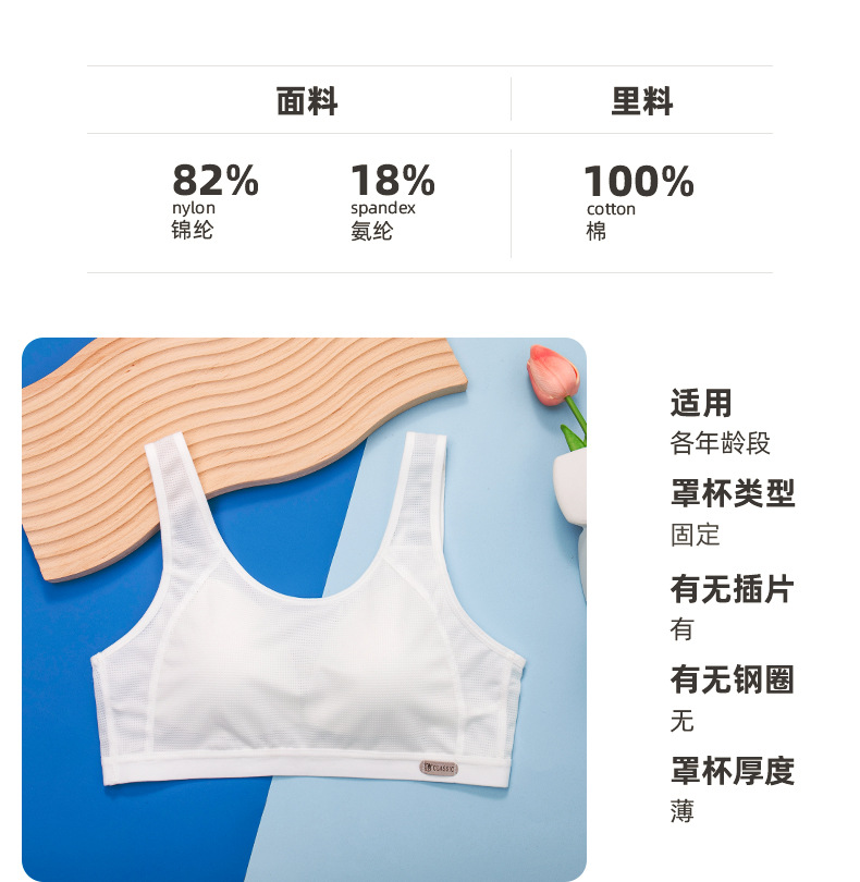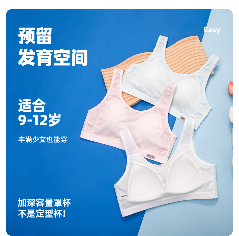 메쉬 통기성 여아 속옷 봄과 여름 얇은 여아 개발 조끼 고정 몰드 컵 브래지어 여성과 중학생스토어 가기