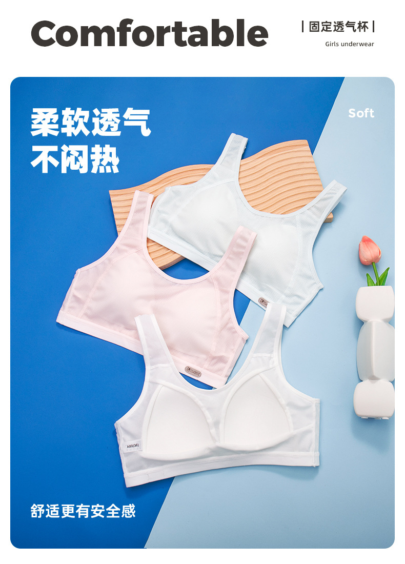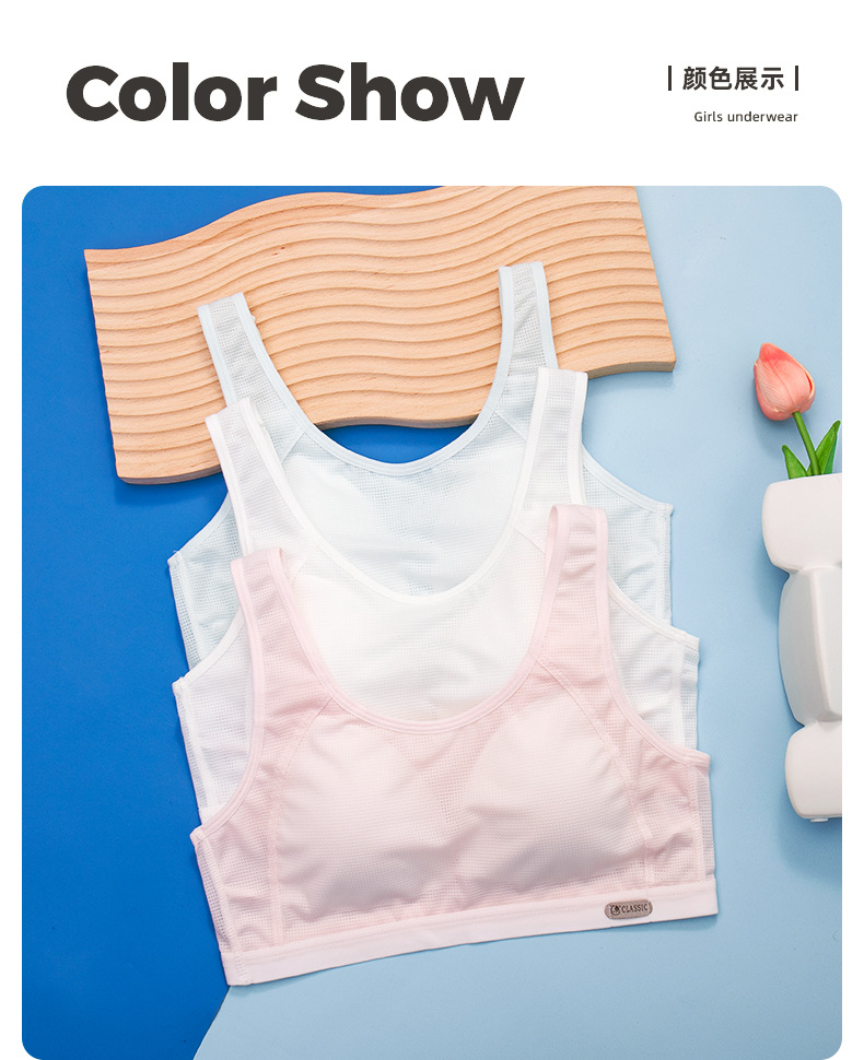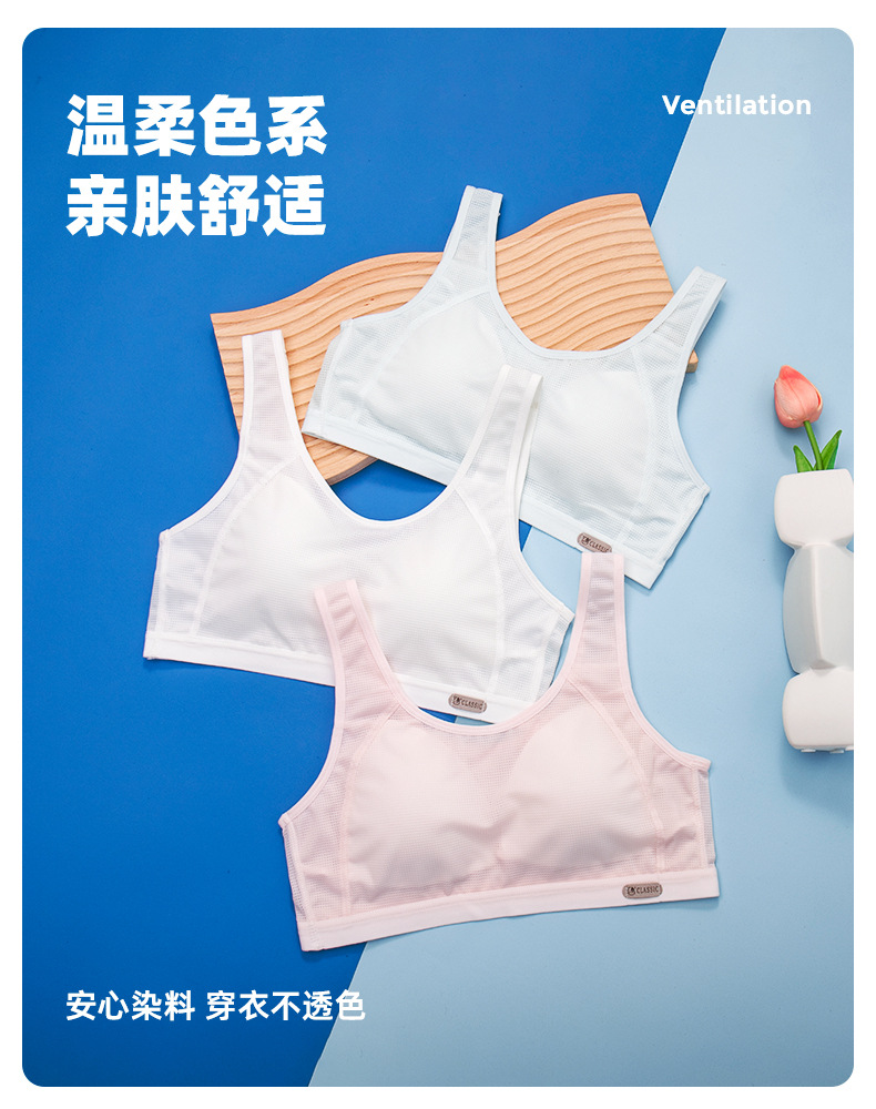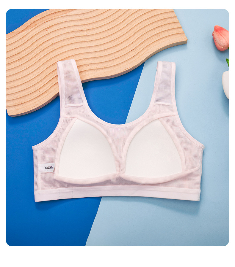 메쉬 통기성 여아 속옷 봄과 여름 얇은 여아 개발 조끼 고정 몰드 컵 브래지어 여성과 중학생