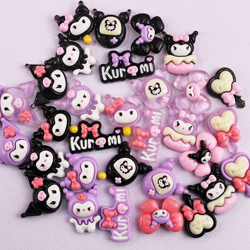 얼음 투명 반짝 이는 검은 Kuromi Sanrio 활 케이크 아이스 캔디 쥬얼리 액세서리 diy 크림 접착제 휴대 전화 케이스스토어 가기