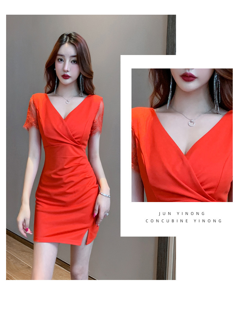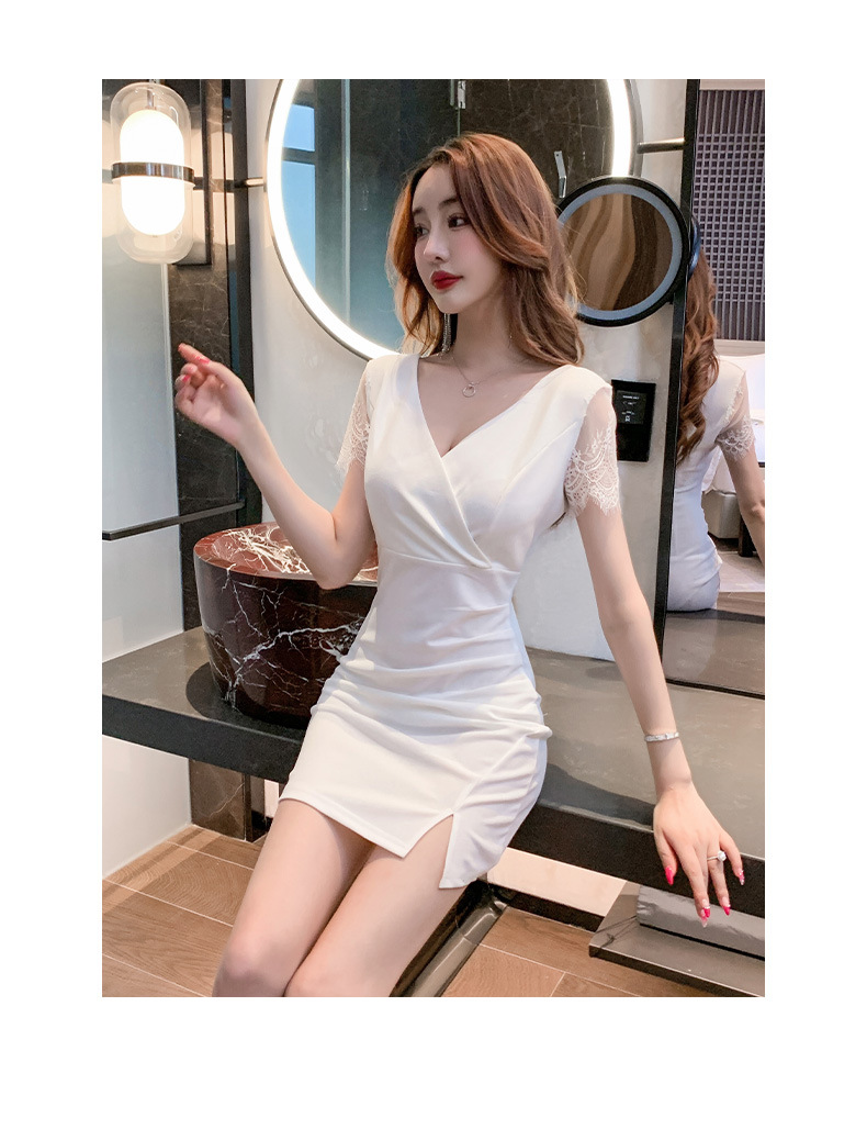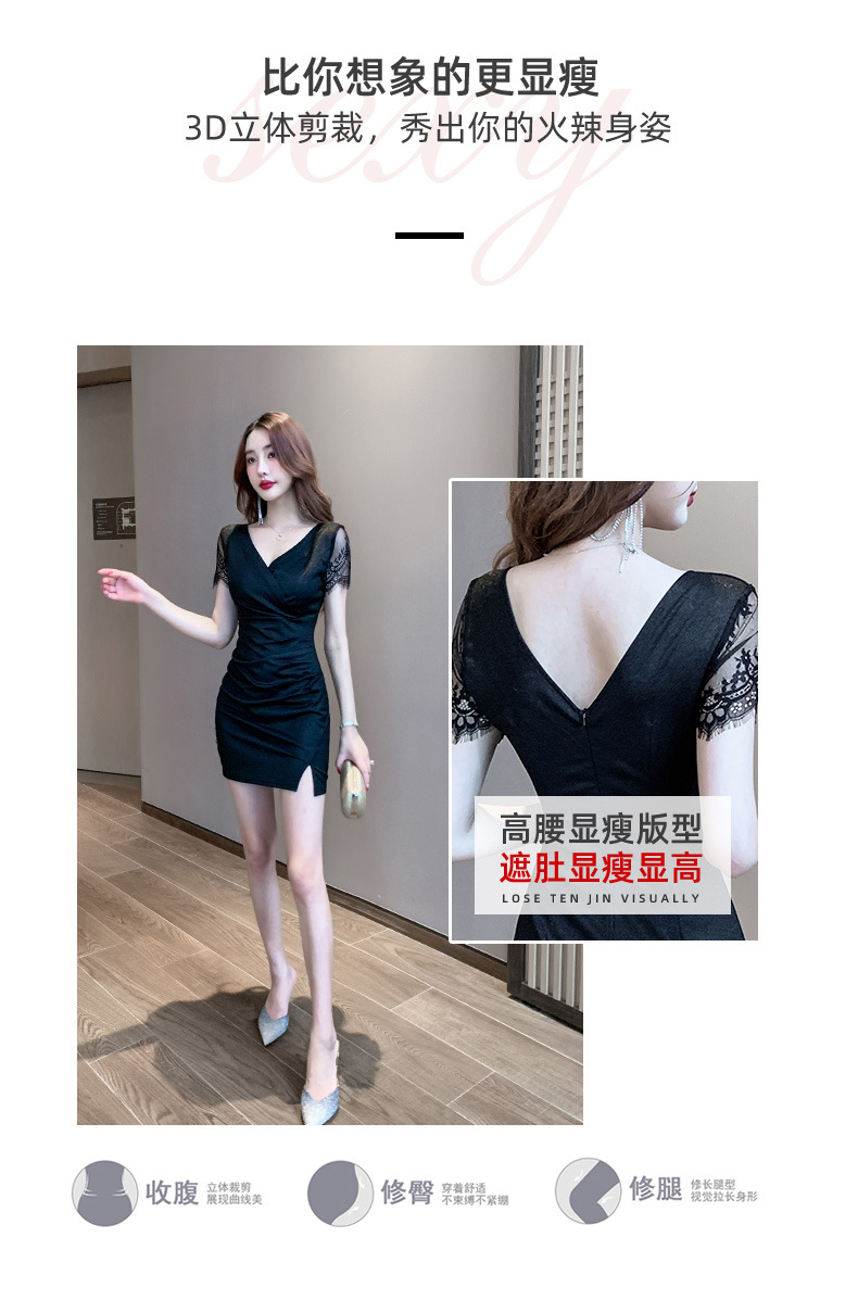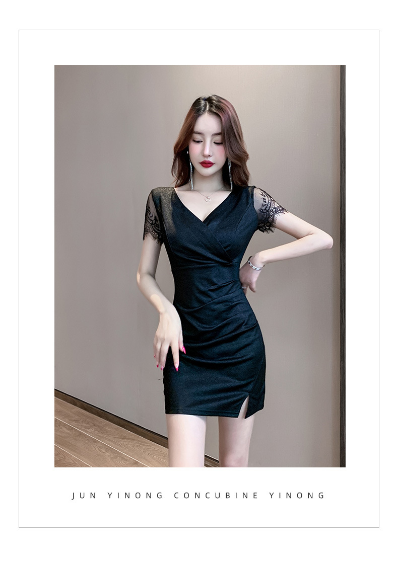 5185 새로운 나이트 샵 여성의 섹시한 나이트 샵 원피스 V-Neck 타이트 슬림 힙 오버볼스토어 가기