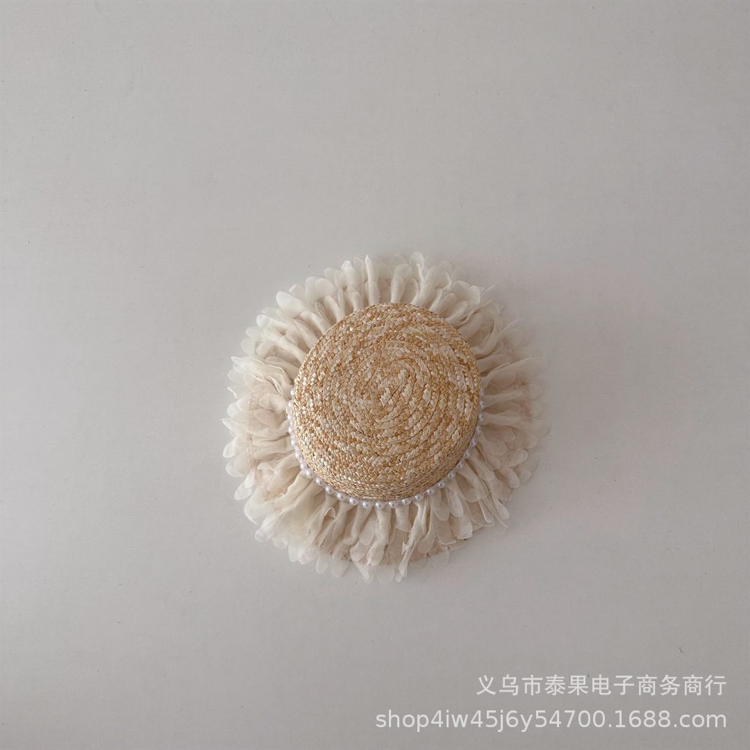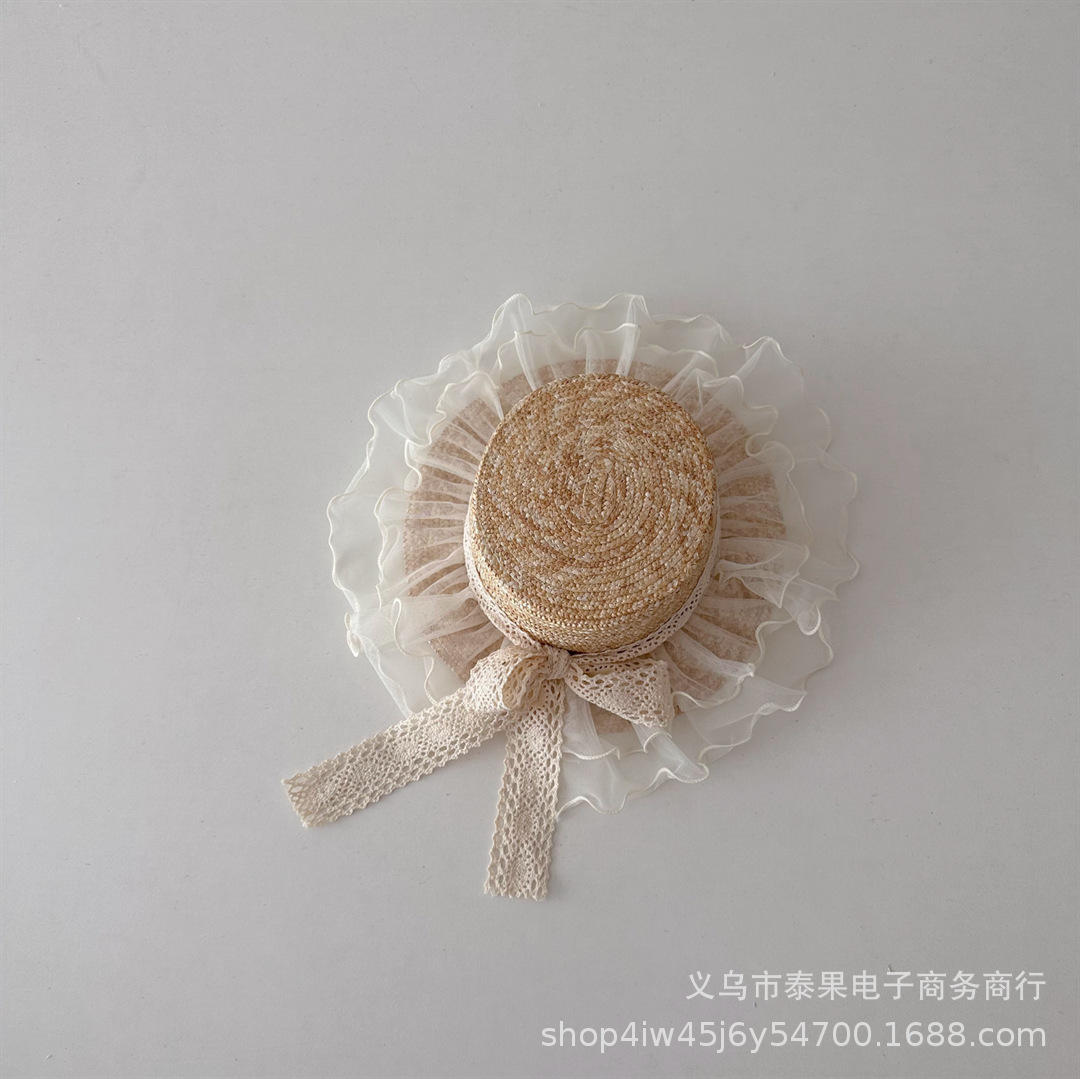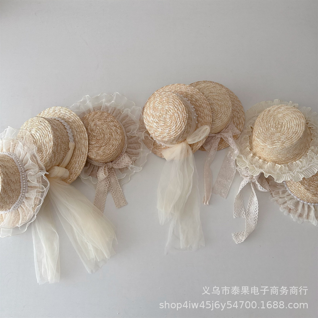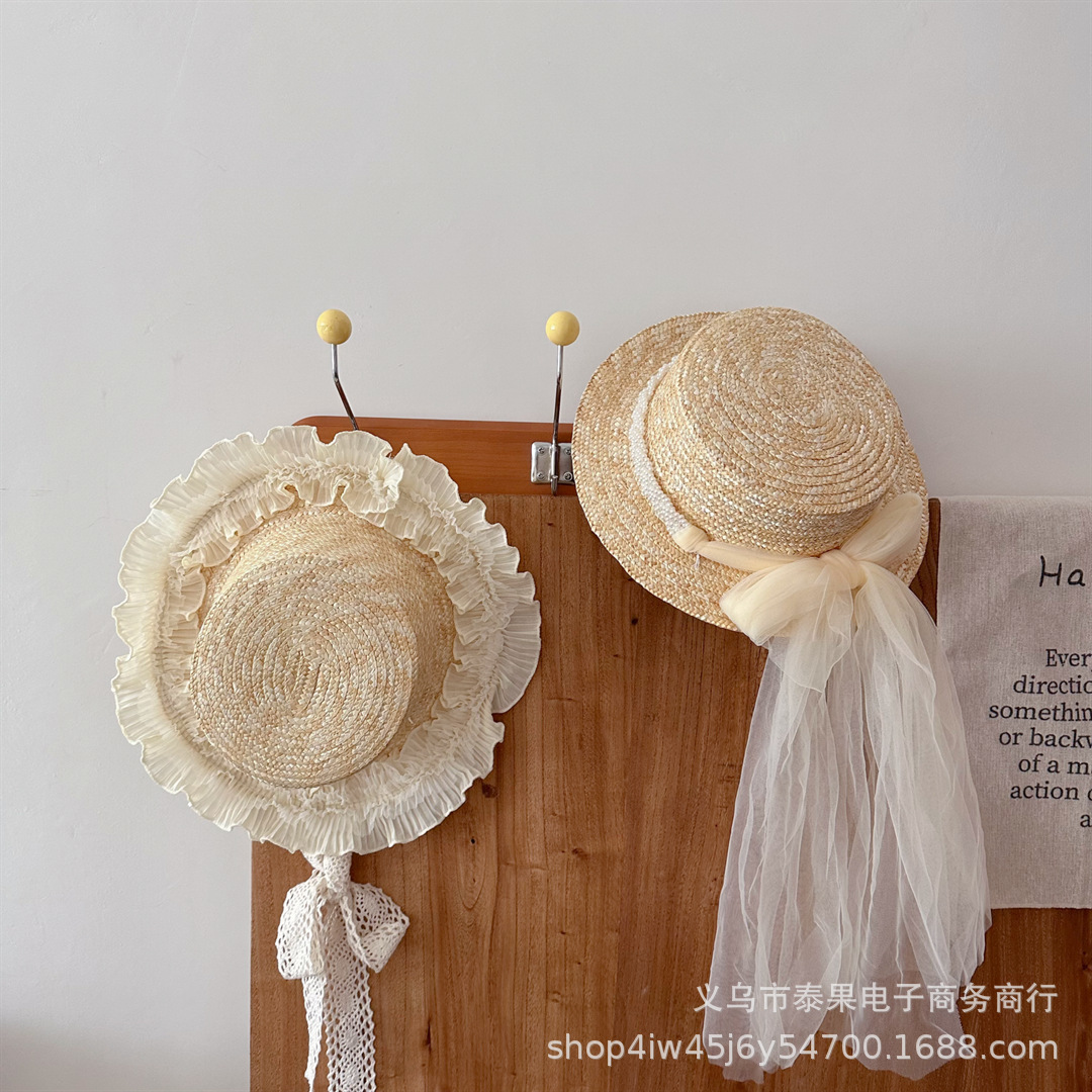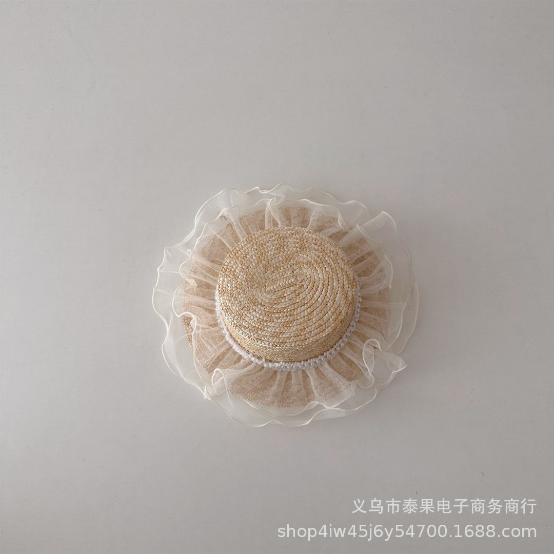 ~ 인 스타일 여름 새로운 어린이 레이스 진주 밀짚 플랫 탑 태양 모자 소녀 서양식 선 스크린 비치 밀짚 모자스토어 가기