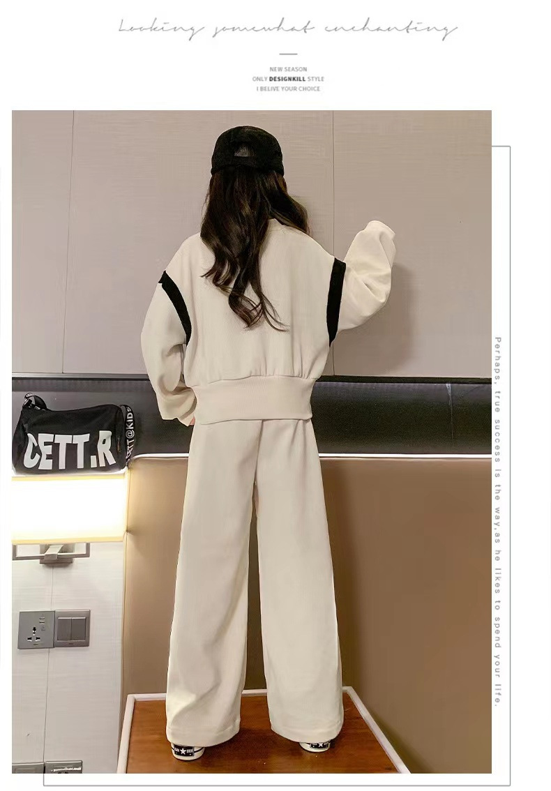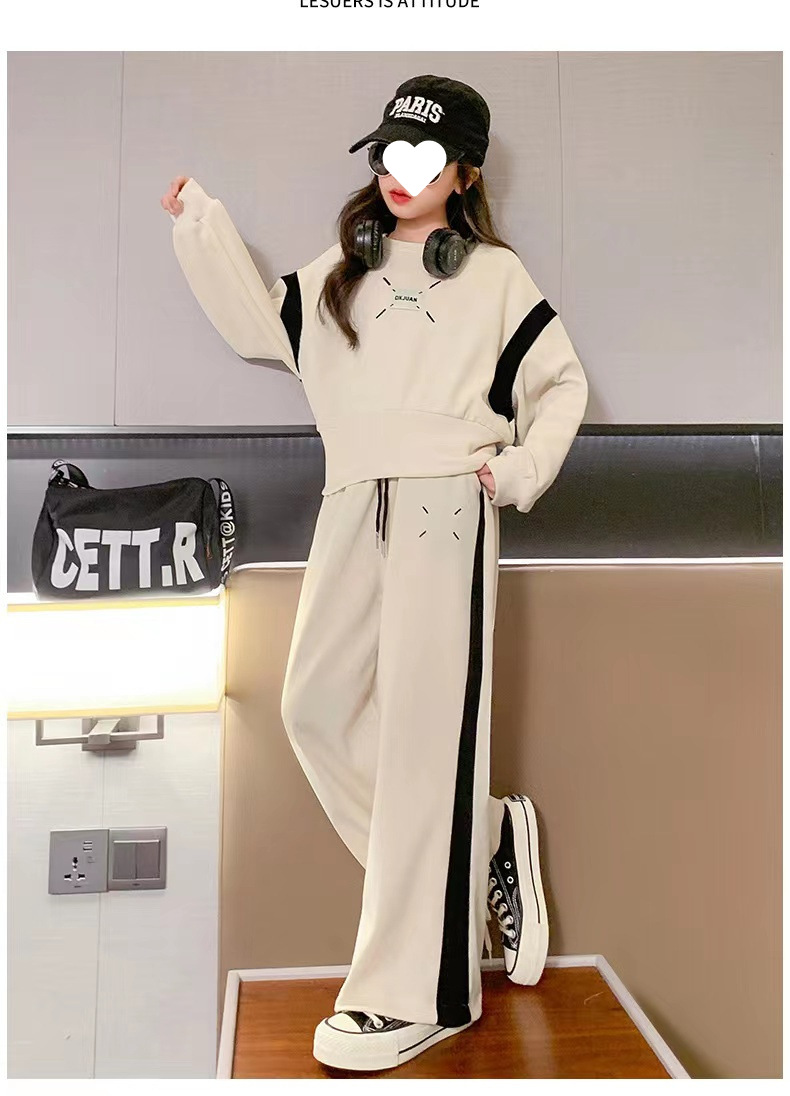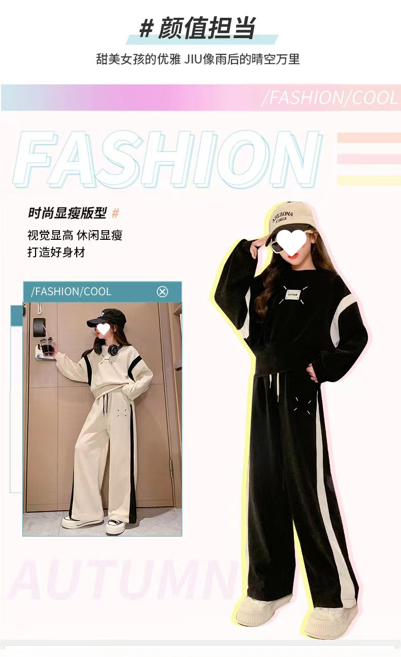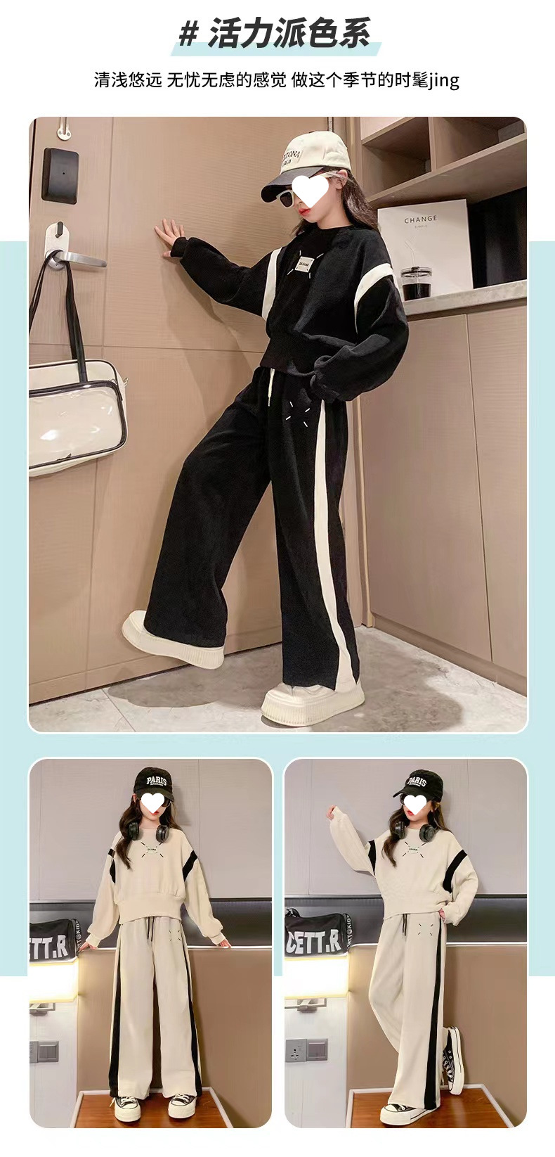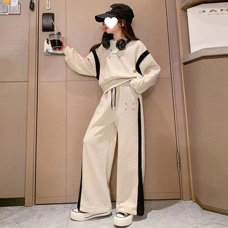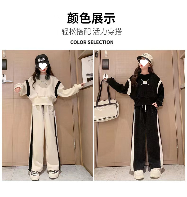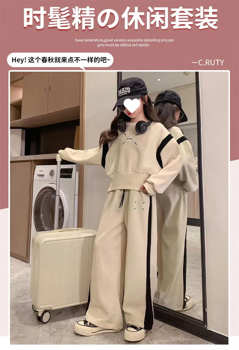 여아 중대형 아동 캐주얼 정장 2025 봄 가을 신상 스플라이스 스웨트셔츠 와이드 팬츠 스몰 프렌치 스타일 투피스 세트스토어 가기