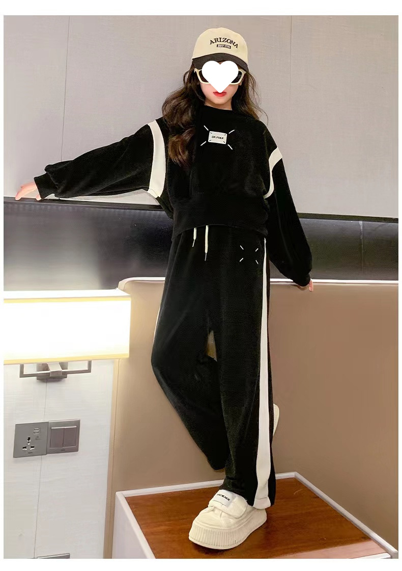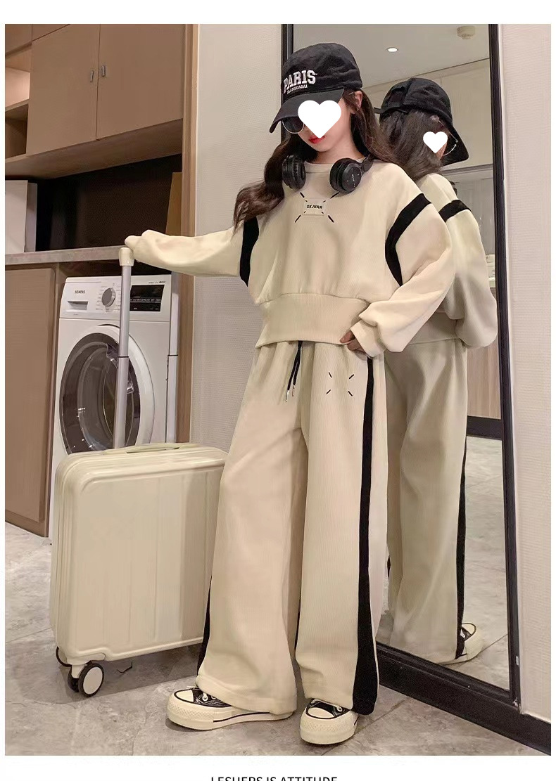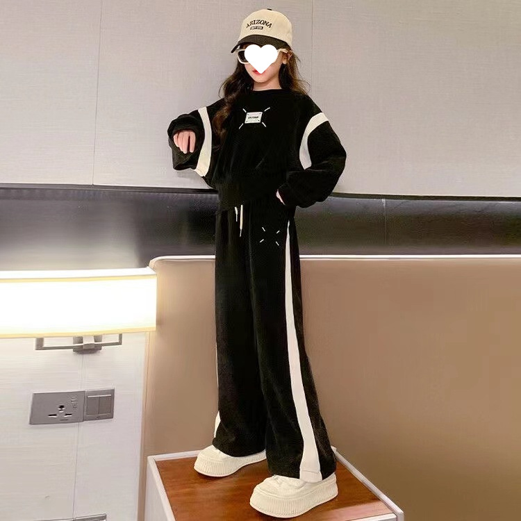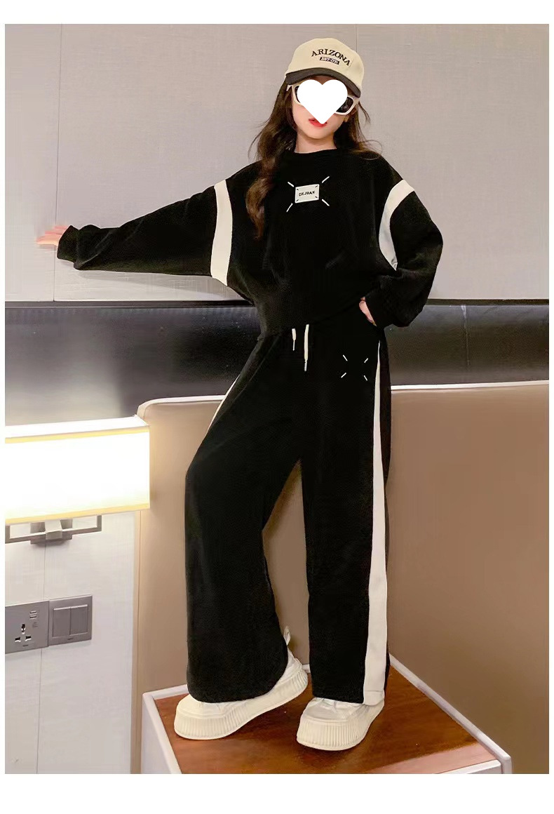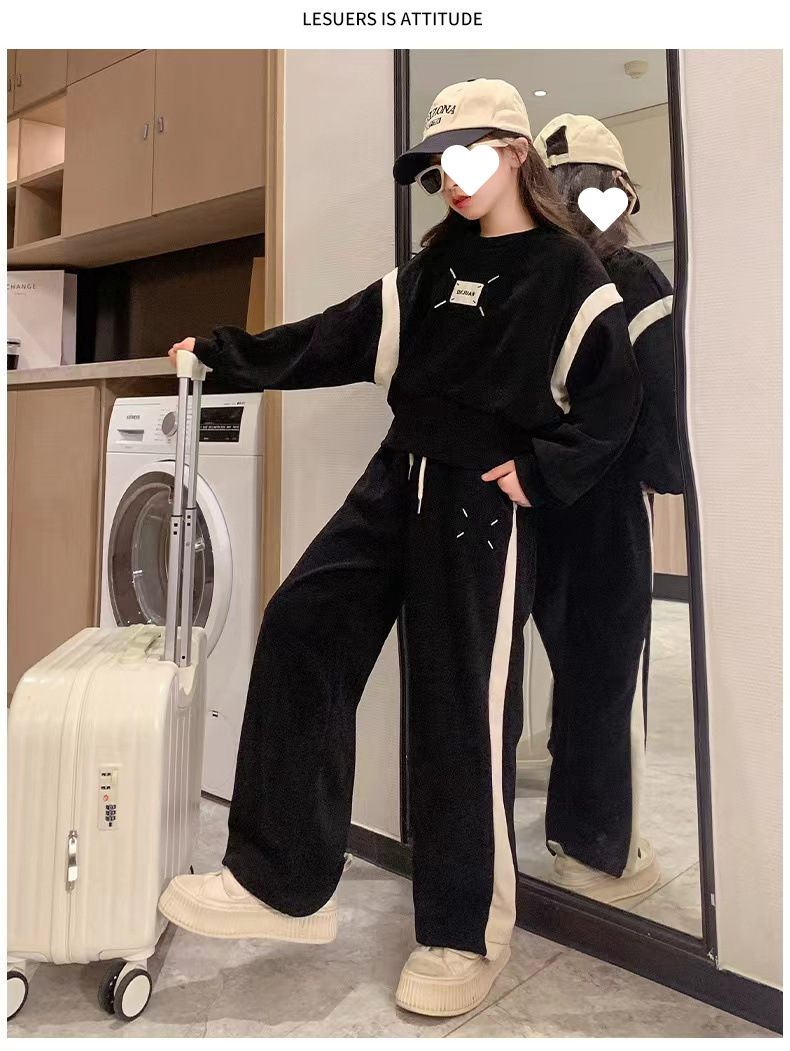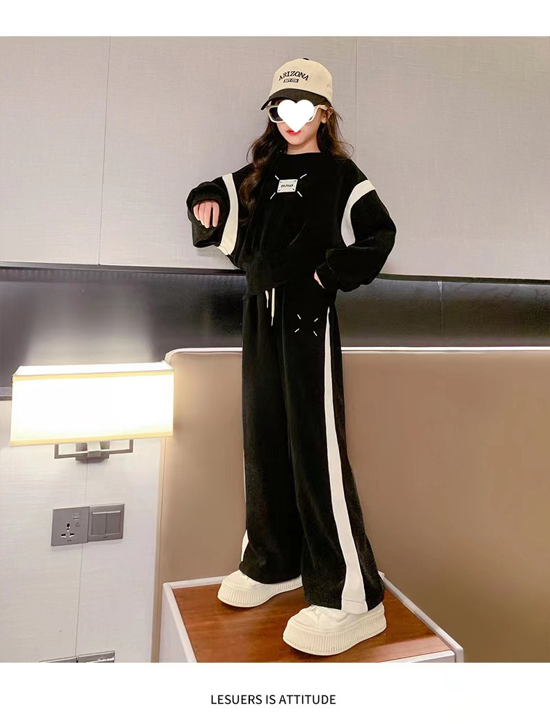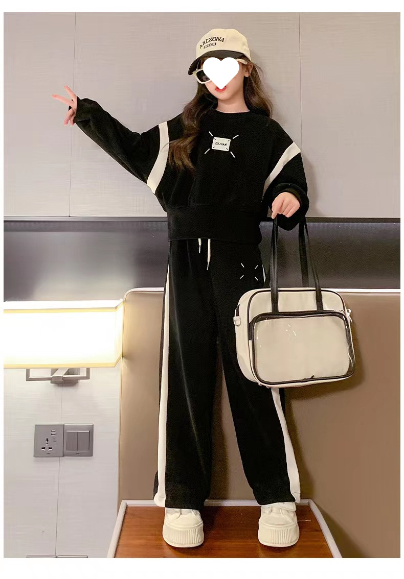 여아 중대형 아동 캐주얼 정장 2025 봄 가을 신상 스플라이스 스웨트셔츠 와이드 팬츠 스몰 프렌치 스타일 투피스 세트스토어 가기