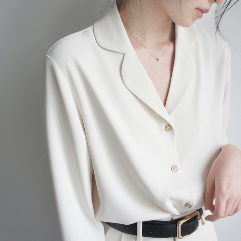 JOJOZ 세트 칼라 살구색 긴 소매 셔츠 복고풍 작은 꽃 단추 쉽게 주름 좋은 최고 여자의 슬림 23 년 봄스토어 가기