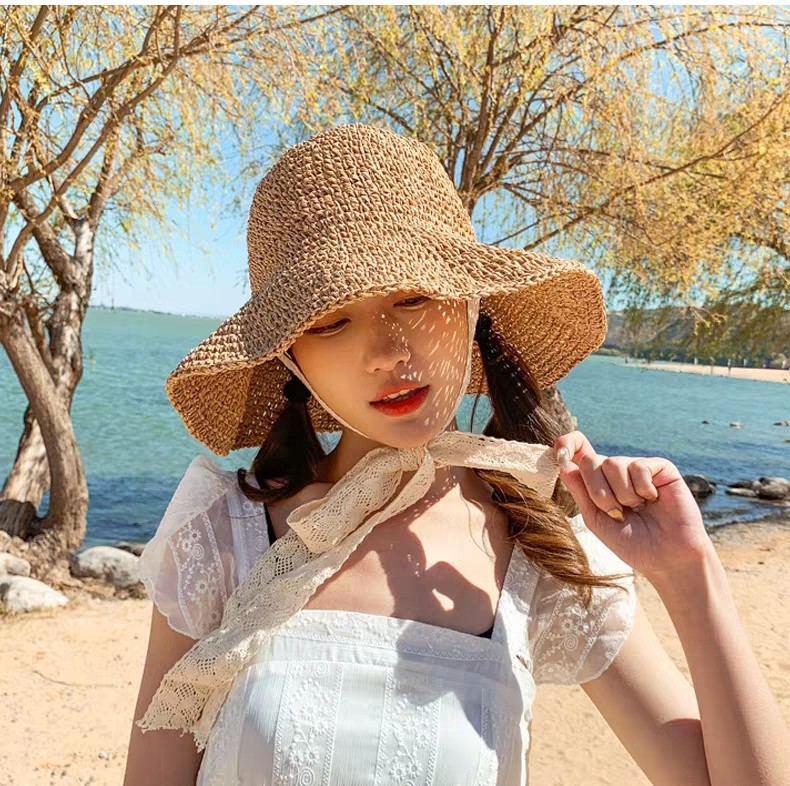 Ins 인터넷 연예인 아기 레이스 레이스 밀짚 모자 한국 어린이 태양 모자 봄과 여름 아기 소녀 밀짚 모자