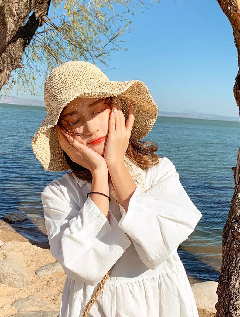 Ins 인터넷 연예인 아기 레이스 레이스 밀짚 모자 한국 어린이 태양 모자 봄과 여름 아기 소녀 밀짚 모자스토어 가기