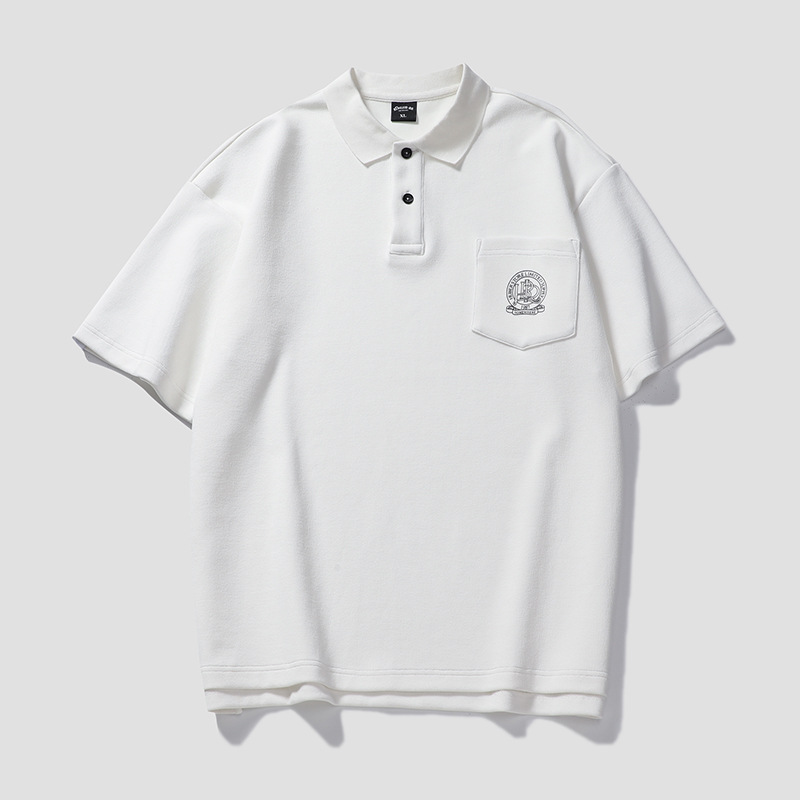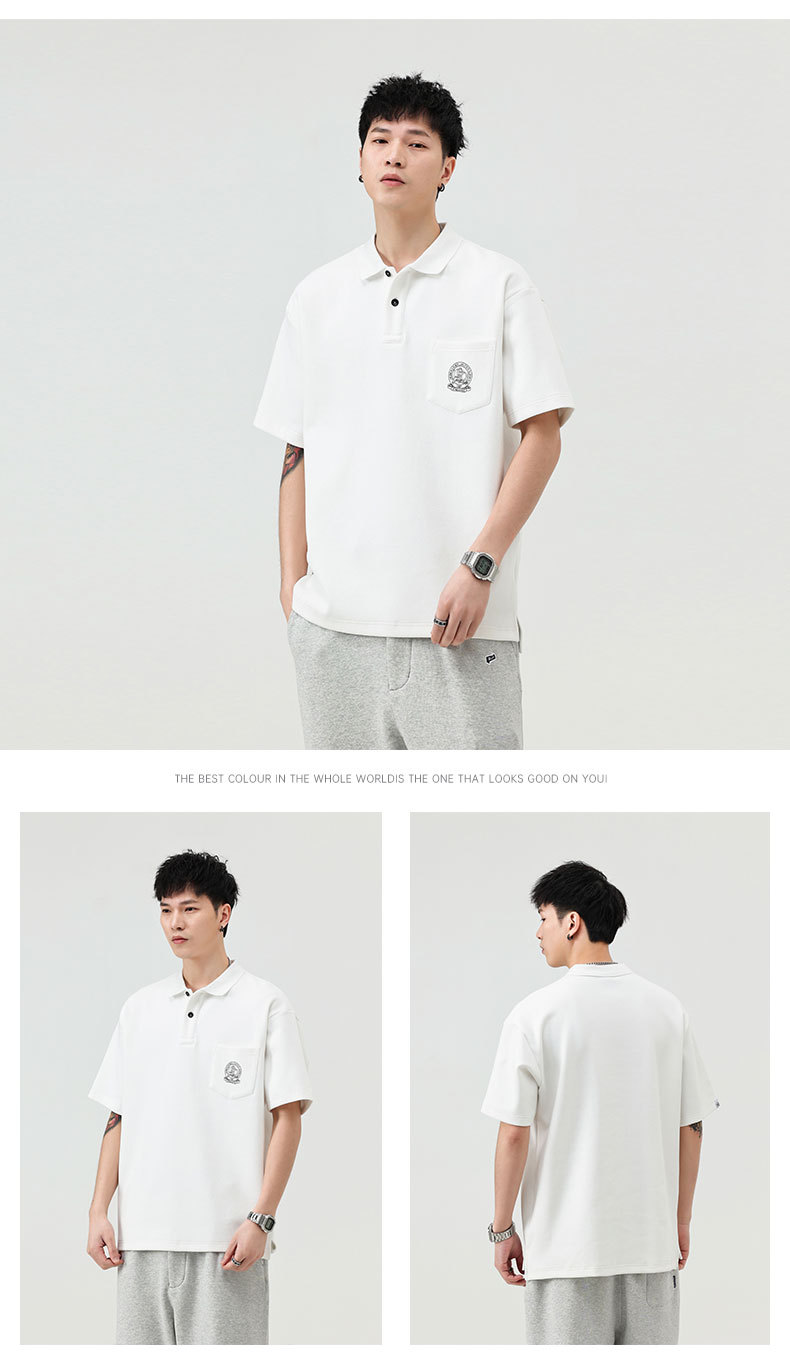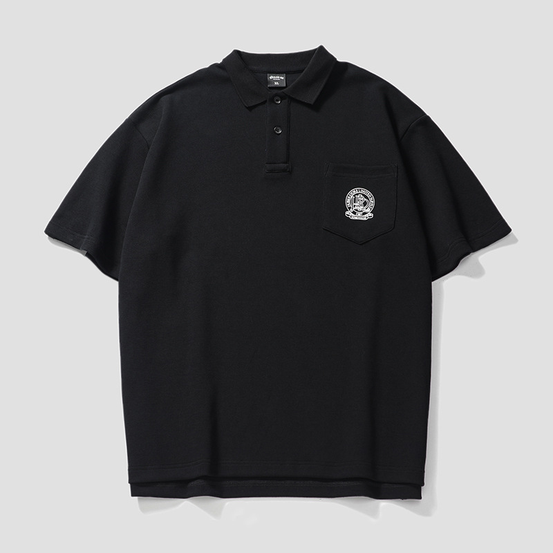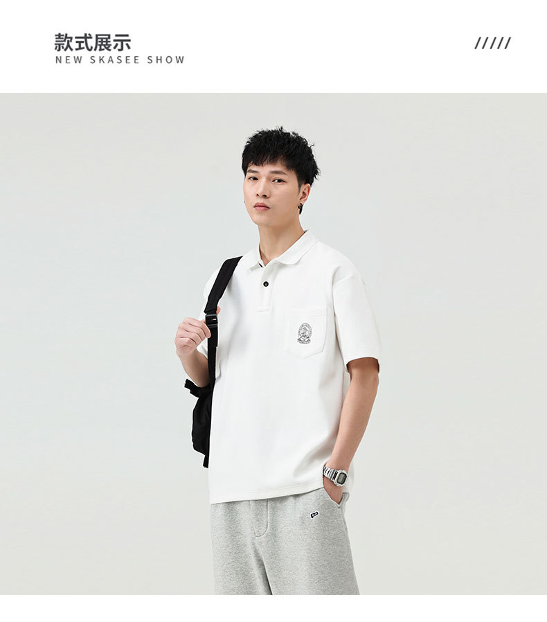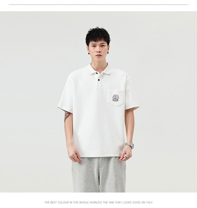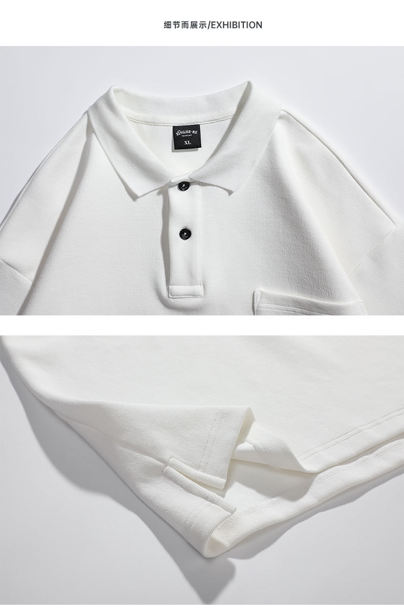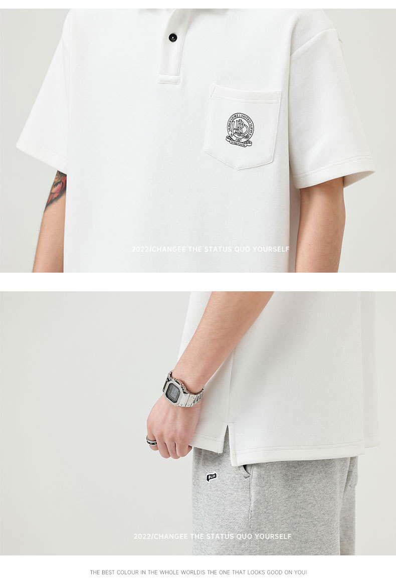 Qiqiu 남성용 세련된 패션 브랜드 플러스 사이즈 느슨한 네이비 반팔 티셔츠 남성용 300g 헤비 일본식 레트로 폴로 셔츠스토어 가기