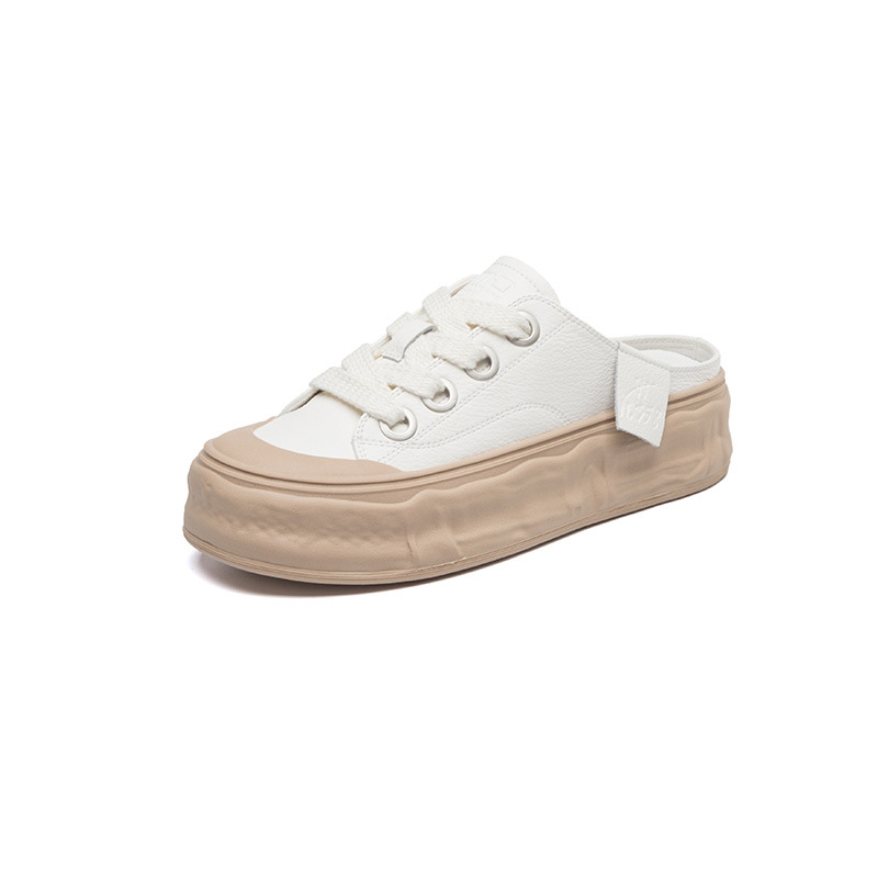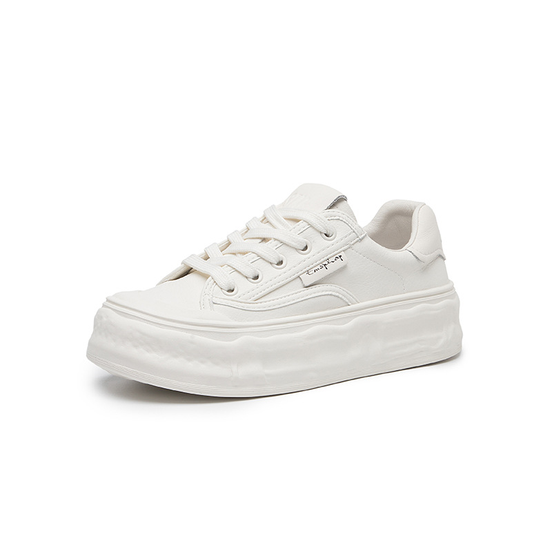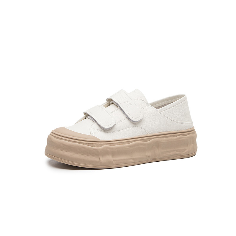 2024년 봄/여름 여성용 인기 화이트 슈즈, 천연 가죽 소재의 캐주얼 스포츠 스니커즈, 도매 가능, 두꺼운 밑창 비스킷 슈즈스토어 가기