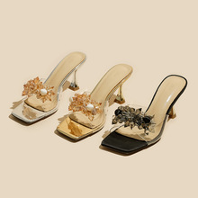 여성을위한 하이힐 2024 여름 새로운 스타일 블랙 슬립 온 스틸레토 섹시한 틈새 요정 스타일 인터넷 연예인 샌들스토어 가기