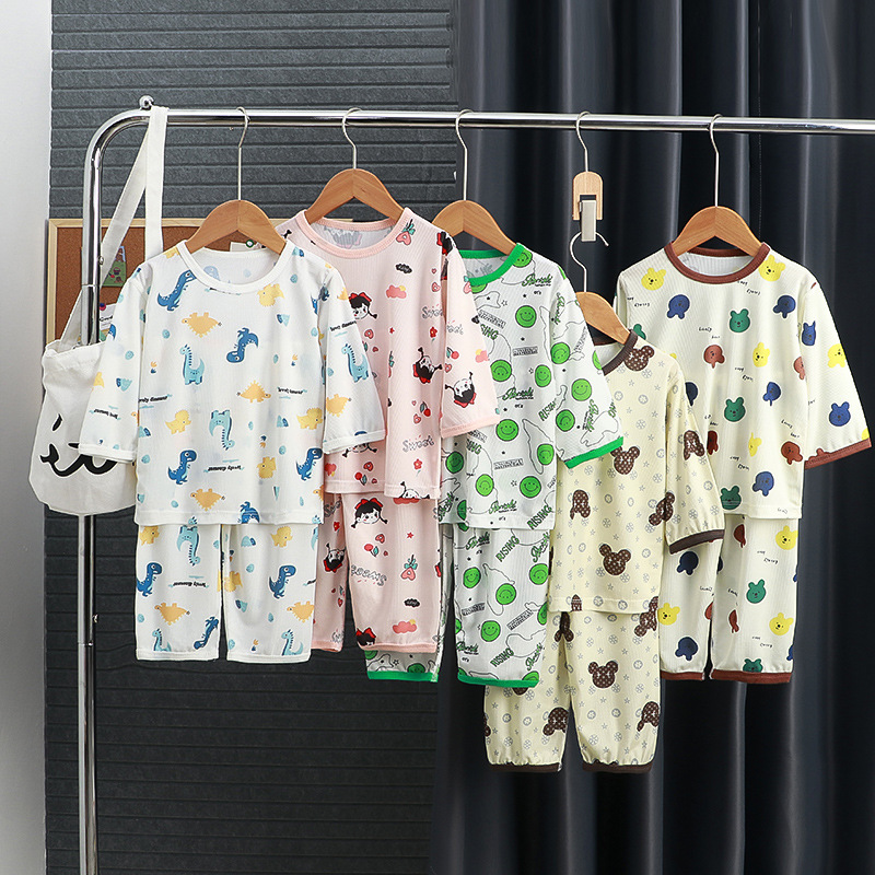 【재고정리】아동 홈웨어 세트 2025 여름 남아 여아 얇은 무봉제 7부 잠옷 및 잠옷바지스토어 가기