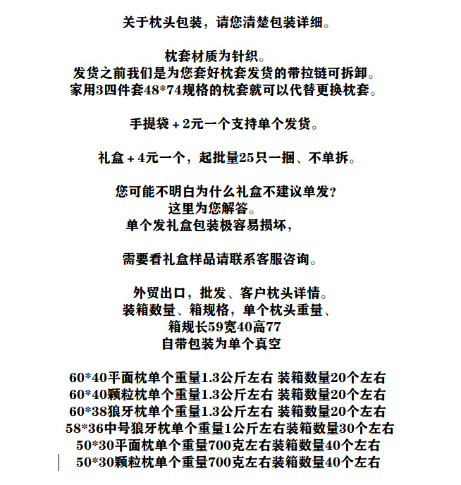 • 중간 늑대 이빨 베개 경도 소프트 58*36 무료 내부 및 외부 베개 커버