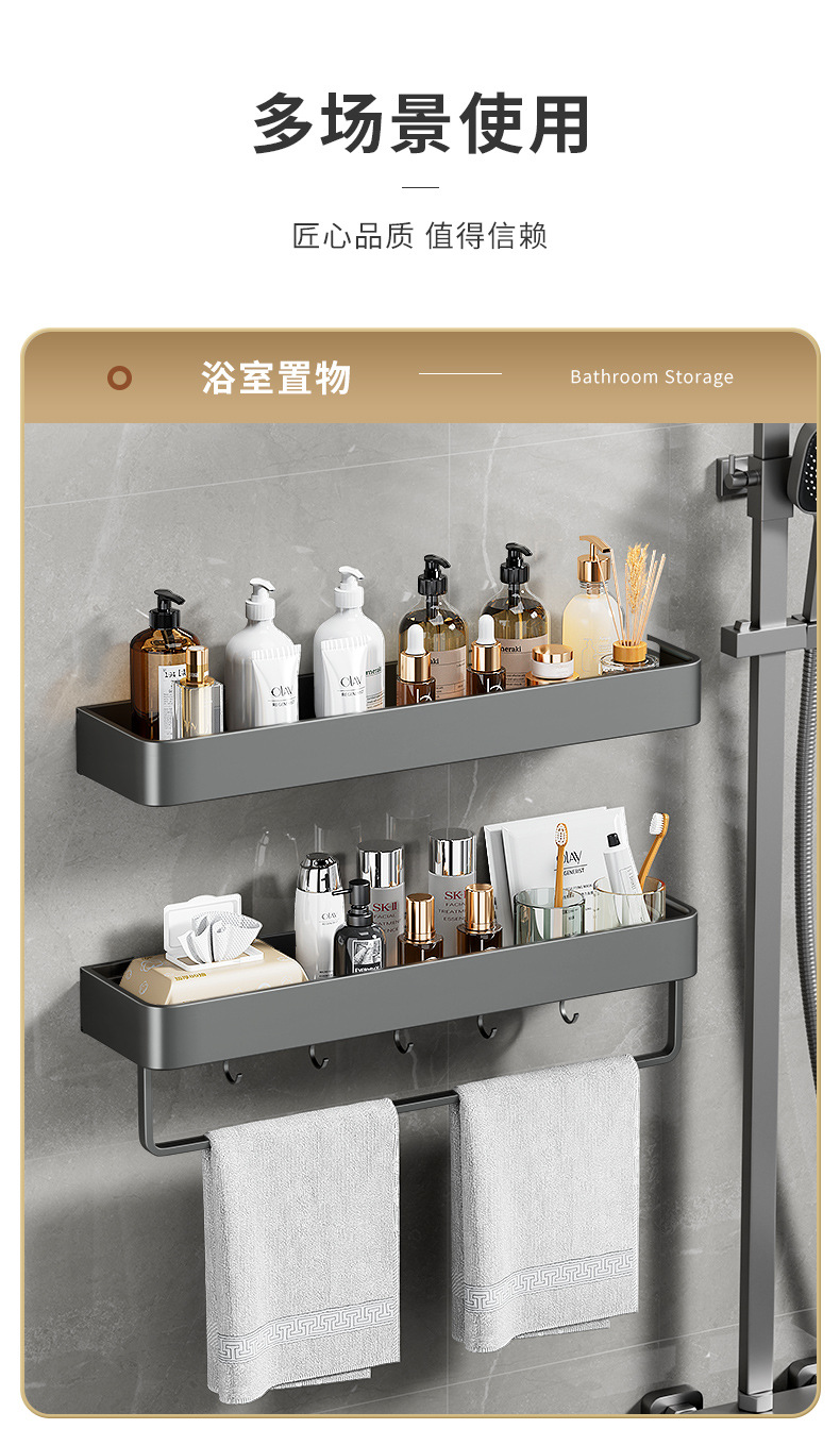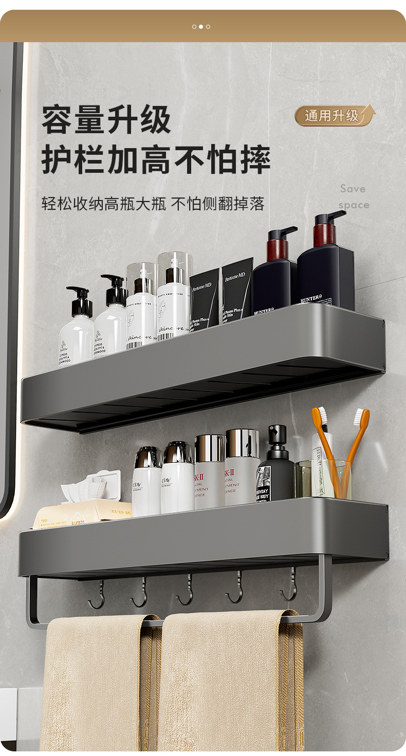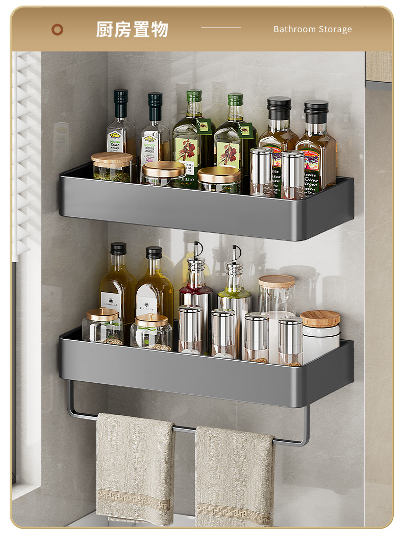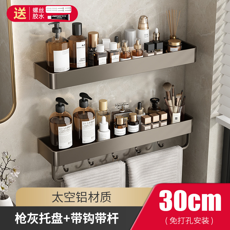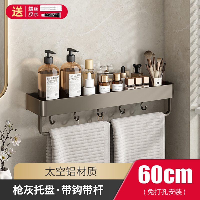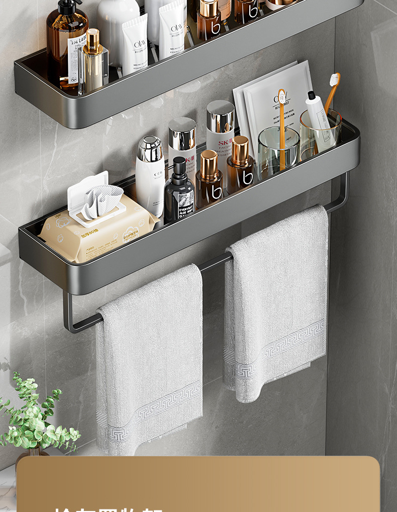건메탈 스페이스 알루미늄 욕실 수납 선반, 무타공 화장실 수건걸이, 수납 선반, 화장실 벽걸이형