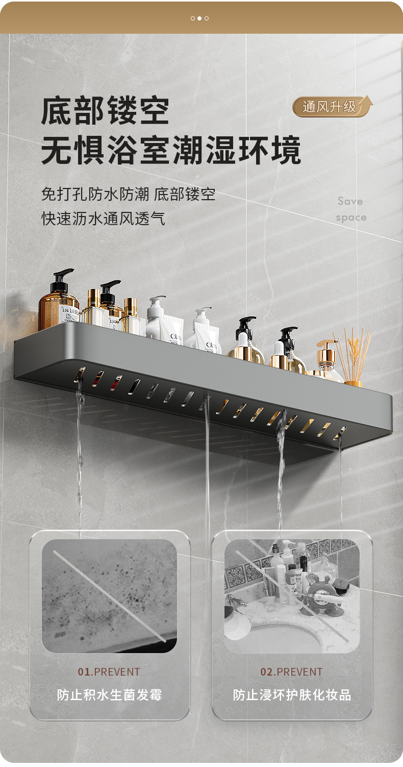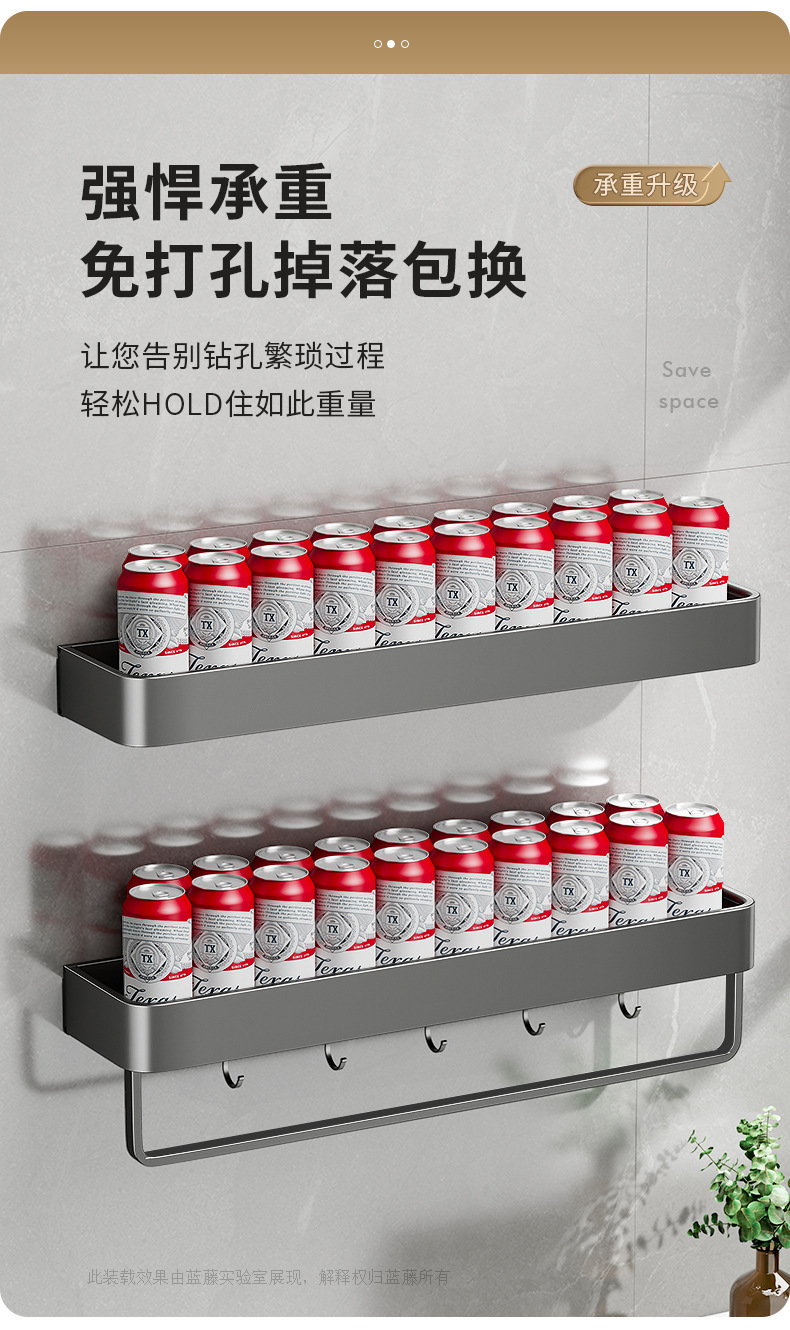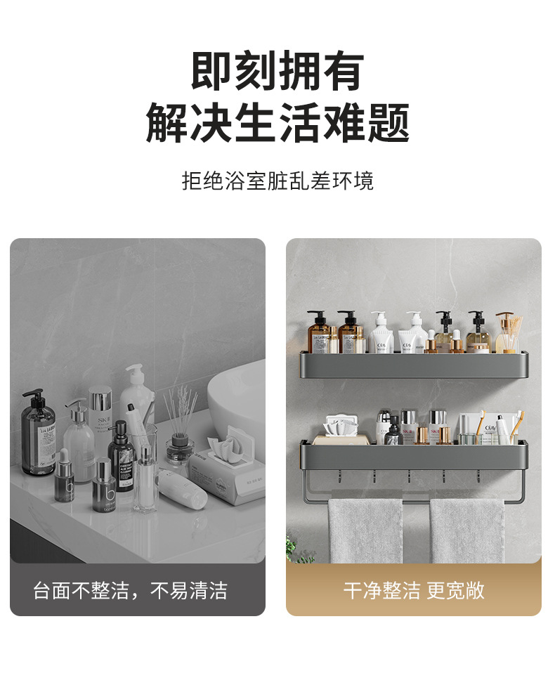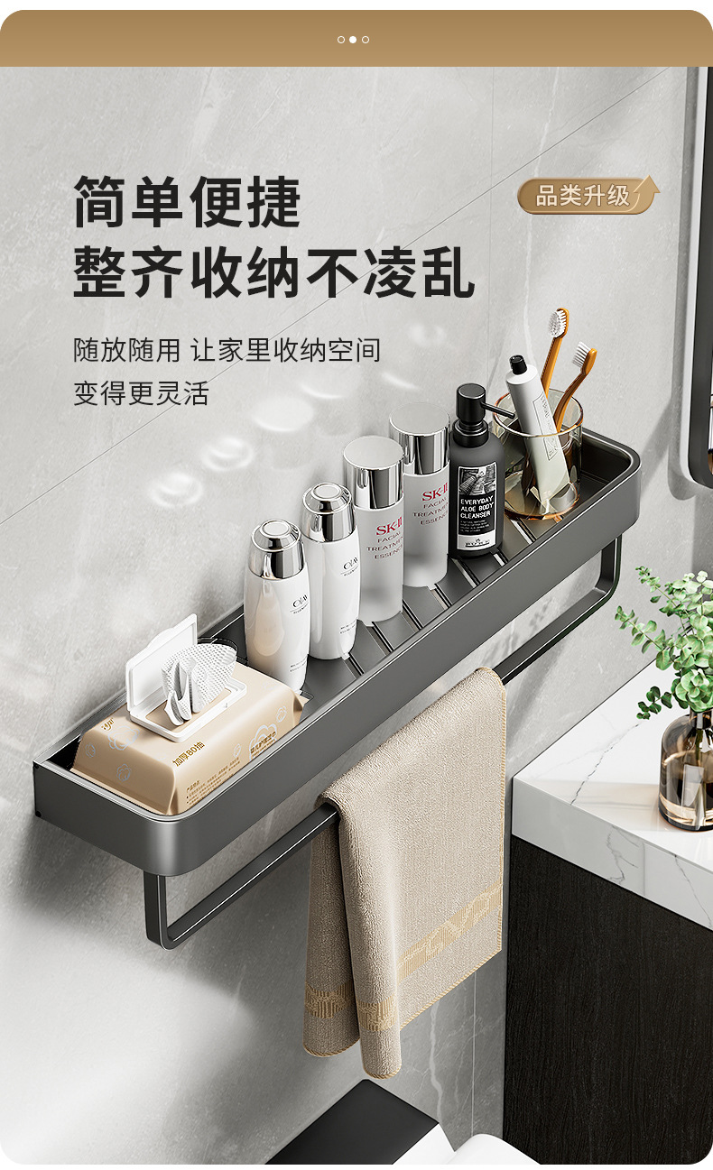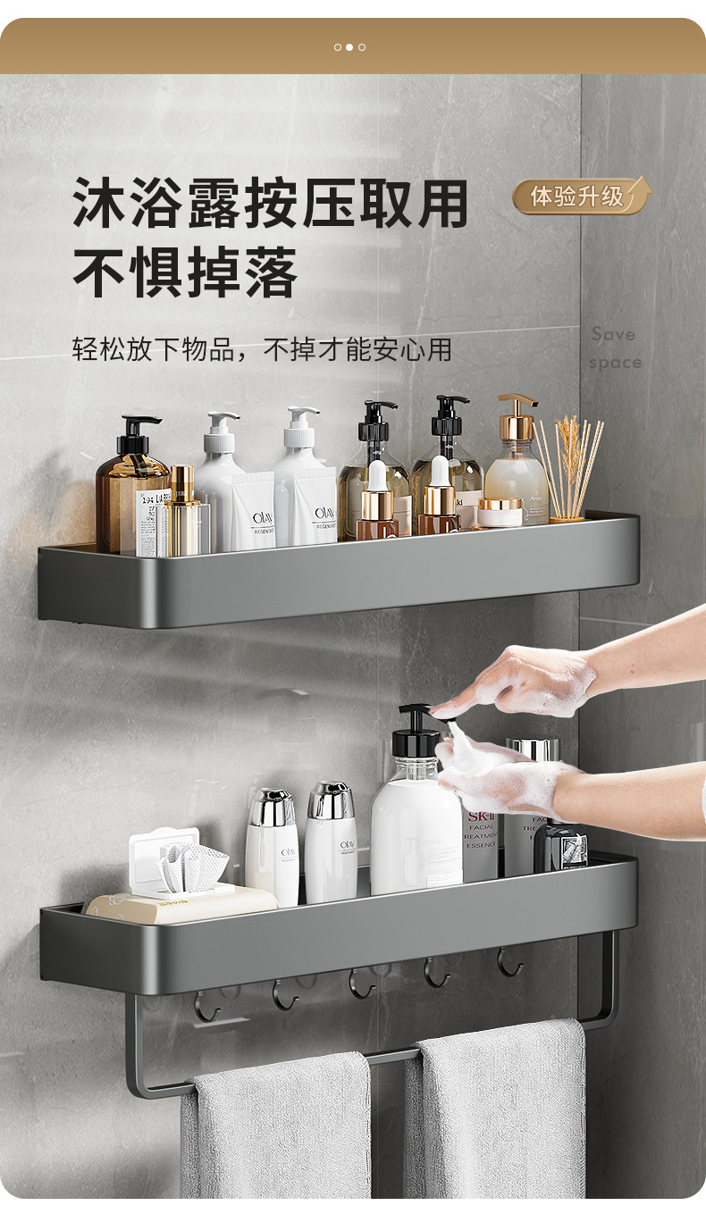 건메탈 스페이스 알루미늄 욕실 수납 선반, 무타공 화장실 수건걸이, 수납 선반, 화장실 벽걸이형