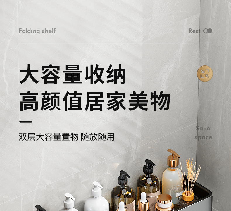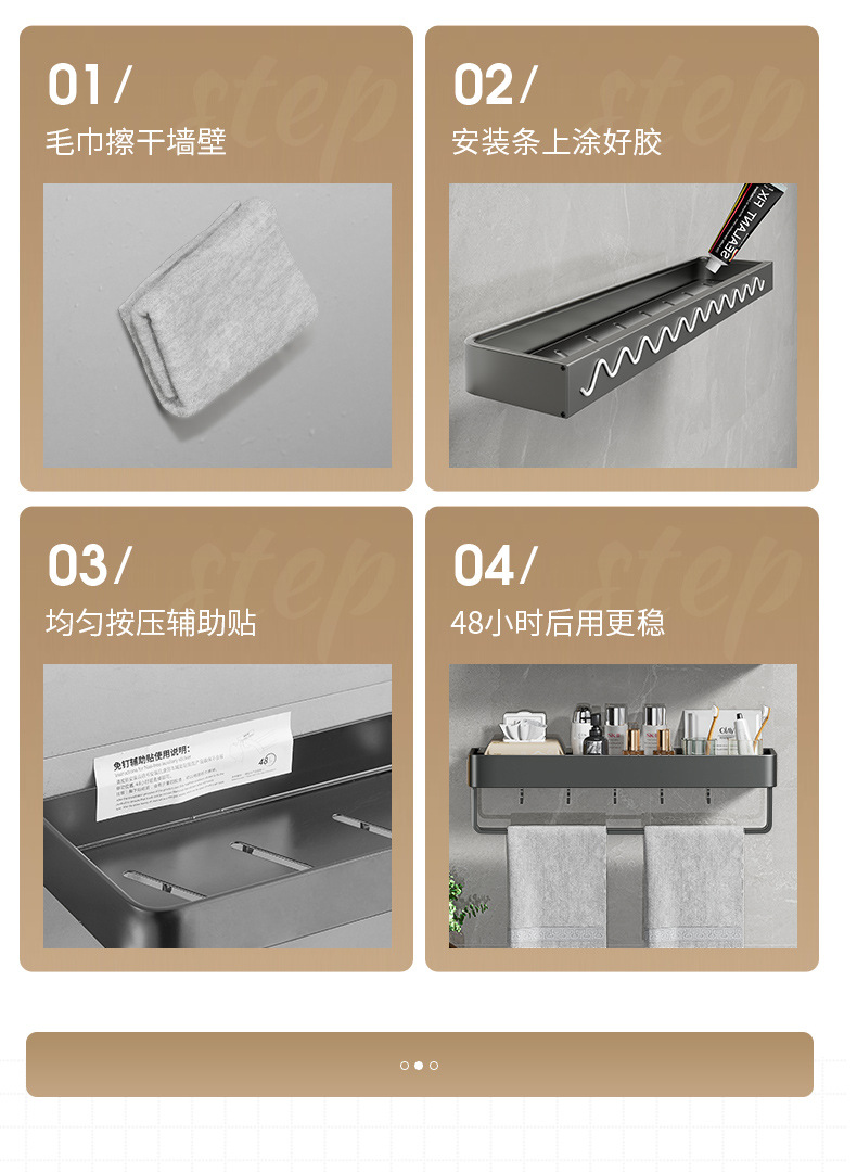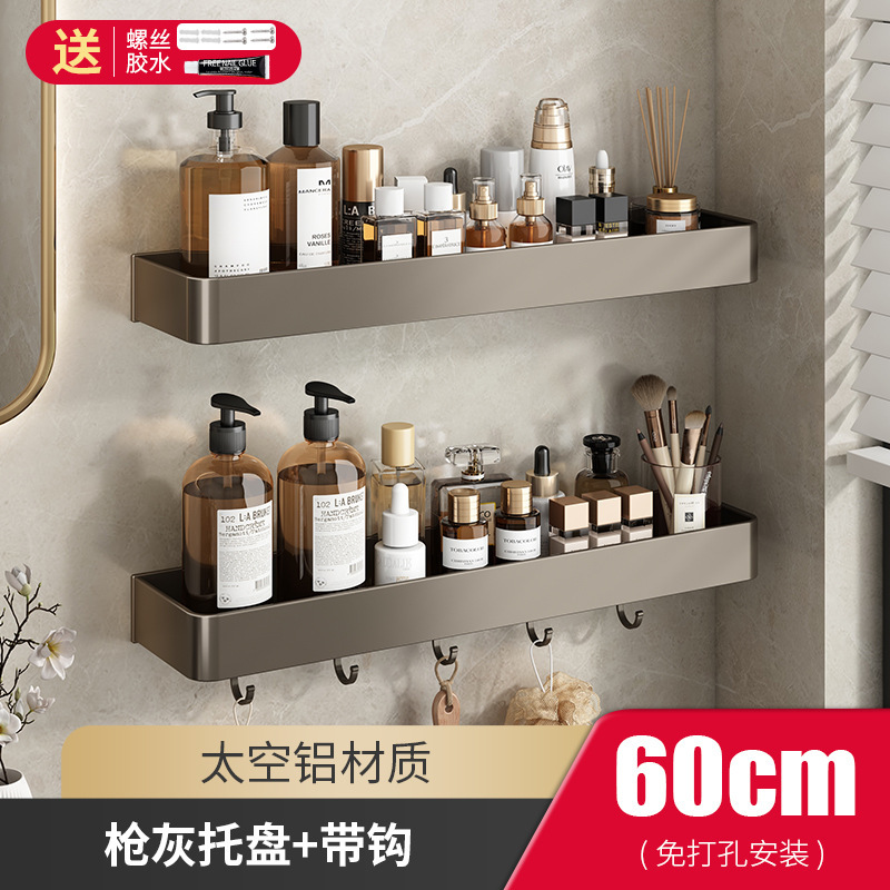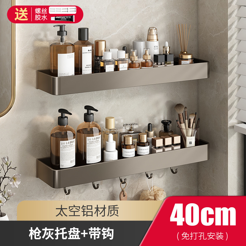 건메탈 스페이스 알루미늄 욕실 수납 선반, 무타공 화장실 수건걸이, 수납 선반, 화장실 벽걸이형스토어 가기