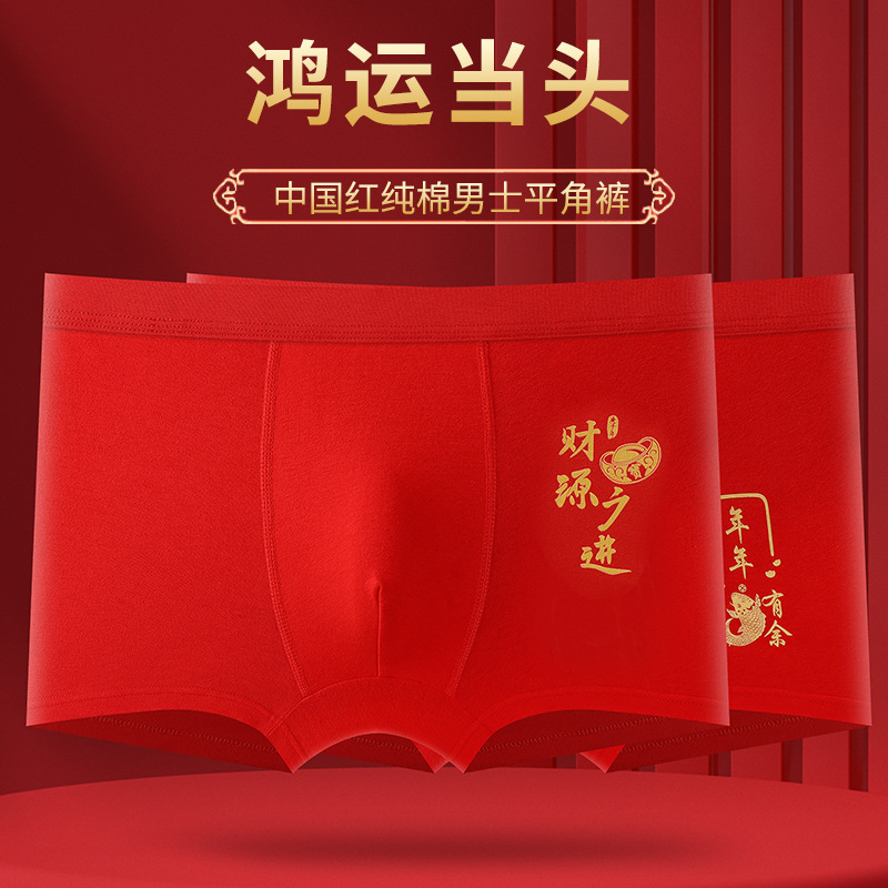 本命年男士内裤纯棉中腰大红色内裤四角裤亲肤宽松结婚平角裤男