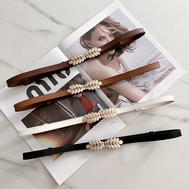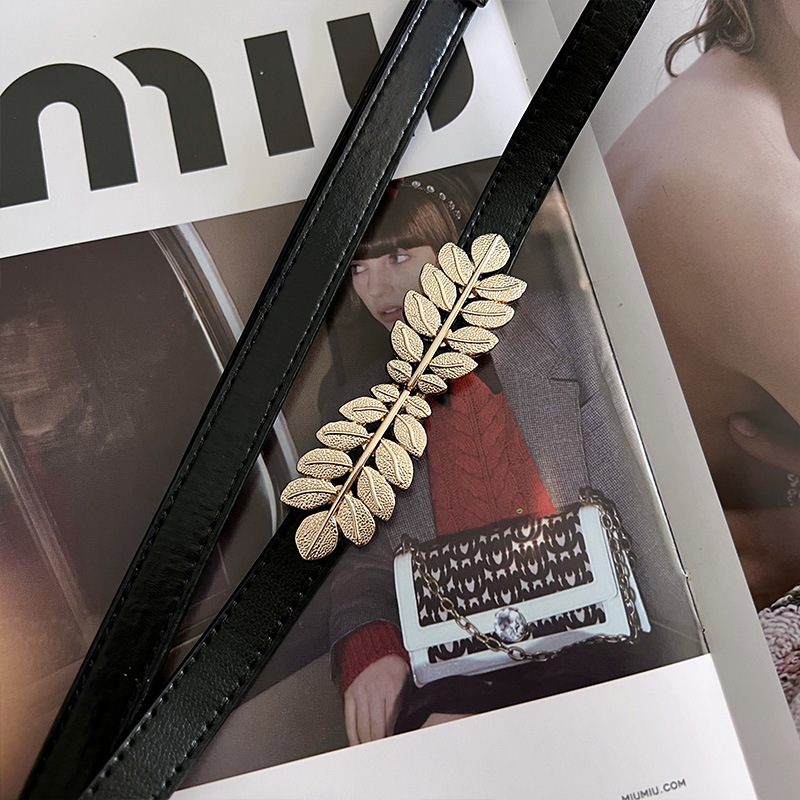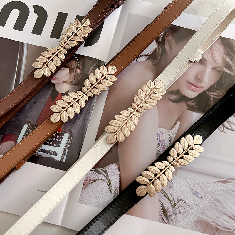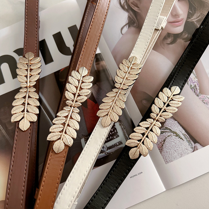 2023 새로운 조정 가능한 특허 가죽 황금 잎 버클 빈티지 얇은 벨트 여성 모든 일치 장식 원피스 허리 체인스토어 가기